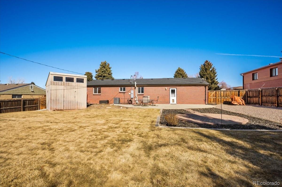 Welcome home to this beautifully updated five-bedroom brick ranch where comfort and style come together effortlessly. The light-filled main level features fresh paint throughout and a fully remodeled kitchen that serves as the heart of the home, complete with newer cabinetry, modern countertops, and newer appliances ideal for both everyday living and entertaining, along with the convenience of main-floor laundry and thoughtfully updated bathroom. The fully finished basement offers exceptional flexibility with two conforming bedrooms, a full bathroom, and a spacious family room perfect for movie nights, guests, or a home office, plus a separate entrance from the garage and a history of use as a rental for added versatility. Outside, enjoy a landscaped, fully fenced backyard ideal for relaxing evenings, pets, and outdoor gatherings, featuring a large shed, generous outdoor space, and potential for RV or trailer parking behind the home, while a driveway, garage, ample parking, and major system updates including a newer water heater, furnace, and A/C make this home truly move-in ready. Located in Walnut Hills within the highly sought-after Cherry Creek School District, this home offers convenient access to parks, schools, shopping, and dining, all within a well-established neighborhood.