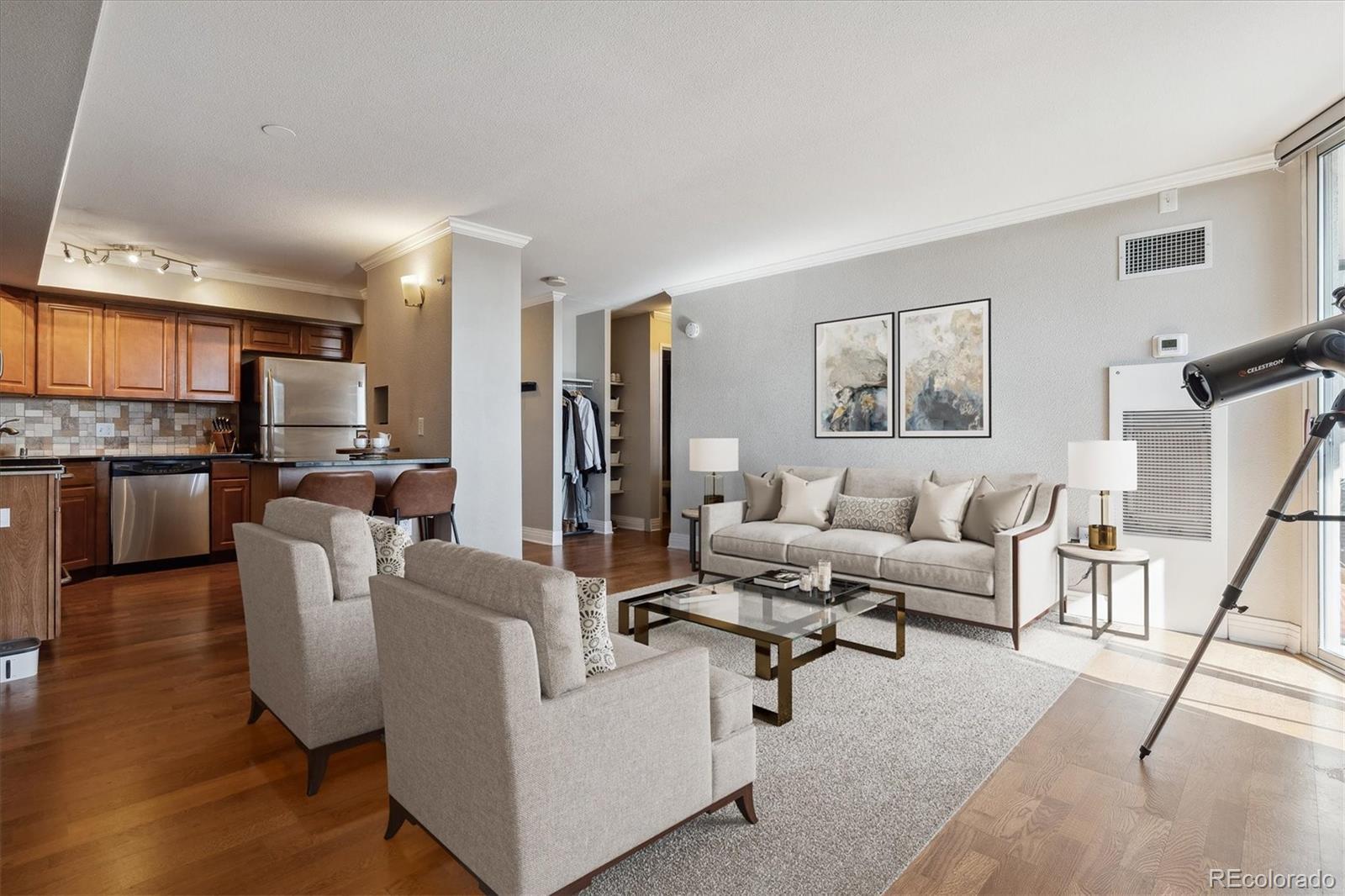 Discover Your Urban Oasis in Downtown Denver! Welcome to a stunning blend of modern resort-style living and the vibrant energy of Downtown Denver! This beautiful unit in the Parkway Condos is ready for you to call home! Ideally situated between the Santa Fe Arts District, Lincoln Park, and the Golden Triangle, you’ll find yourself immersed in a dynamic urban lifestyle filled with fantastic shopping, abundant galleries and museums, and a diverse array of dining and entertainment options. This inviting home is bathed in natural light, featuring a spacious southwest-facing balcony that offers breathtaking panoramic views of the mountains and city skyline. Located on one of only two secured floors of the building, that can only be accessed by entering a separate security code in the elevator, this residence exudes warmth and sophistication, complete with a stylish kitchen equipped with stainless steel appliances and an elegant kitchen island with bar seating. The unit also boasts an updated bathroom, showcasing new tile and sleek glass shower doors, alongside beautiful hardwood floors, remote-controlled power blinds, and the convenience of in-unit washer/dryer hookups. At the Parkway Condos, resort-style amenities abound! Enjoy rooftop patios, a hot tub, convenient grilling areas, a well-equipped fitness center, a business lounge, and a pool table, all designed to elevate your living experience. Residents also have access to the impressive amenities of The Lincoln building next door, including an outdoor swimming pool, additional hot tub, fitness center, private theater, and community dog park. With bike trails, public transportation, and a grocery store just moments away, this location perfectly balances convenience with urban excitement. Don’t miss your chance to experience this incredible urban lifestyle—schedule your private showing today!