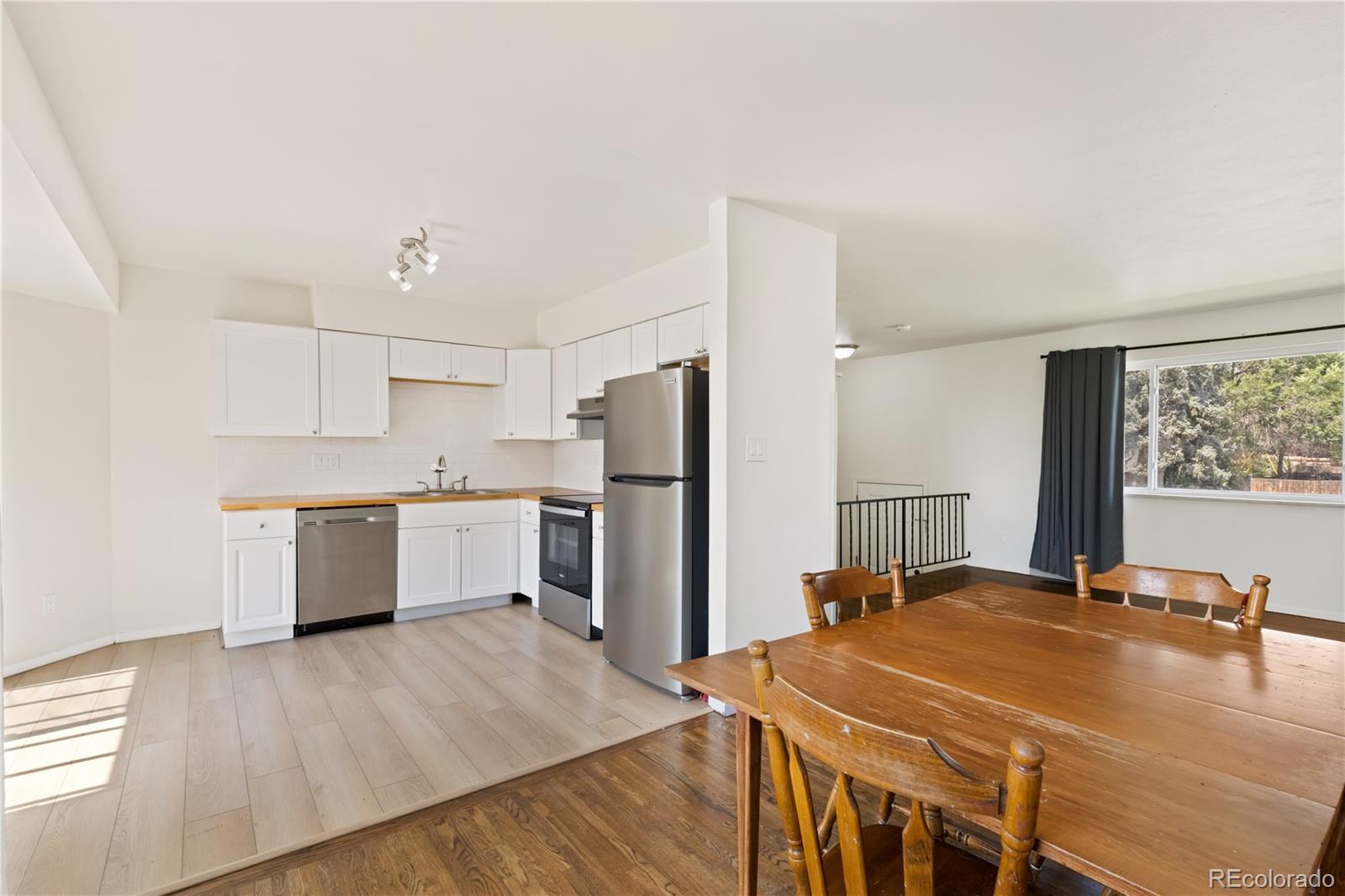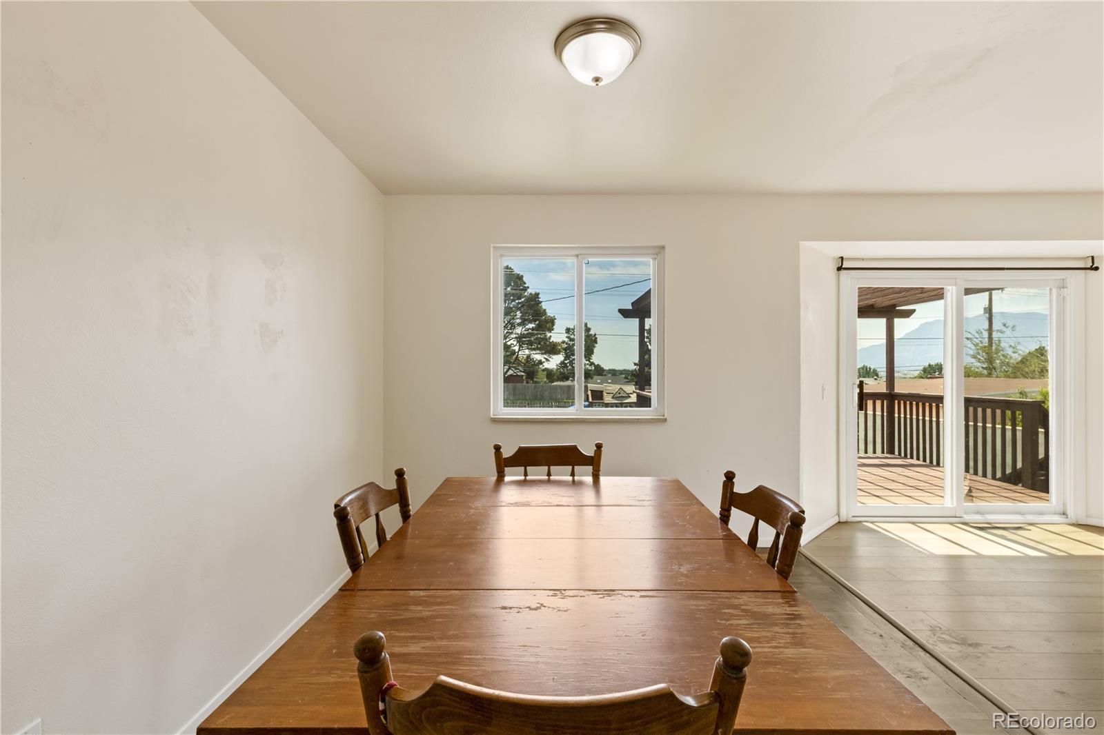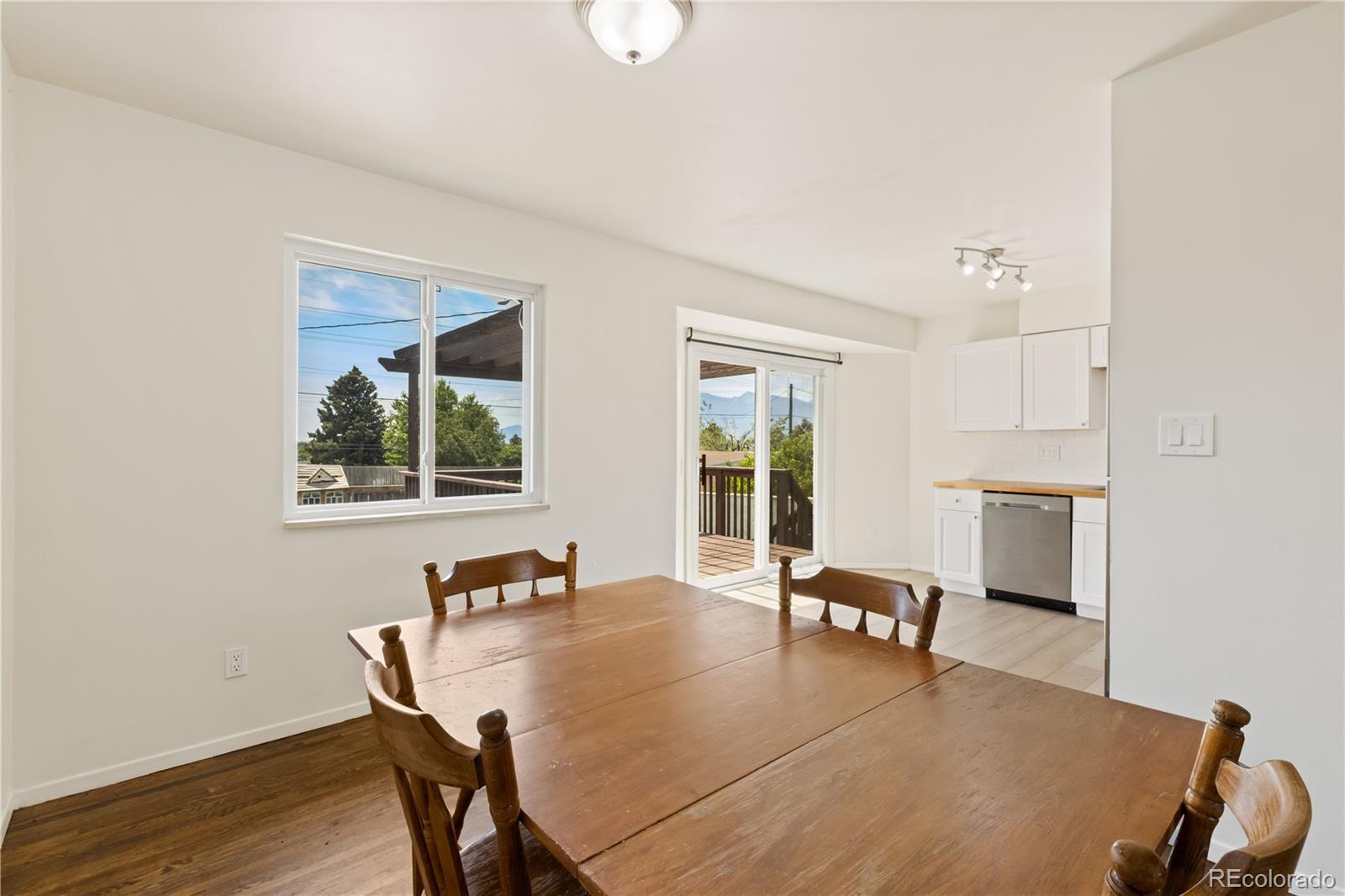 Pride of ownership in this 4 bedroom, 2 full bath, 1 car garage home. Upstairs provides spacious living room open to dining room and updated kitchen. Walk out from the kitchen onto the deck with mountain views and access to the large, fenced in back yard. 2 bedrooms upstairs with a full bath. Lower level provides another family room, 2 bedrooms, full bath and laundry room with nice storage area. 2022 Roof, 2022 updated electric panel, 2018 water heater. Quiet neighborhood with quick access to Powers, I-25 and a variety of dining, shopping and more. Don't miss this one-many of the big ticket items have been taken care of, so it is just waiting for your own personal touch!