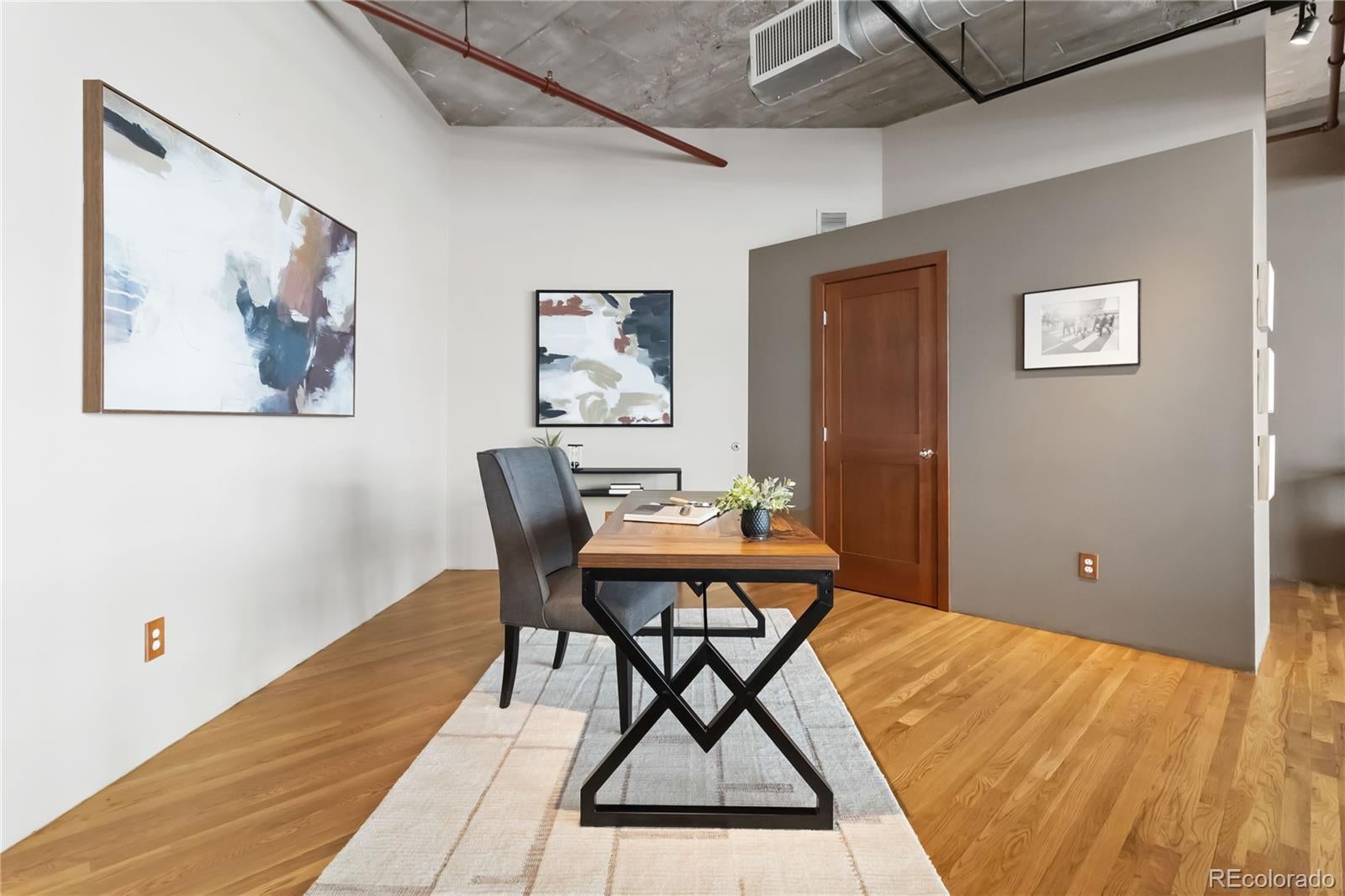 Welcome to this stunning industrial chic loft, perfectly situated in the heart of LoDo. With a prime downtown location, you're just seconds away from the vibrant dining and entertainment options at McGregor Square, Union Station, and the Dairy Block. Located one block from Coors field and within walking distance to Empower Field and Ball Arena. The open-concept living space is flooded with natural light through expansive windows, creating a bright, inviting atmosphere. Double glass doors lead to a spacious, covered balcony that's plumbed for gas perfect for outdoor cooking or relaxing after a hard days work. The generous primary suite boasts a large walk-in closet and a beautifully designed bath, offering a private retreat. The second bedroom area can be sectioned off for a bedroom or office, or left open. The Kitchen consists of double ovens, gas range, 50 bottle wine fridge, microwave all in a natural cherry cabinetry. This unique loft combines the best of urban living with a touch of creative potential, making it the perfect place to call home. Don't miss out on the chance to make this one-of-a-kind space your own!