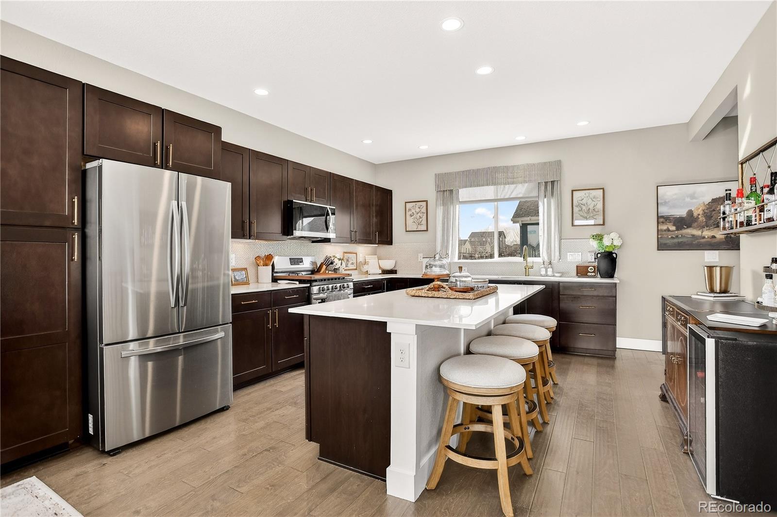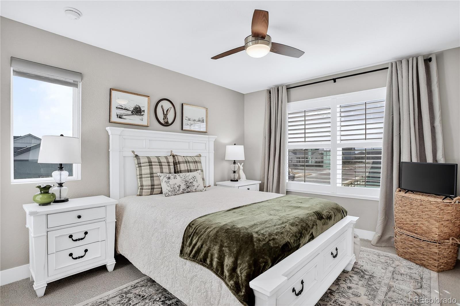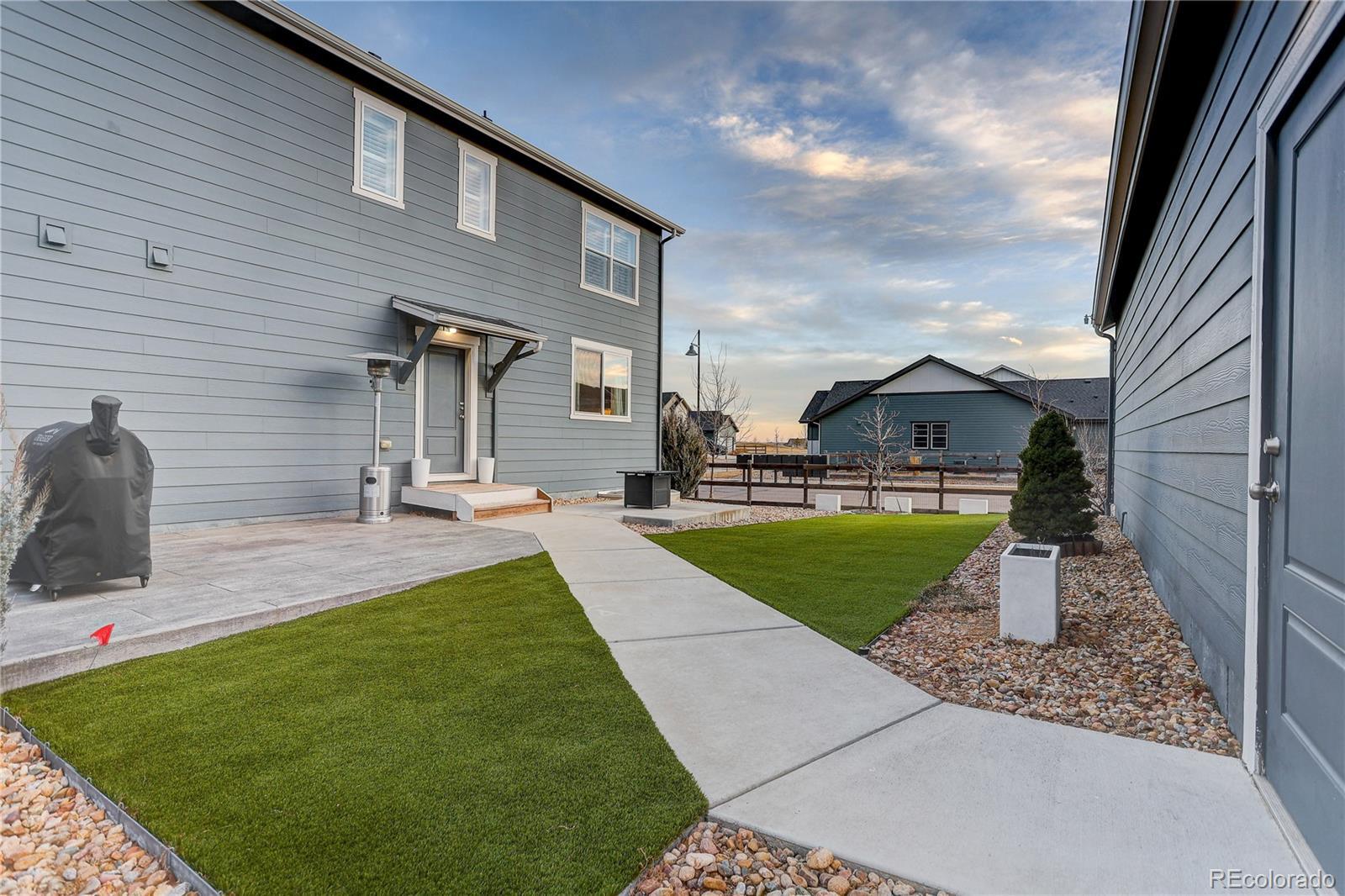 The photos do not do this home justice! It is absolutely stunning. Located in Barefoot Lakes so bring your paddleboard! A lovely front porch welcomes you into this elegant home filled with high-end upgrades throughout. The sun-filled kitchen is both elegant and inviting, featuring an ideal dining area framed by dramatic floor-to-ceiling windows. The spacious primary suite is a true retreat, offering two walk-in closets, dual vanities, and an oversized shower. A perfectly placed loft provides a cozy space to relax or unwind. The finished basement is exceptional, ideal for guests or multi-generational living, and includes a large bedroom, a gorgeous bathroom with walk-in shower, a private reading nook, and an open family room. Upgraded stamped-concrete window wells add an extra touch of quality. Outside, the low-maintenance backyard features upgraded turf and a custom stamped-concrete patio. The three-car detached garage with alley access includes a 90-amp panel, completing this thoughtfully designed home. Barefoot Lakes offers an unmatched lifestyle with three miles of scenic lakeside trails, over 100 acres of sparkling lakes for paddleboarding or fishing, and breathtaking views throughout the community. The Cove Clubhouse features a fitness center, large pool, basketball and tennis courts, fire pits, and more. This is Colorado living at its finest.