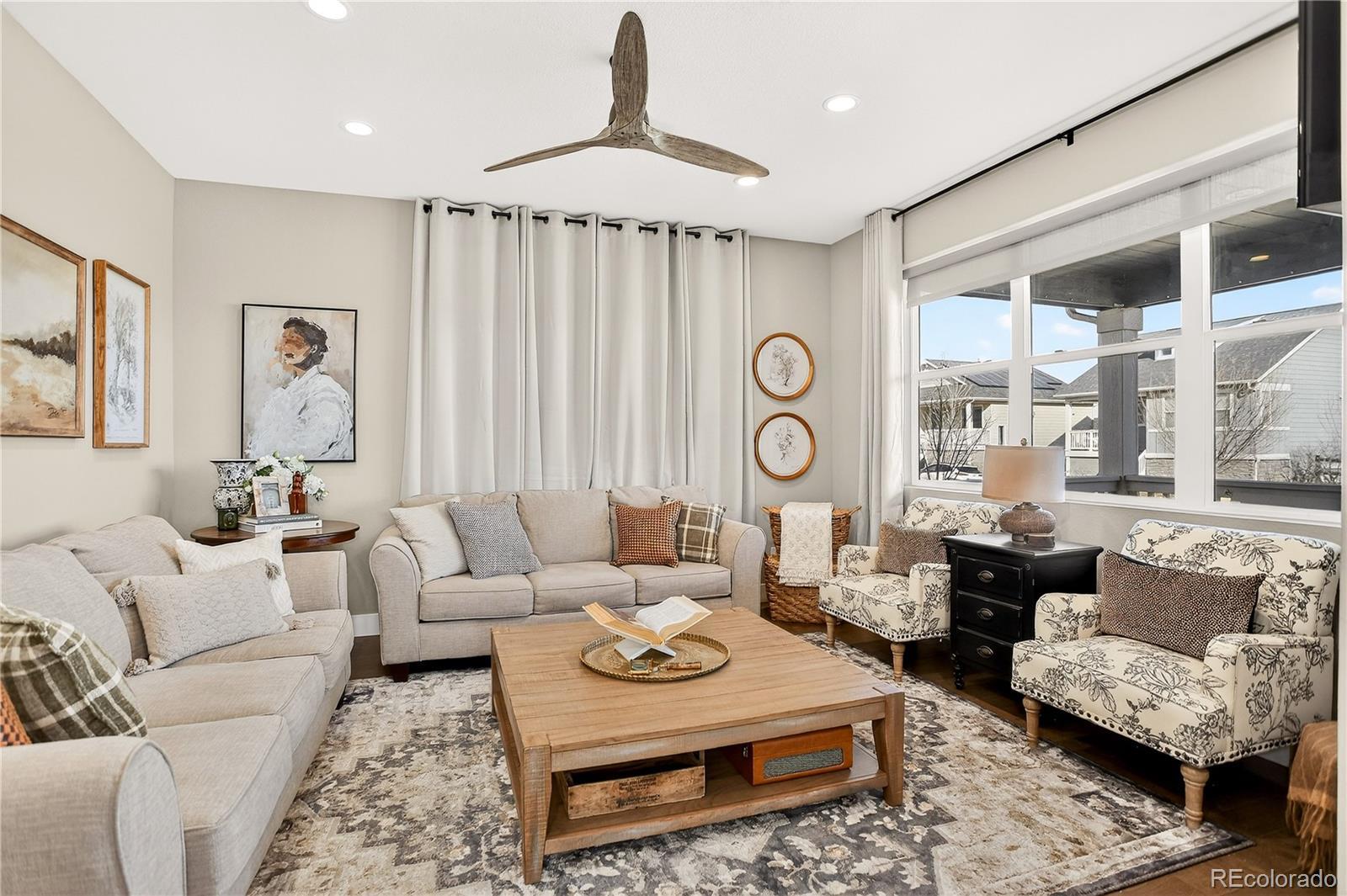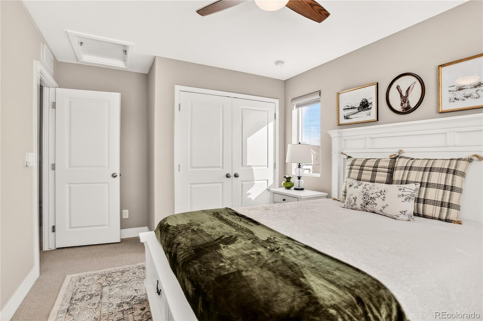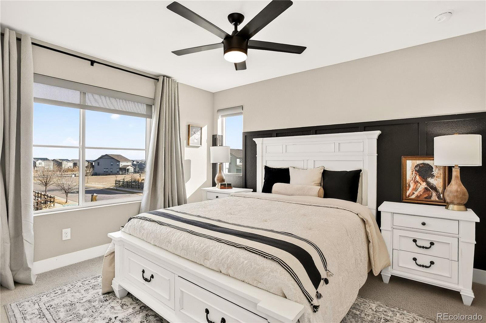 The photos do not do this home justice! It is absolutely stunning. Located in Barefoot Lakes so bring your paddleboard! A lovely front porch welcomes you into this elegant home filled with high-end upgrades throughout. The sun-filled kitchen is both elegant and inviting, featuring an ideal dining area framed by dramatic floor-to-ceiling windows. The spacious primary suite is a true retreat, offering two walk-in closets, dual vanities, and an oversized shower. A perfectly placed loft provides a cozy space to relax or unwind. The finished basement is exceptional, ideal for guests or multi-generational living, and includes a large bedroom, a gorgeous bathroom with walk-in shower, a private reading nook, and an open family room. Upgraded stamped-concrete window wells add an extra touch of quality. Outside, the low-maintenance backyard features upgraded turf and a custom stamped-concrete patio. The three-car detached garage with alley access includes a 90-amp panel, completing this thoughtfully designed home. Barefoot Lakes offers an unmatched lifestyle with three miles of scenic lakeside trails, over 100 acres of sparkling lakes for paddleboarding or fishing, and breathtaking views throughout the community. The Cove Clubhouse features a fitness center, large pool, basketball and tennis courts, fire pits, and more. This is Colorado living at its finest.