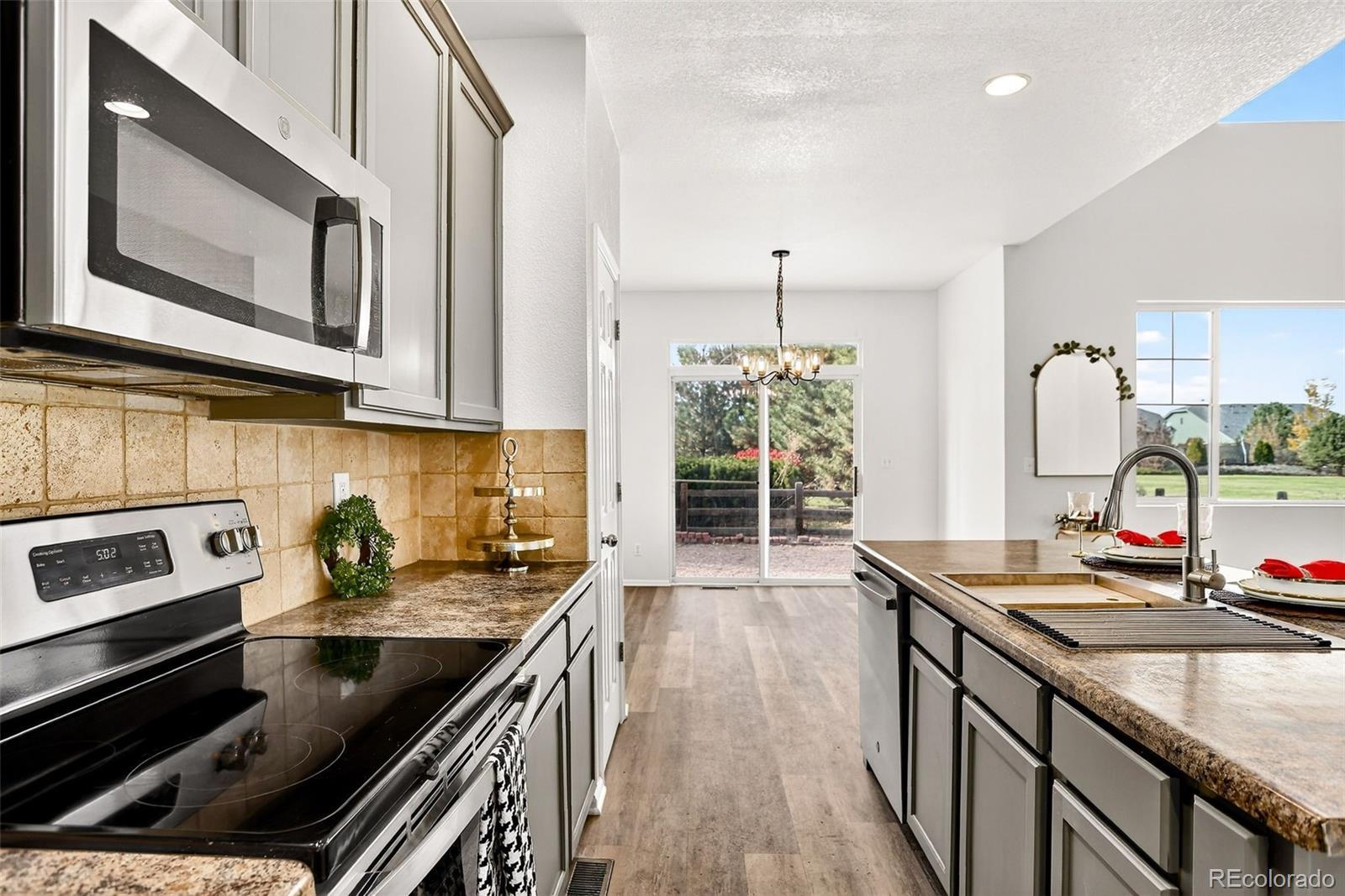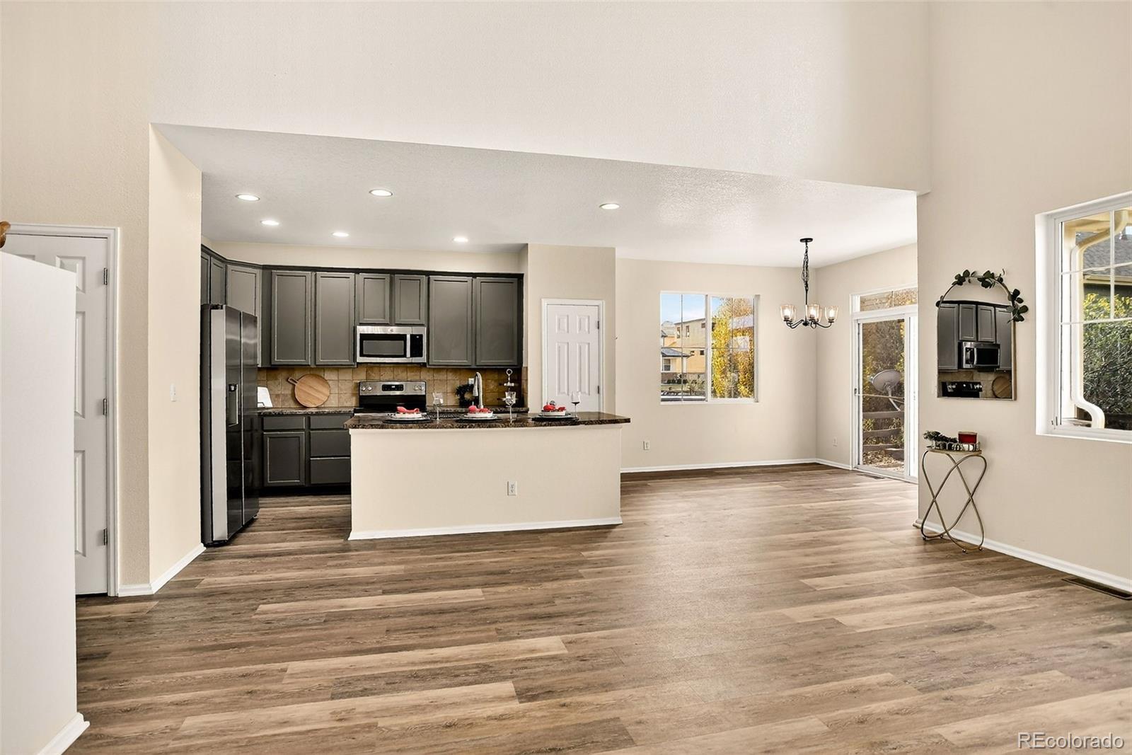 <<SELLER IS OFFERING A $5,000 BUYER CREDIT TOWARD THE HVAC SYSTEM!>> This FULLY REMODELED 5-bedroom, 4-bath home in Aurora’s highly desirable Cross Creek neighborhood is the perfect blend of modern comfort and timeless style. Set on a corner lot backing to Cross Creek Pocket Park, this beautifully refreshed home offers an inviting open floor plan, tons of natural light, and thoughtful updates throughout. From the moment you enter, you’ll be impressed by the soaring ceilings and spacious design that make this home feel bright and airy. The brand-new luxury vinyl plank flooring on the main level, fresh interior and exterior paint, and new carpet throughout create a fresh, contemporary look. The updated kitchen is a showstopper, featuring stainless steel appliances, updated cabinets, new faucet, durable countertops, and a generous island that makes cooking and entertaining a joy. The main-floor primary suite offers a private retreat with a luxurious 5-piece bath, complete with soaking tub, dual vanities, a separate shower, and walk-in closet. Upstairs, you’ll find a versatile loft, three additional bedrooms, and a full bath with dual sinks perfect for families or guests. The finished basement provides even more living space, with a large recreation room, a wet bar/kitchenette, a fifth bedroom, and a private bathroom, ideal for movie nights, hobbies, or a guest suite. With a brand-new roof (2025), updated windows (8 in 2025), and refreshed bathrooms with new sinks and faucets and toilet seat, this home is truly move-in ready from top to bottom. Cross Creek residents enjoy a community pool, clubhouse, playground, and parks, all for a low HOA fee. Conveniently located near E-470, I-70, DIA, and Southlands Mall, this home offers easy access to shopping, dining, and entertainment. Best of all, quick possession is available, move in before Christmas and ring in the New Year in your beautiful new home! Schedule your showing today!