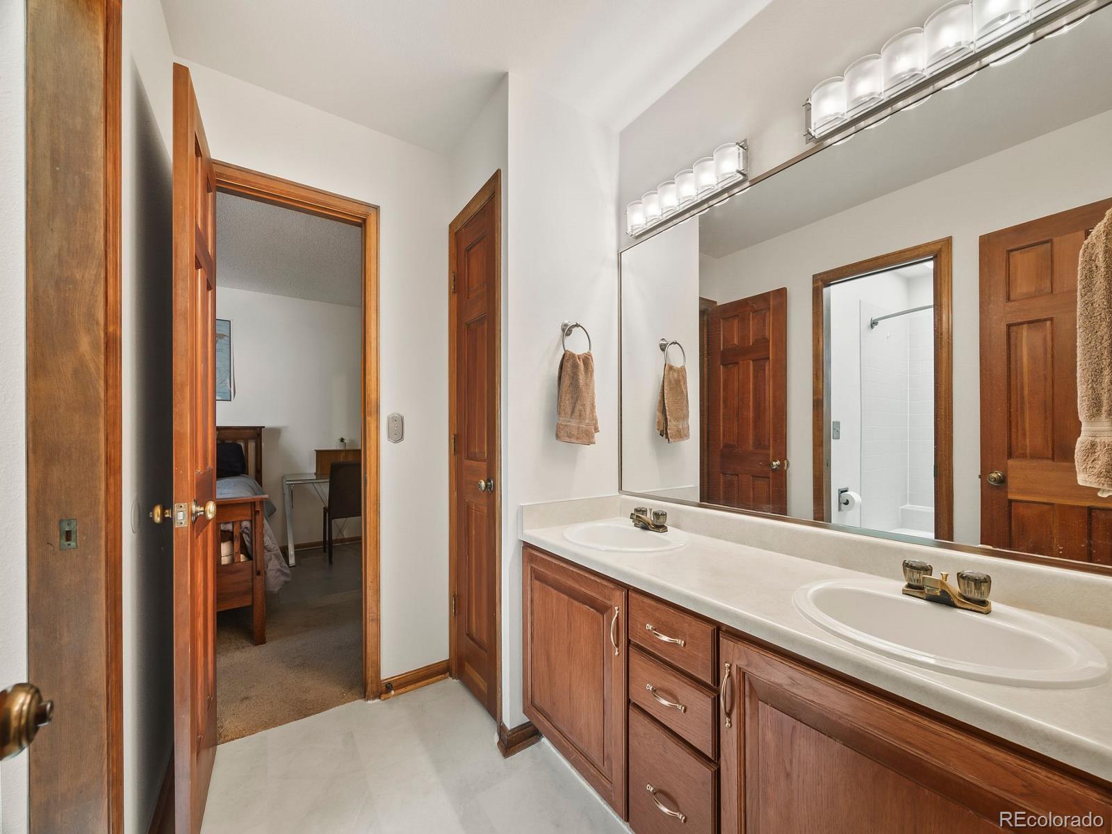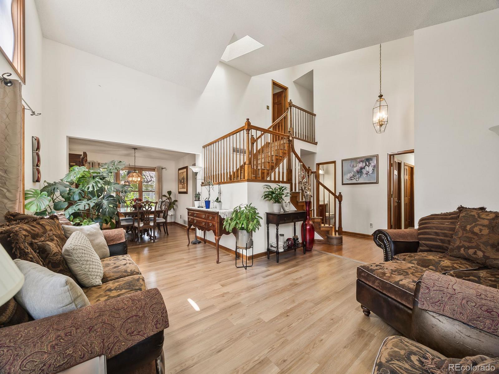 Welcome to this well-loved 4-bedroom home in the heart of Piney Creek in the Hilltop enclave, offering a thoughtful floor plan, abundant natural light, and unbeatable community amenities. Upstairs, the spacious primary suite features a 5-piece bath and walk-in closet, while two additional bedrooms share a convenient Jack & Jill bath. On the main level, you’ll find a rare guest suite with an attached ¾ bath—perfect for visitors, multigenerational living, or anyone seeking privacy on the main floor. Vaulted ceilings and tall windows in the main living room and family room create a bright, open feel. The formal dining room is ideal for hosting, while the kitchen offers plenty of counter space with an additional eating space and flows into the vaulted family room with cozy fireplace and wall of windows overlooking the backyard. The unfinished basement is a complete canvas for the next owner, whether you envision a theater, recreation room, fitness space, or multigenerational quarters, the possibilities are endless. Step outside to enjoy Colorado summers in the private backyard, featuring a deck and trees that provide shade and privacy. Located in one of Centennial’s most sought-after neighborhoods, this home includes terrific HOA amenities: a pool (home to the Piney Creek Heat swim team), tennis courts, pickleball courts, playground, pond with waterfall, and clubhouse. Walk to all three CCSD schools without crossing a major street. The Piney Creek Trail, just across from the pool, connects directly to Cherry Creek State Park with miles of trails for biking, running, and exploring the outdoors. Shopping, dining, and entertainment are only minutes away. This is your chance to bring fresh vision to a classic 1980’s home that has been lovingly maintained and enjoyed for years—don’t miss it!