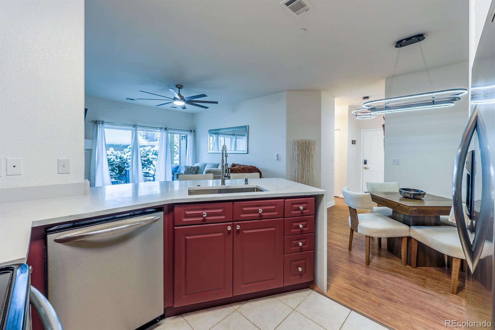 Been waiting? The stars have aligned on this beautifully updated 2-bedroom, 2-bathroom condo located in the highly desirable Mountain Gate III community of Ken Caryl Ranch. Thoughtfully renovated and completely move-in ready, this inviting home offers the perfect combination of modern upgrades, comfort, and convenience. The property is available furnished or unfurnished, providing flexibility to suit your lifestyle. Step inside to a bright and open living and dining area filled with natural light, creating a warm and welcoming space ideal for relaxing or entertaining. Brand-new ceiling fans throughout the home add comfort and a fresh, contemporary touch. The updated kitchen is a true standout, featuring refinished cabinetry, brand-new quartz countertops, a new farmhouse sink, and stainless steel appliances. With generous cabinet storage and ample counter space, this kitchen is designed for both everyday living and effortless entertaining. Both bathrooms have been tastefully refreshed with refinished cabinets, new quartz countertops, new sinks, and new toilets, creating a clean and cohesive modern feel throughout the home. The spacious primary suite offers a private en-suite bathroom and ample closet space. The second bedroom is conveniently located next to the newly renovated three-quarter bathroom. The home also includes a reserved carport conveniently located close to the front door for easy access. Residents of Ken Caryl Ranch enjoy exceptional community amenities, including soccer and baseball fields, a community event center, private camping areas, scenic hiking and biking trails, expansive open space, and an equestrian center—offering something for every lifestyle. Ideally located near grocery stores, restaurants, and shopping, with quick access to C-470 and Highway 285, you’ll be just minutes from your next mountain adventure. Don’t miss this opportunity to own this beautifully updated home. Schedule your private showing today and experience it for yourself!