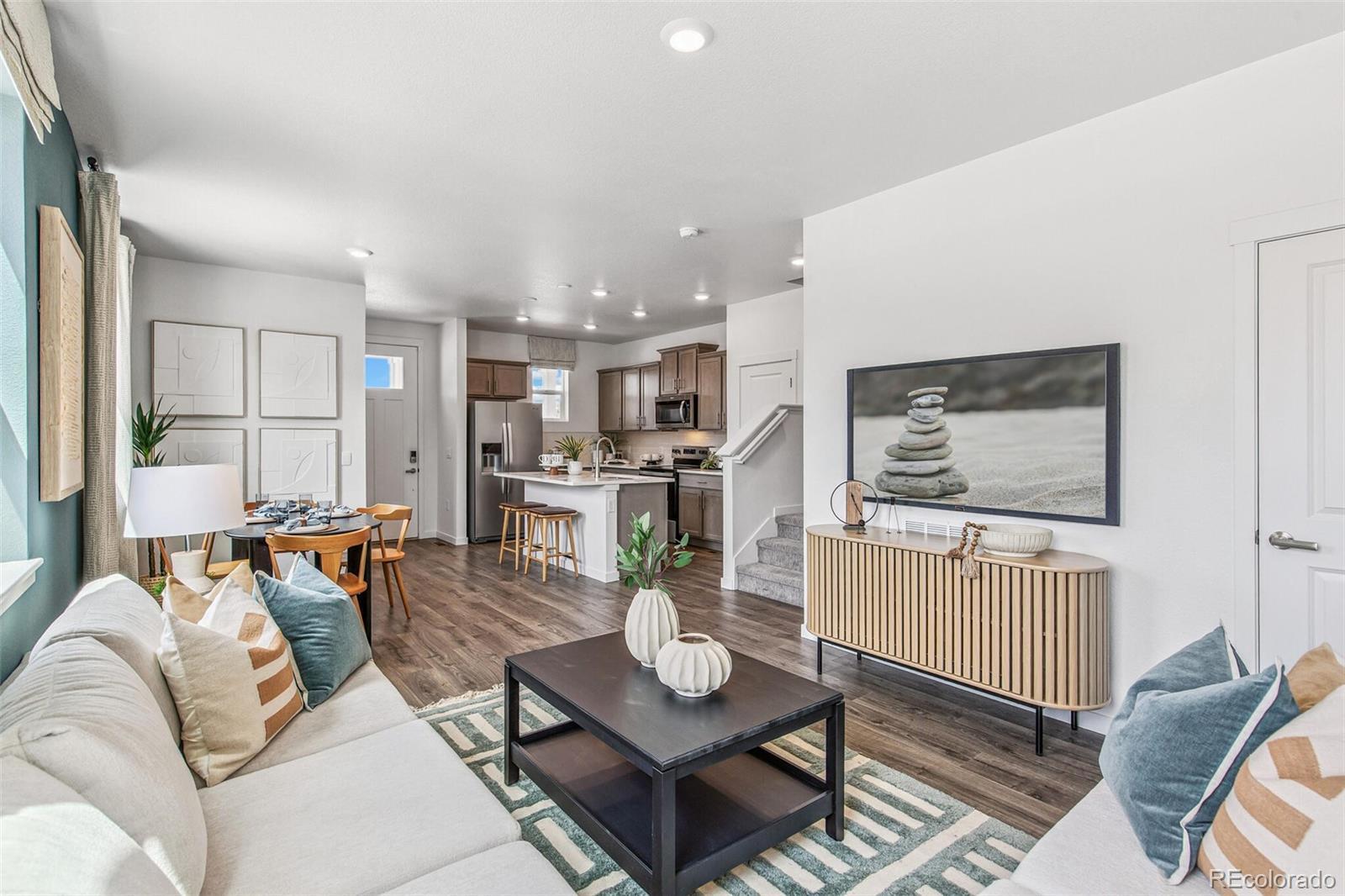 Turnkey Townhome! The Muirfield paired home plan offers 3 Bedrooms and loft, 2.5 Bath, and generous 2 car garage. This home features an open floor plan with expansive 9 ft. ceilings on the main floor, the kitchen offers a pantry, classic white cabinetry w/ crown molding, and stainless appliances. Includes luxurious interior finishes throughout, including a luxury plank flooring on the entire main floor and all wet areas, quartz counters throughout, black hardware and plumbing fixtures, and modern ceramic tile in baths and kitchen splash. Home is equipped with an extensive list of features such as 8' front door, 2 panel interior doors, A/C, tankless water heater, smart garage door opener w/ keypad, smart front door lock, thermostat, and lighting, video doorbell, customizable Deako lighting switches and more. Arcadia offers a large community park with trails, playground and a dog park. ***Estimated Delivery Date: November. Photos are representative and not of actual property***