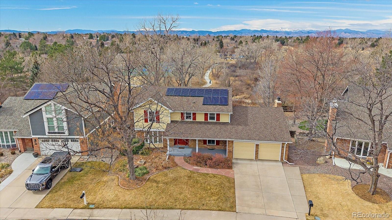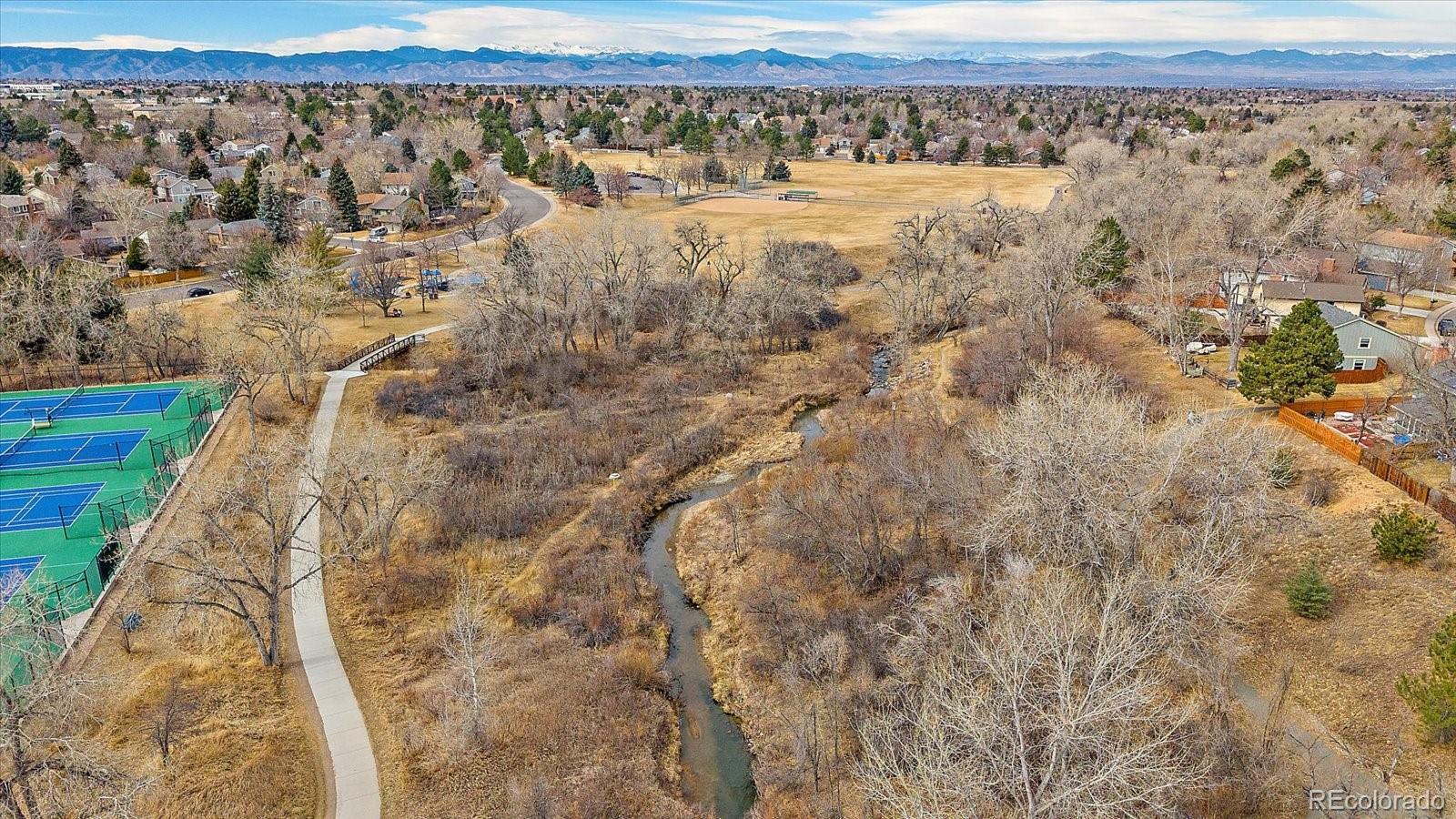 Welcome to one of Willow Creek's most coveted addresses. Perfectly positioned along the community's treasured location, this home backs to serene open space with mountain views enjoyed from spacious covered deck complete with fans and lights. The expansive, meticulously maintained backyard is ideal for entertaining, play, or simply enjoying the peaceful natural surroundings. All of this comes with unbeatable proximity to neighborhood pools, playgrounds, tennis and pickleball courts and miles of walking trails. Cherry Creek Schools. Inside you will find freshly painted walls, updated bathrooms with heated floors in all bathrooms but half bath, new Lennox A.C. and furnace with 10-year transferable warranty as well as newer hot water heater. Seller owned Solar Panels, a full walkout finished basement with ample storage space. Sprinklers, front and back, self-cleaning oven with convection oven/microwave above, radon system in place, gas fireplace with fireplace insert in family room. Come see and enjoy!