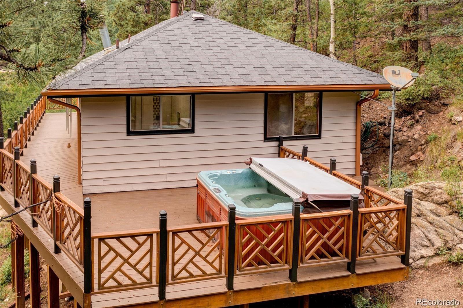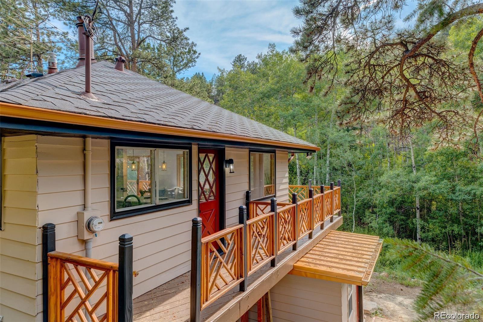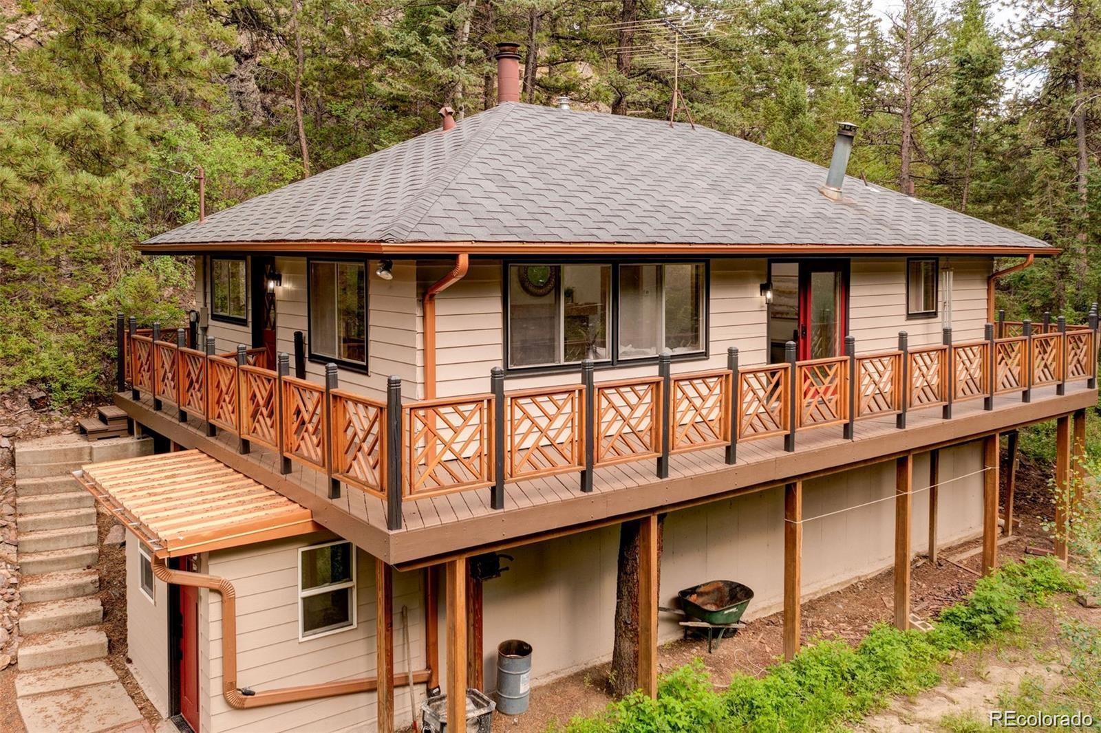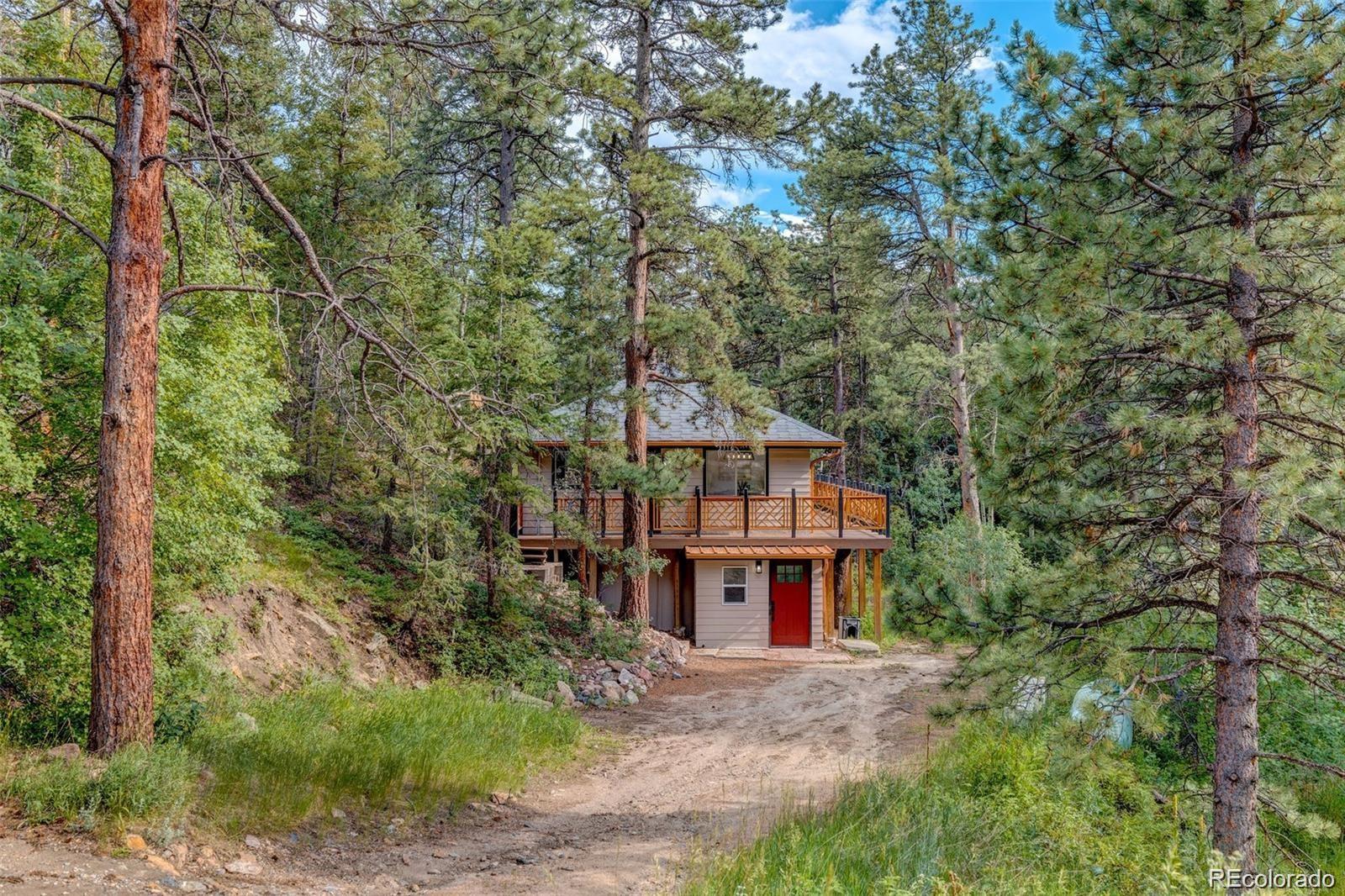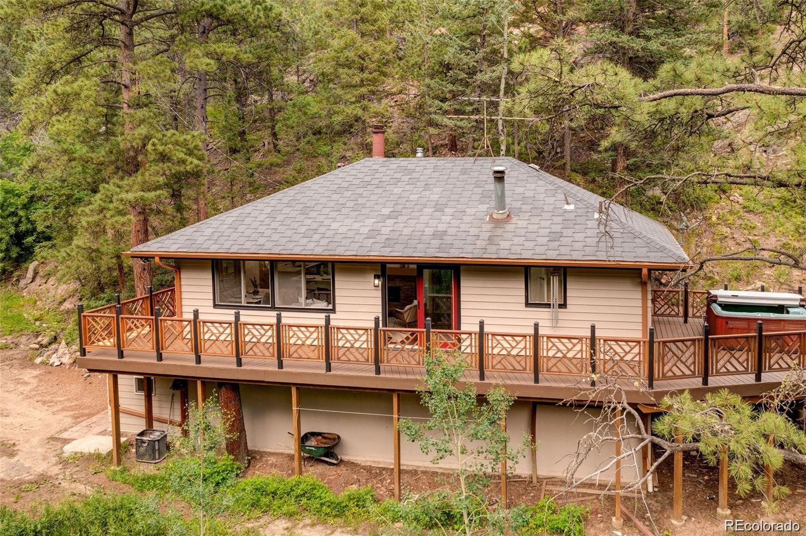 Welcome to your escape. This cozy mountain home sits on 4.85 acres of pure retreat on the outskirts of golden, nestled in the mountains. Purchase as your next home, a seasonal getaway or a phenomenal turn-key Airbnb property. Curl up by the fireplace, bask in the sun on the wrap-around deck, or relax under the stars in the jacuzzi. This is a home that you don’t want to miss. Phenomenal location with mountain views just west of Denver (7 miles up coal creek canyon), with access to Eldora ski resort, black hawk, Golden and Boulder. Everything has been updated on this home with all new luxury master bathroom with its own stand-alone tub, as well as a modern kitchen with new quartz countertops.