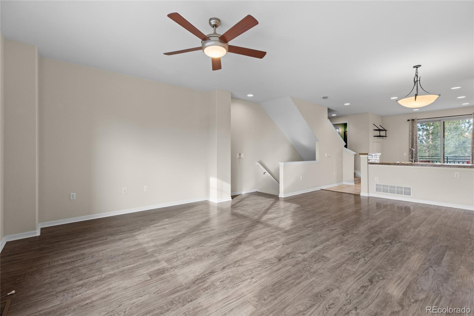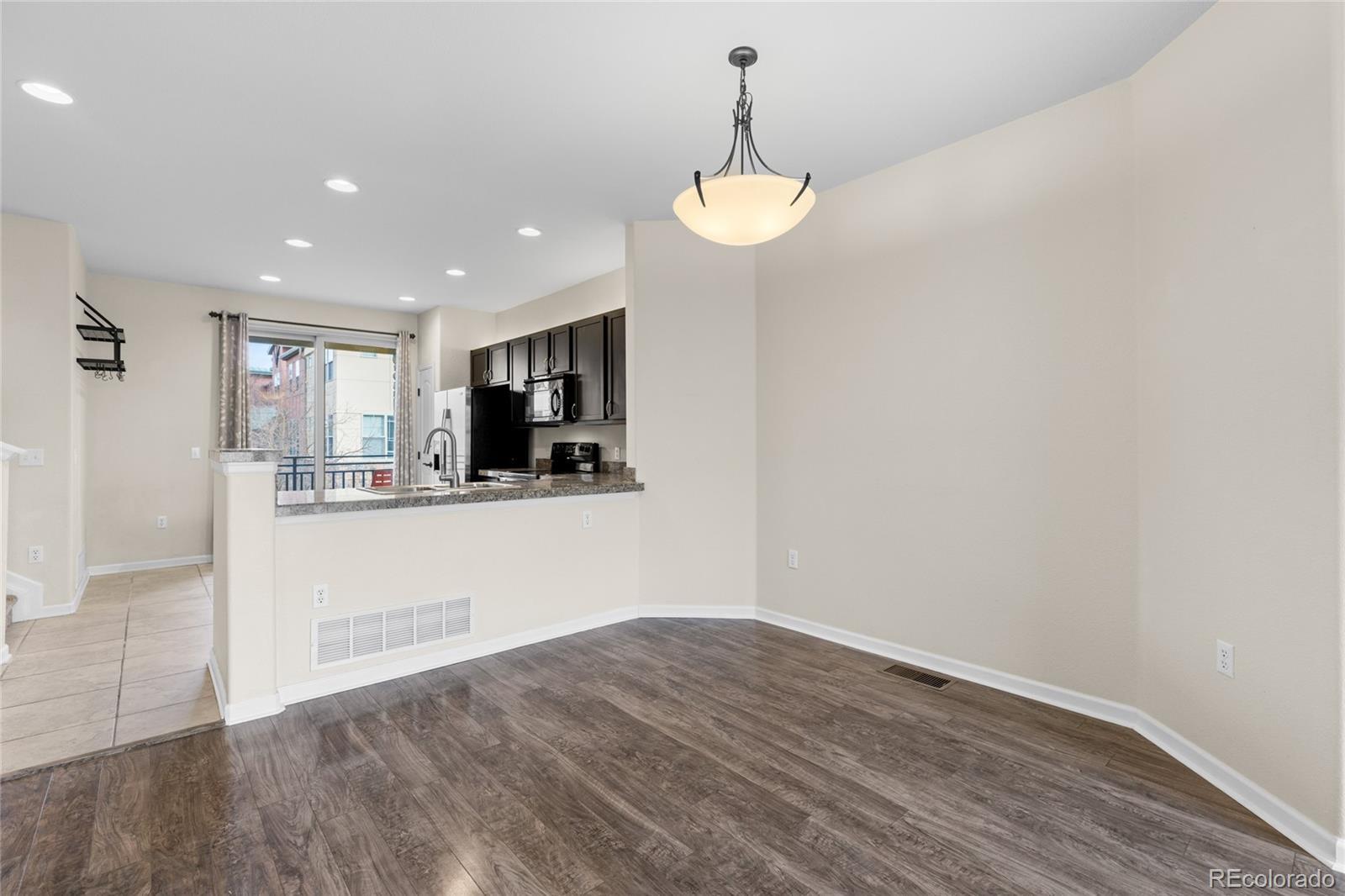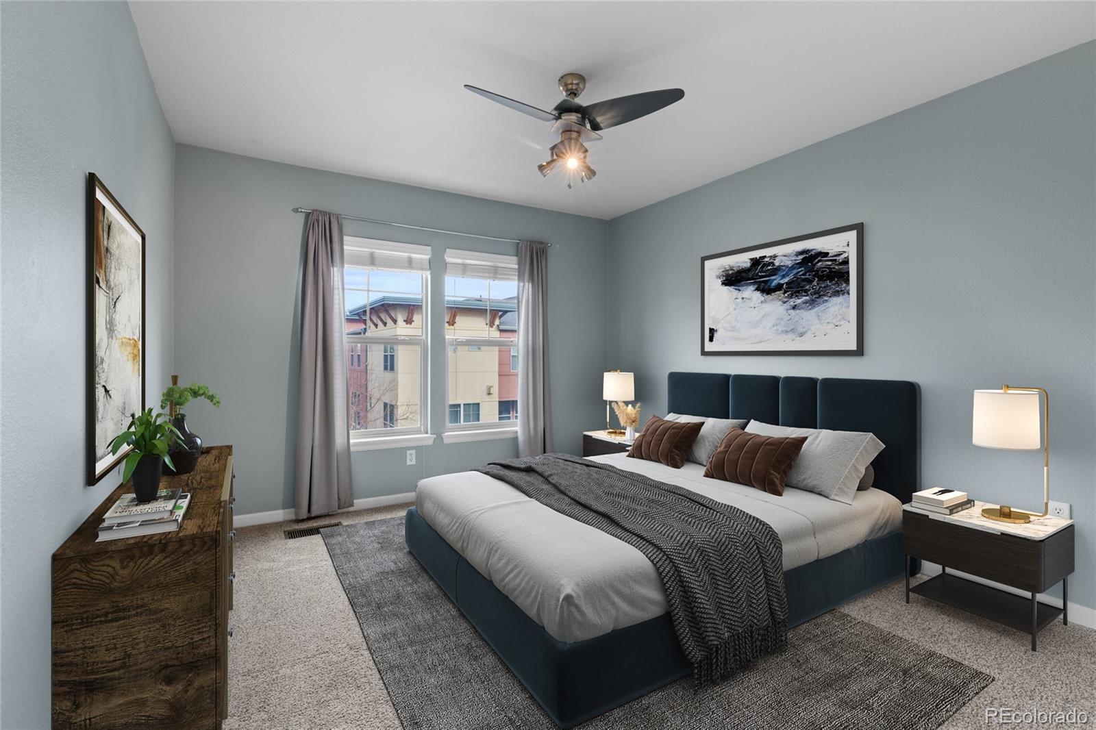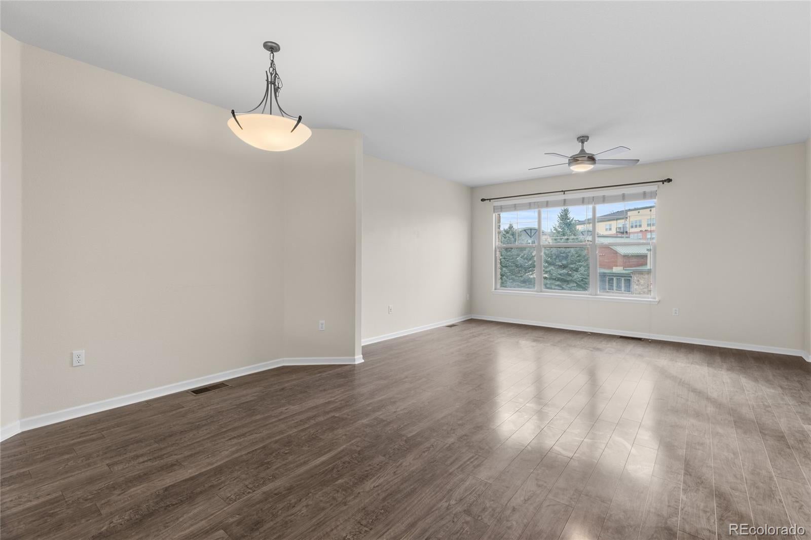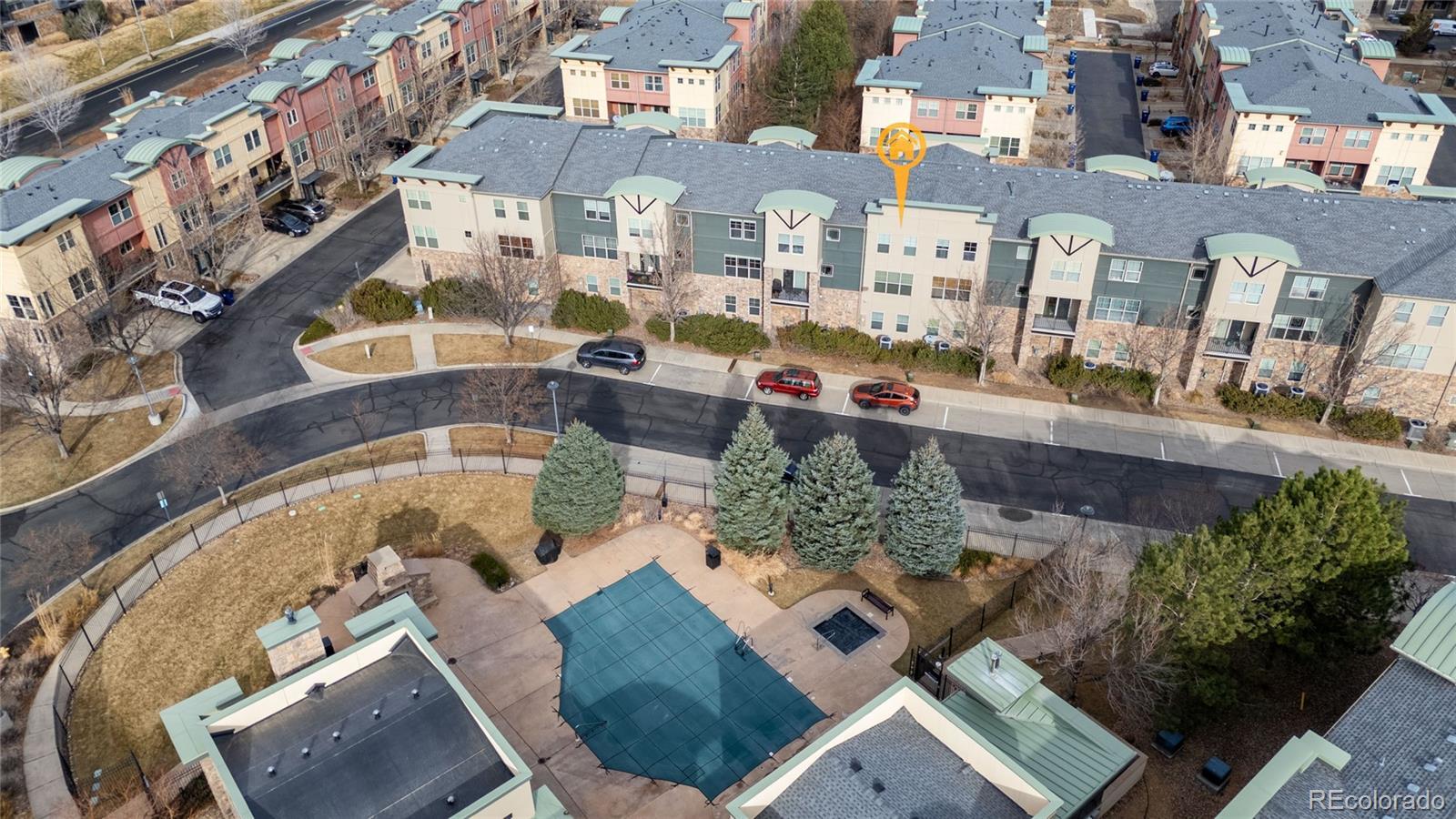 Perfectly positioned between Denver and Boulder, this thoughtfully designed 2-bedroom, 2.5-bath TOWNHOME offers the ease of single-family living paired with resort-style amenities. This middle-unit residence is uniquely situated with views of the clubhouse and a conifer tree–lined community walking path, creating a rare sense of privacy and CONNECTION TO NATURE. The finished tandem garage provides generous storage with custom-built shelving, along with flexible space ideal for a home gym or future bonus room buildout. The open-concept main level features 9 FOOT CEILINGS throughout and is anchored by the dining area's geometric pendant chandelier that seamlessly connects the living room and kitchen. The living room showcases floor-to-ceiling windows overlooking the community area and sleek laminate flooring. The kitchen is equally impressive, offering GRANITE COUNTERTOPS, REFINISHED CABINETRY, A FULL APPLIANCE SUITE, TILE FLOORING, AND DIMMABLE RECESSED LIGHTING. In the evenings, turn on the accent track lighting or relax on the covered patio, listening to the crickets from the nearby Carolyn Holmberg Nature Preserve. Upstairs, the primary suite FEATURES DUAL WALK IN CLOSETS and a spa-like en suite five-piece bathroom. The generously sized second bedroom includes a four-piece en suite bath and walk-in closet. A DEDICATED SAME FLOOR LAUNDRY room with a single owner washer and dryer adds everyday convenience. This location is on the doorstep of the Redtail Ridge Life Science Innovation Campus touting new research and innovation manufacturing facilities, a new Advent Health Hospital, retail stores, and miles of new bike and hiking trails. This home offers incredible value for the future economic impact advertised over the next 5 years to the immediate area. Some photos a digitally augmented and staged.
