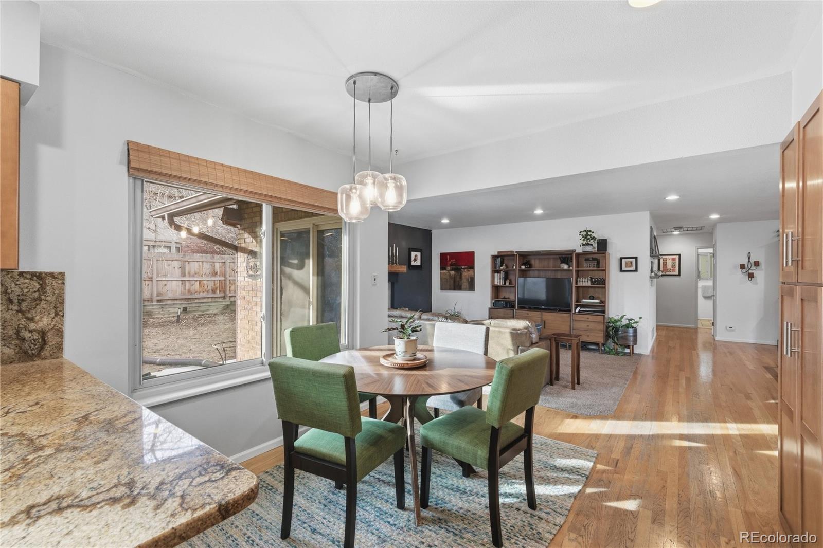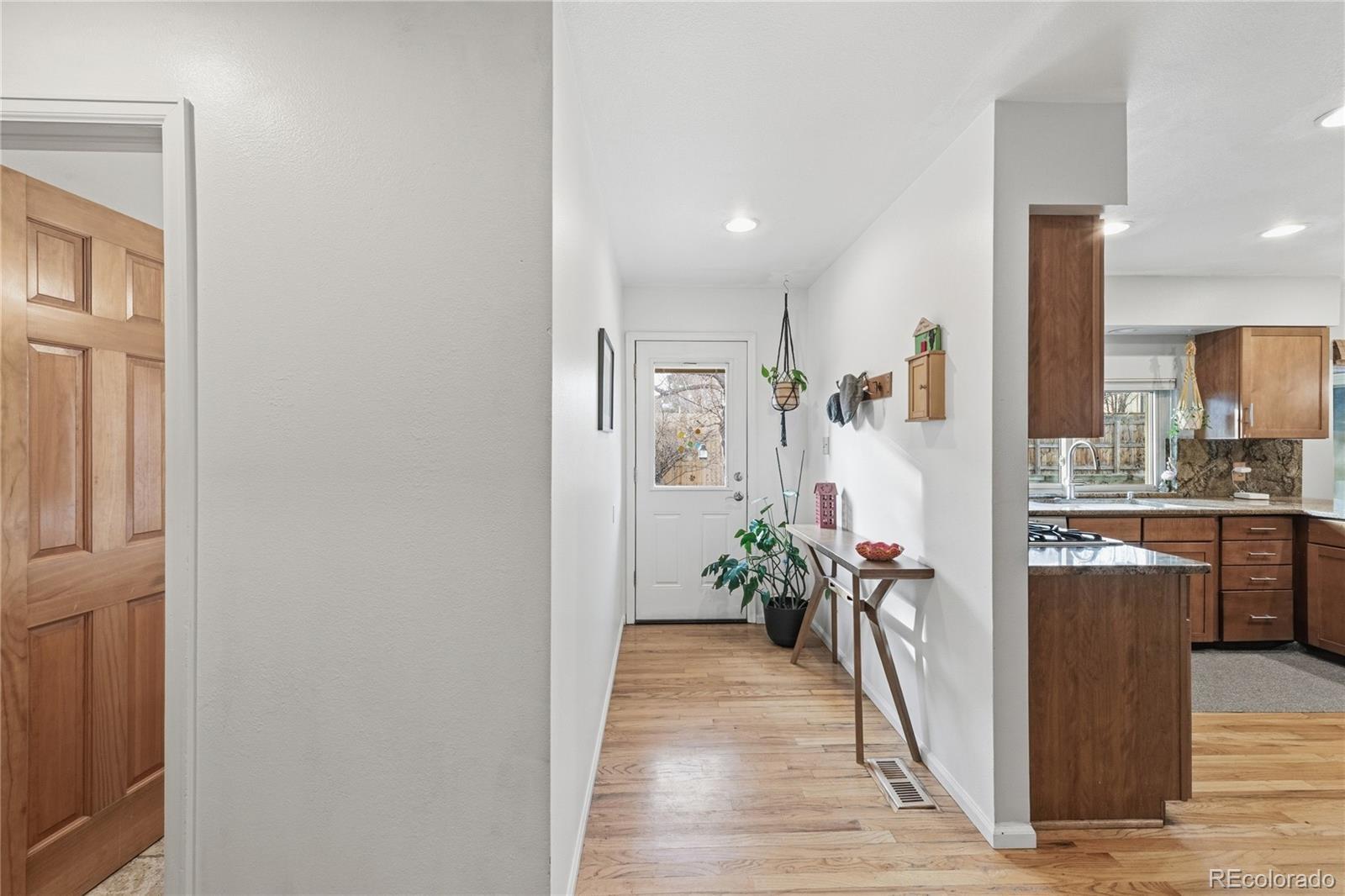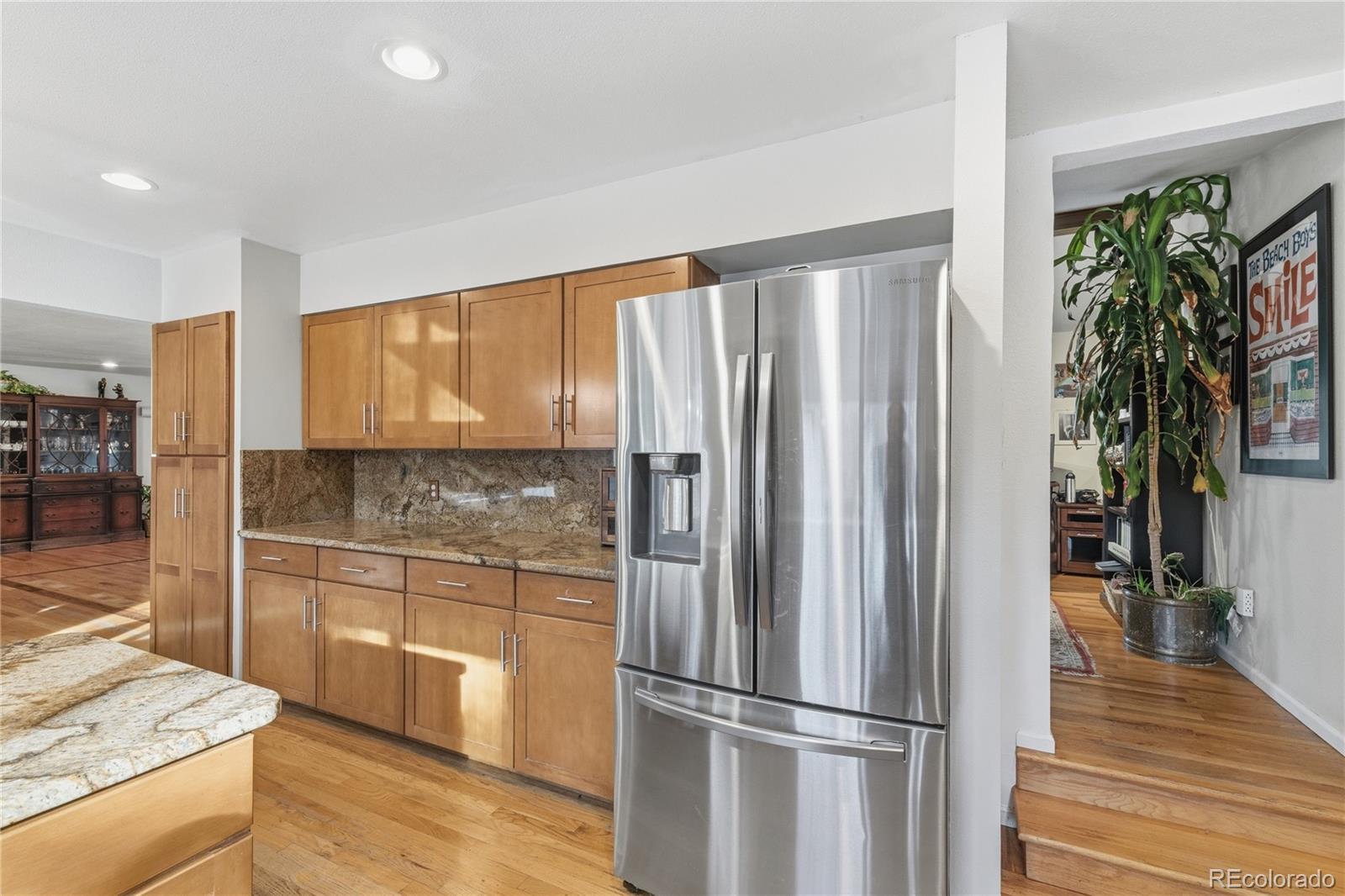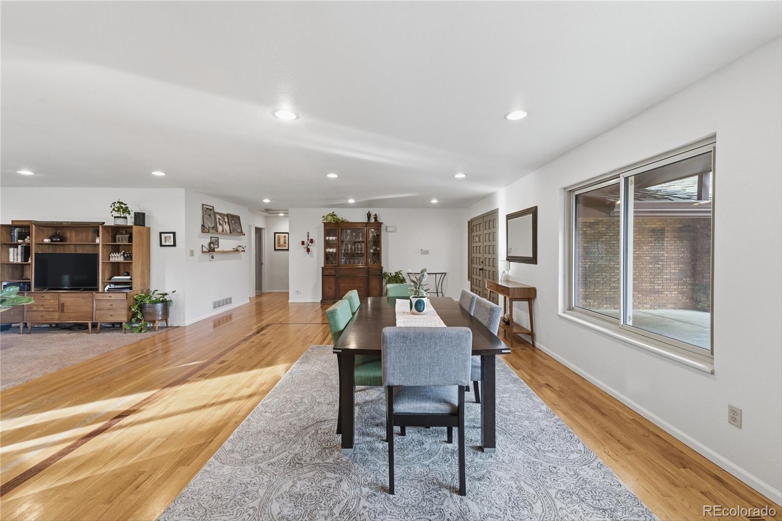 Sprawling 5 Bed | 4 Bath brick ranch on a quiet cul-de-sac in desirable Littleton, can be called home today! Timeless curb appeal welcomes you with classic brick, mature trees, and a newly re-paved driveway (8/2025). Inside, the open-concept main level features hardwood floors, abundant natural light, and a seamless flow between living, dining, and kitchen spaces. The inviting living room is anchored by a woodburning stove (2023), creating warmth and character. The kitchen offers granite countertops, stainless appliances, generous cabinetry, and ample prep space — ideal for everyday living and entertaining. The spacious primary suite includes a large closet and a beautifully appointed en-suite bath with dual sinks, soaking tub, and separate shower. New carpet installed November 2025 (with warranty) adds fresh comfort throughout select areas. The fully finished basement expands your living space with a large recreation area, game room, custom wet bar with seating, beverage fridge, and multiple entertainment zones. An additional bedroom and bathroom provide flexibility for guests, while a substantial storage area keeps everything organized. Step outside to an expansive backyard retreat featuring a large concrete patio, dedicated firepit gathering space, mature landscaping, a peaceful koi pond, and generous lawn — perfect for entertaining, pets, or play. The private lot offers exceptional outdoor living rarely found at this price point. A rare combination of space, updates, and location — this home is move-in ready and designed for both comfort and connection.