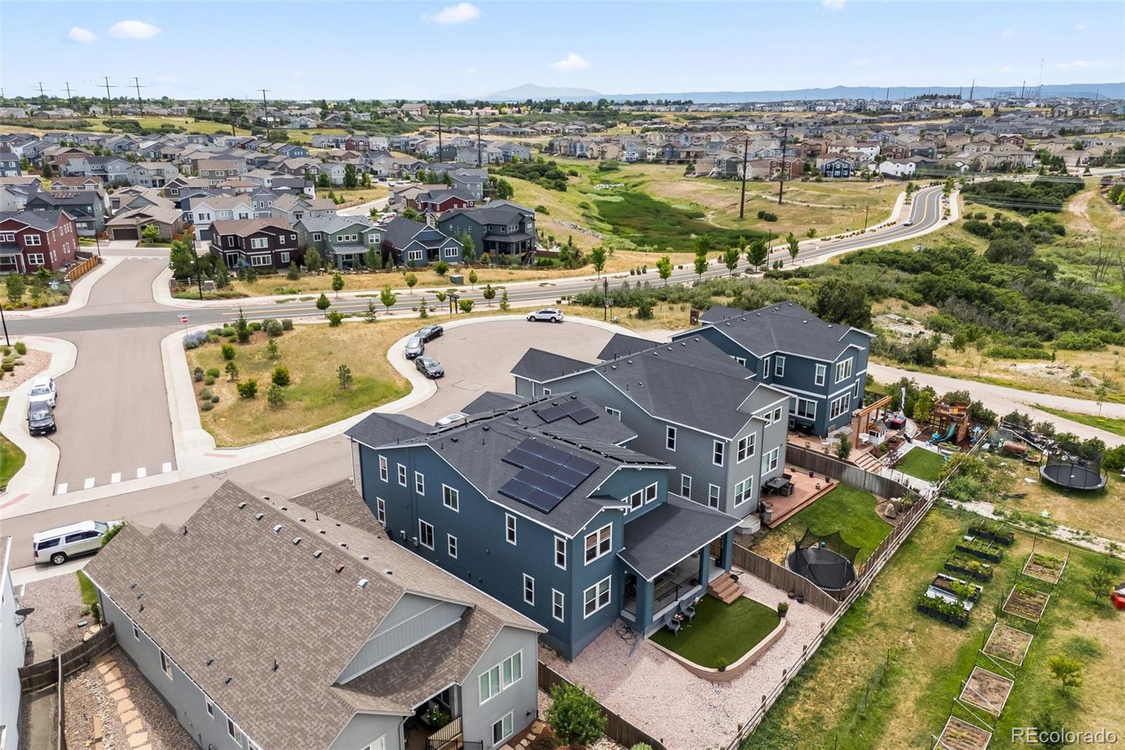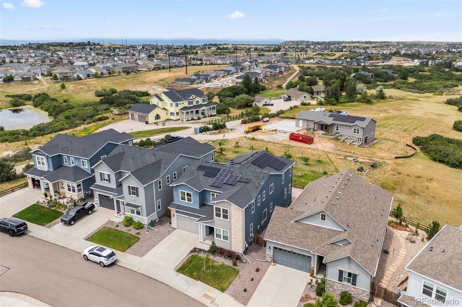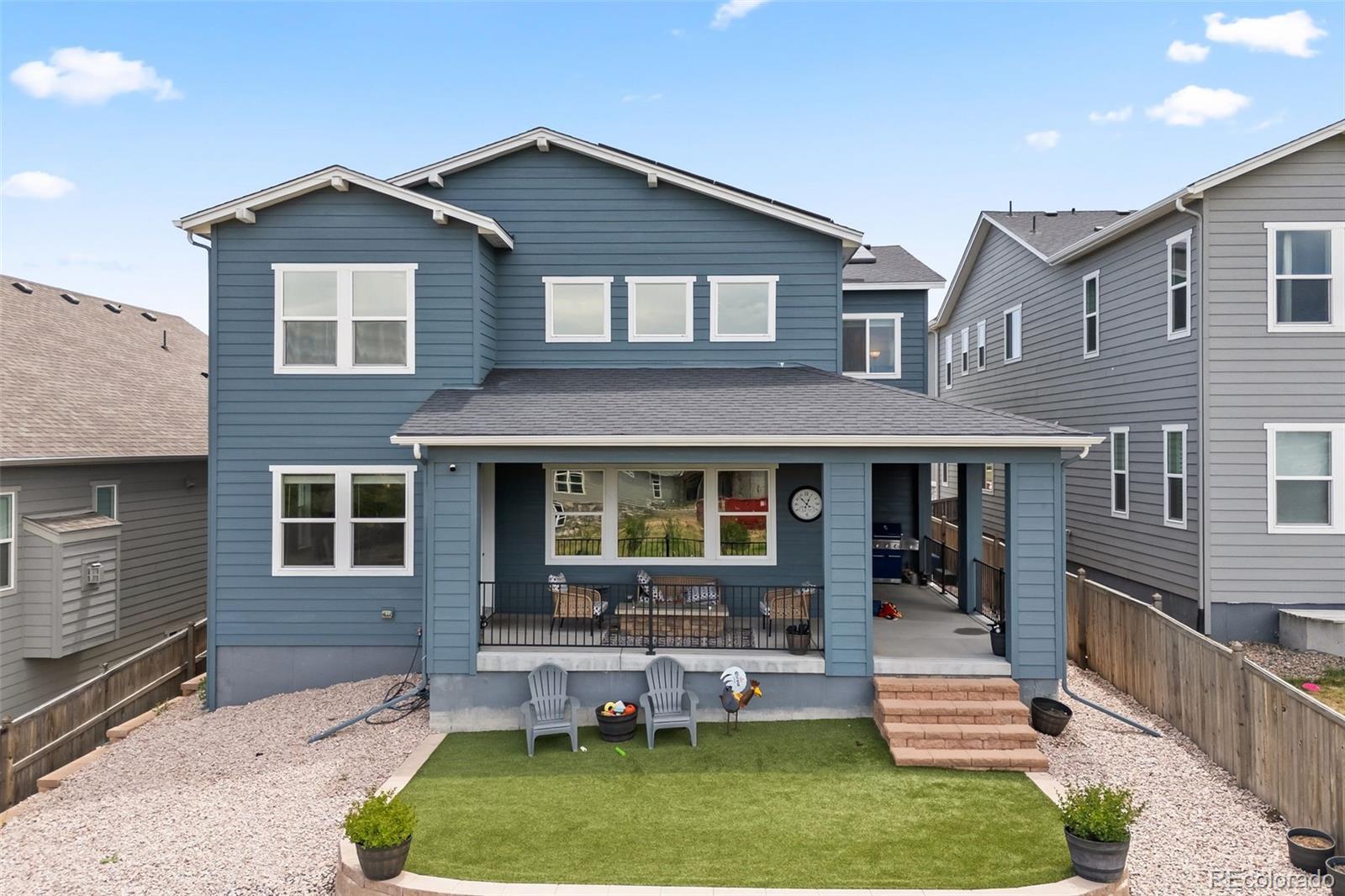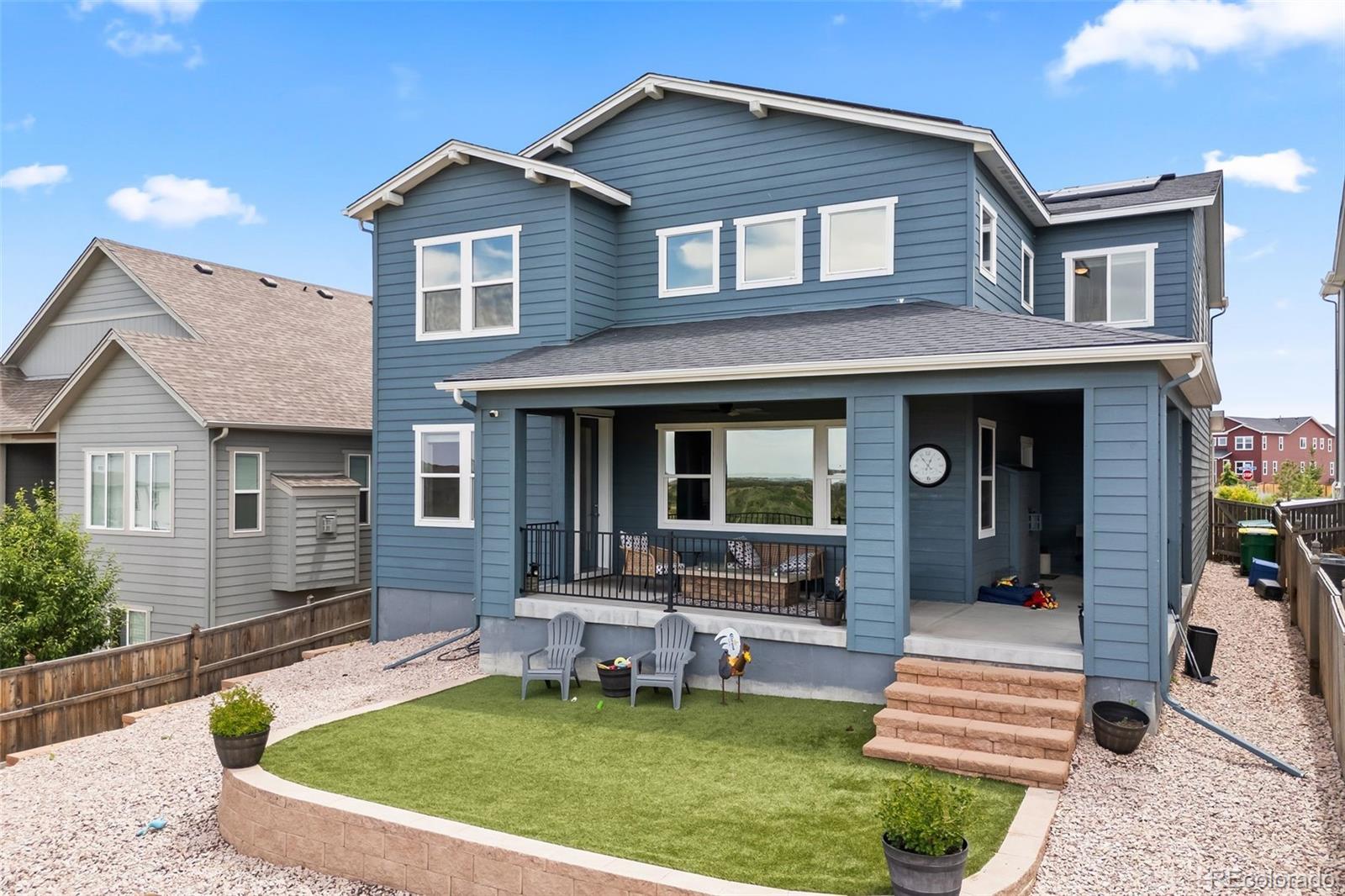 Ask about the 2.75% assumable loan through Chase—an incredible opportunity for qualified buyers to lock in long-term savings. BRAND NEW HAIL RESITANT ROOF AND GUTTERS! Welcome to 4757 Augustine Court—a beautifully updated and impeccably maintained home tucked away on a quiet cul-de-sac in the sought-after Terrain community. Enjoy exceptional privacy and top-tier amenities, with one of Terrain’s pools, parks, and scenic trails just steps from your door. With quick access to highways and downtown Castle Rock, this location offers both tranquility and convenience. This spacious residence offers over 3,100 sq ft of living space, featuring 5 bedrooms and 5 bathrooms—4 with en-suite layouts for ultimate comfort and flexibility. The main floor bedroom is perfect as a guest suite or home office, and the oversized kitchen nook pairs beautifully with a versatile formal dining room or workspace. The heart of the home is a dramatic black-and-white gourmet kitchen, complete with granite and quartz countertops, stainless steel farm sink, double ovens, warming drawer, walk-in pantry, counter seating, and butler’s pantry—ideal for any chef or entertainer. The luxurious primary suite boasts dual walk-in closets and a spa-inspired five-piece bath, offering a peaceful retreat. Thoughtful upgrades include new carpet and luxury vinyl plank flooring, updated vinyl tile in all bathrooms, dual-zone HVAC, tinted heat-reducing windows, a Vivint security system, smart irrigation system, and 39 solar panels for maximum efficiency. Step outside to the covered back porch, perfect for enjoying mountain sunsets and Colorado’s fresh air. A 3-car tandem garage and a huge unfinished basement offer ample storage and room to grow. Explore the unmatched amenities of Terrain and schedule your visit to experience a home where modern comfort, efficiency, and lifestyle come together.
