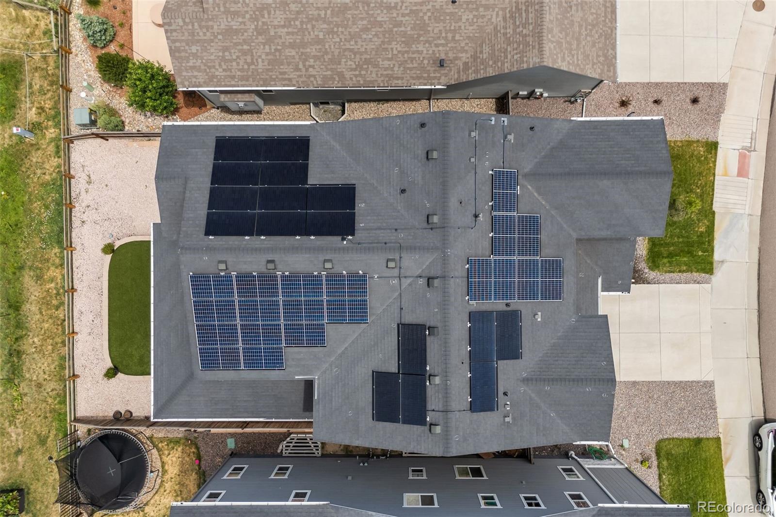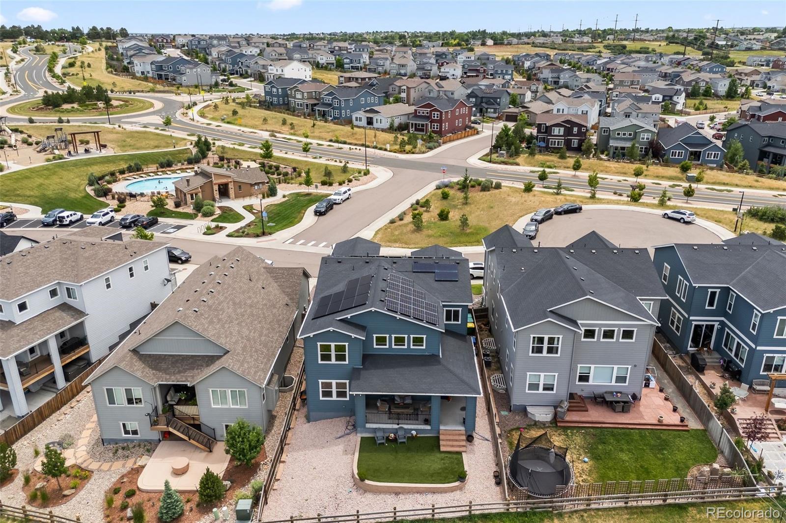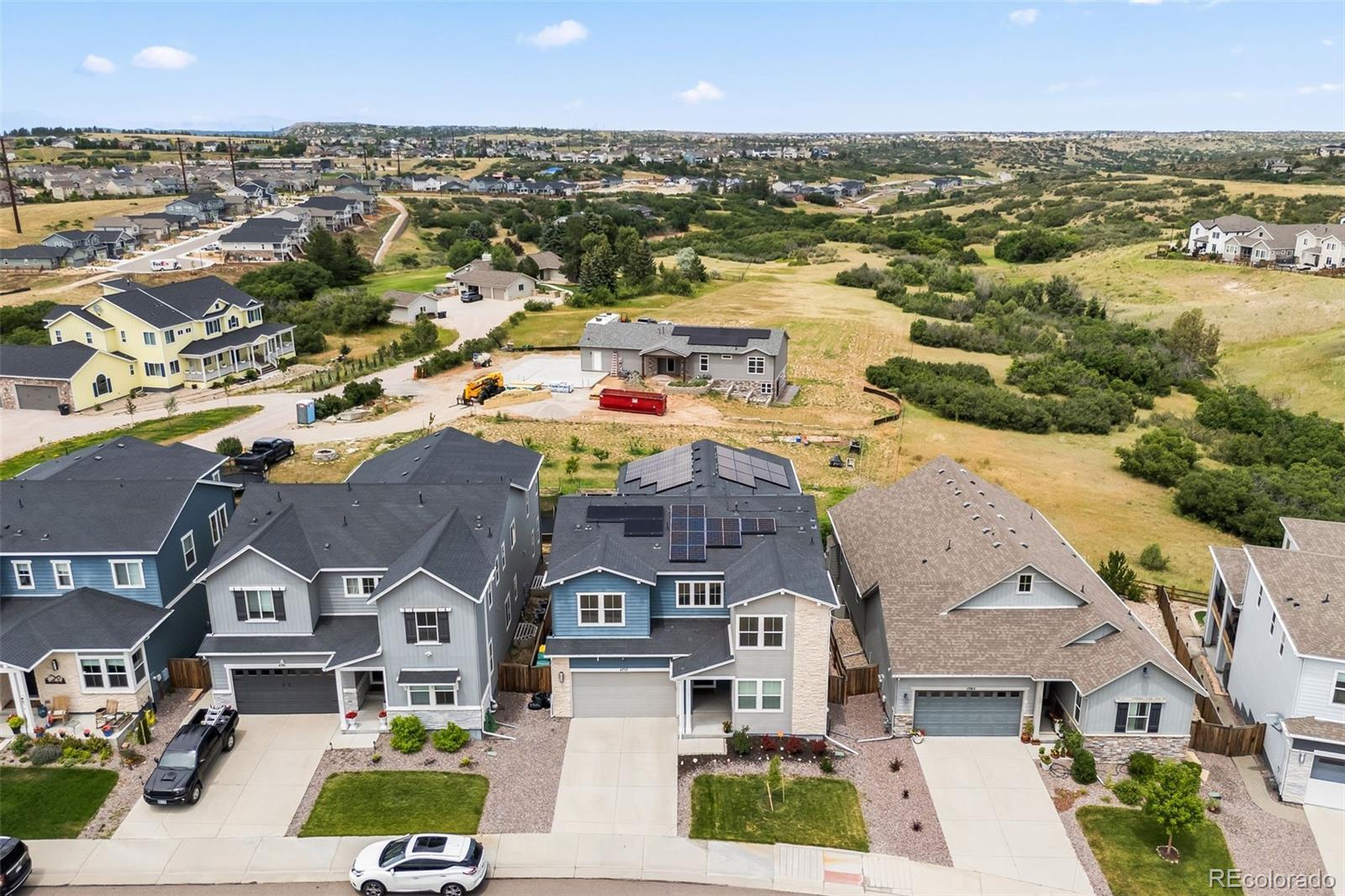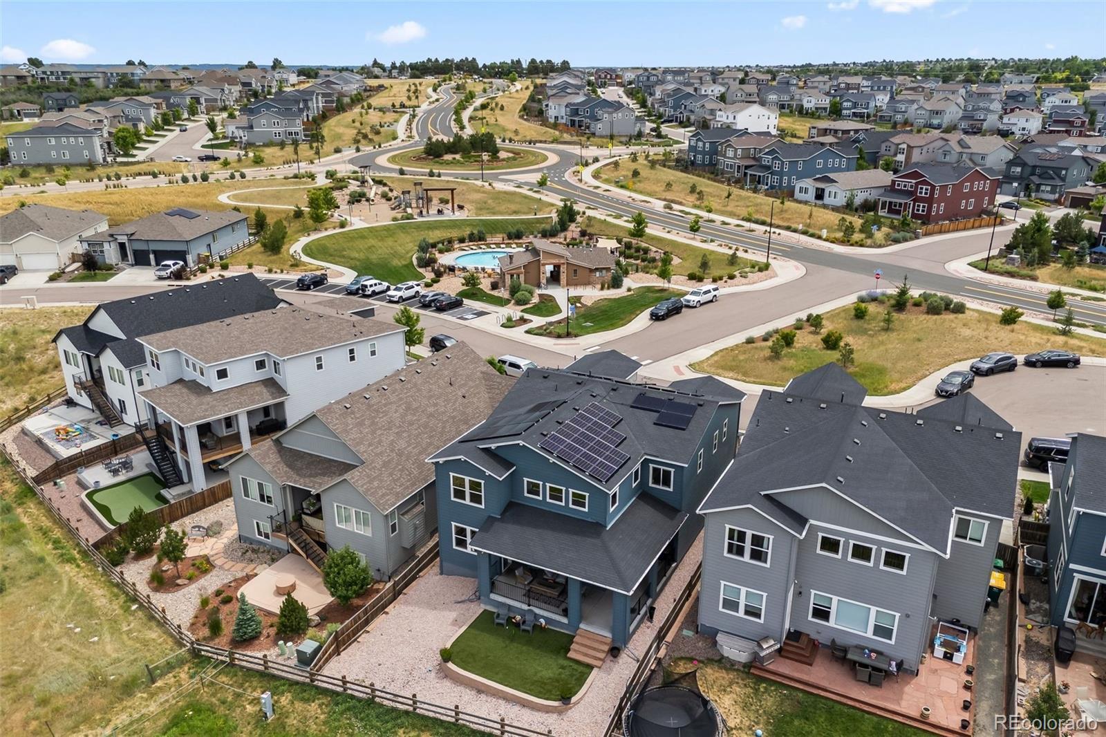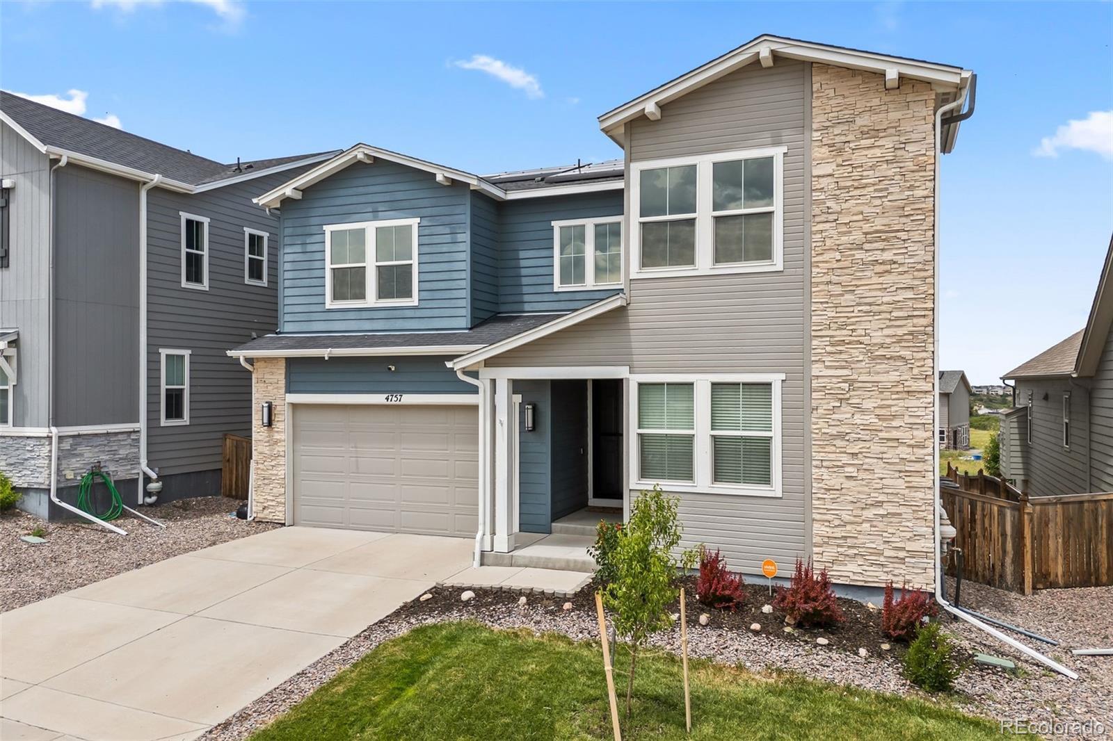 Ask about the 2.75% assumable loan through Chase—an incredible opportunity for qualified buyers to lock in long-term savings. BRAND NEW HAIL RESITANT ROOF AND GUTTERS! Welcome to 4757 Augustine Court—a beautifully updated and impeccably maintained home tucked away on a quiet cul-de-sac in the sought-after Terrain community. Enjoy exceptional privacy and top-tier amenities, with one of Terrain’s pools, parks, and scenic trails just steps from your door. With quick access to highways and downtown Castle Rock, this location offers both tranquility and convenience. This spacious residence offers over 3,100 sq ft of living space, featuring 5 bedrooms and 5 bathrooms—4 with en-suite layouts for ultimate comfort and flexibility. The main floor bedroom is perfect as a guest suite or home office, and the oversized kitchen nook pairs beautifully with a versatile formal dining room or workspace. The heart of the home is a dramatic black-and-white gourmet kitchen, complete with granite and quartz countertops, stainless steel farm sink, double ovens, warming drawer, walk-in pantry, counter seating, and butler’s pantry—ideal for any chef or entertainer. The luxurious primary suite boasts dual walk-in closets and a spa-inspired five-piece bath, offering a peaceful retreat. Thoughtful upgrades include new carpet and luxury vinyl plank flooring, updated vinyl tile in all bathrooms, dual-zone HVAC, tinted heat-reducing windows, a Vivint security system, smart irrigation system, and 39 solar panels for maximum efficiency. Step outside to the covered back porch, perfect for enjoying mountain sunsets and Colorado’s fresh air. A 3-car tandem garage and a huge unfinished basement offer ample storage and room to grow. Explore the unmatched amenities of Terrain and schedule your visit to experience a home where modern comfort, efficiency, and lifestyle come together.