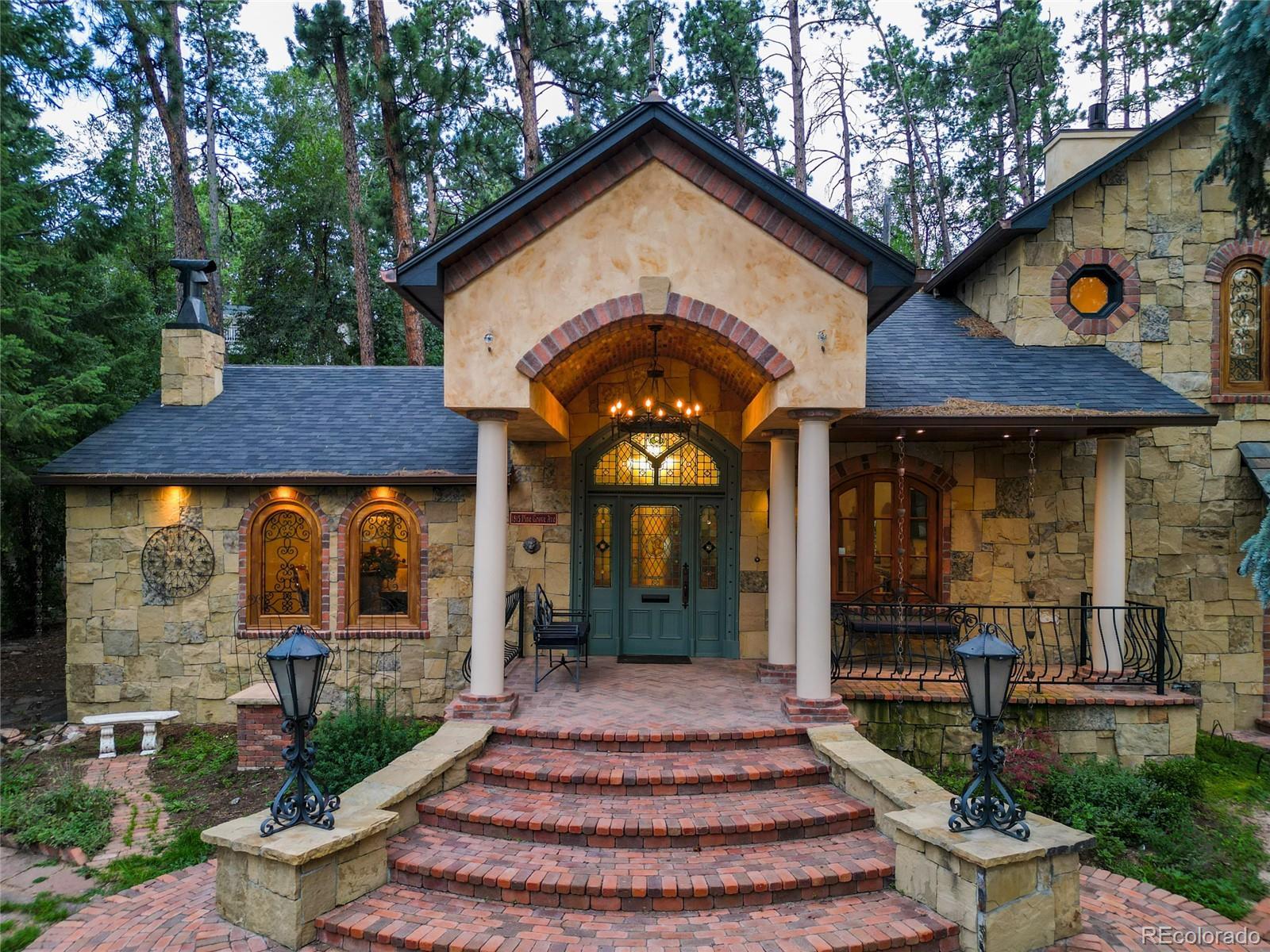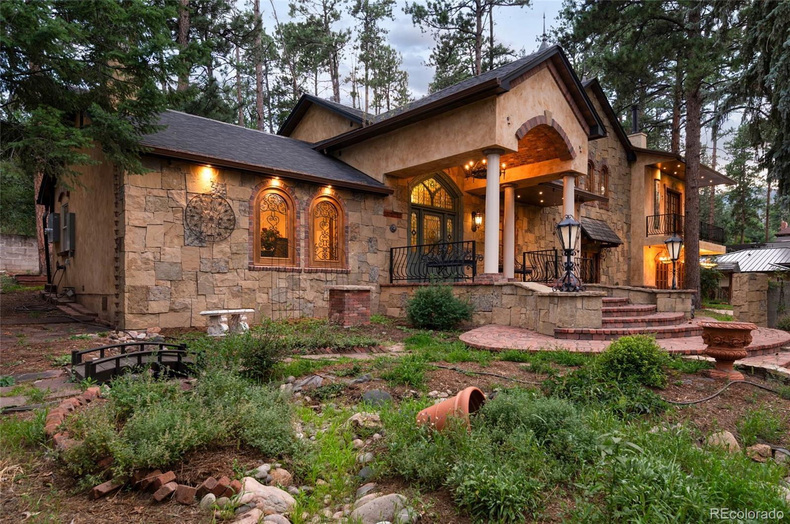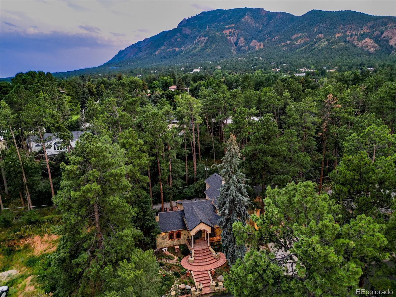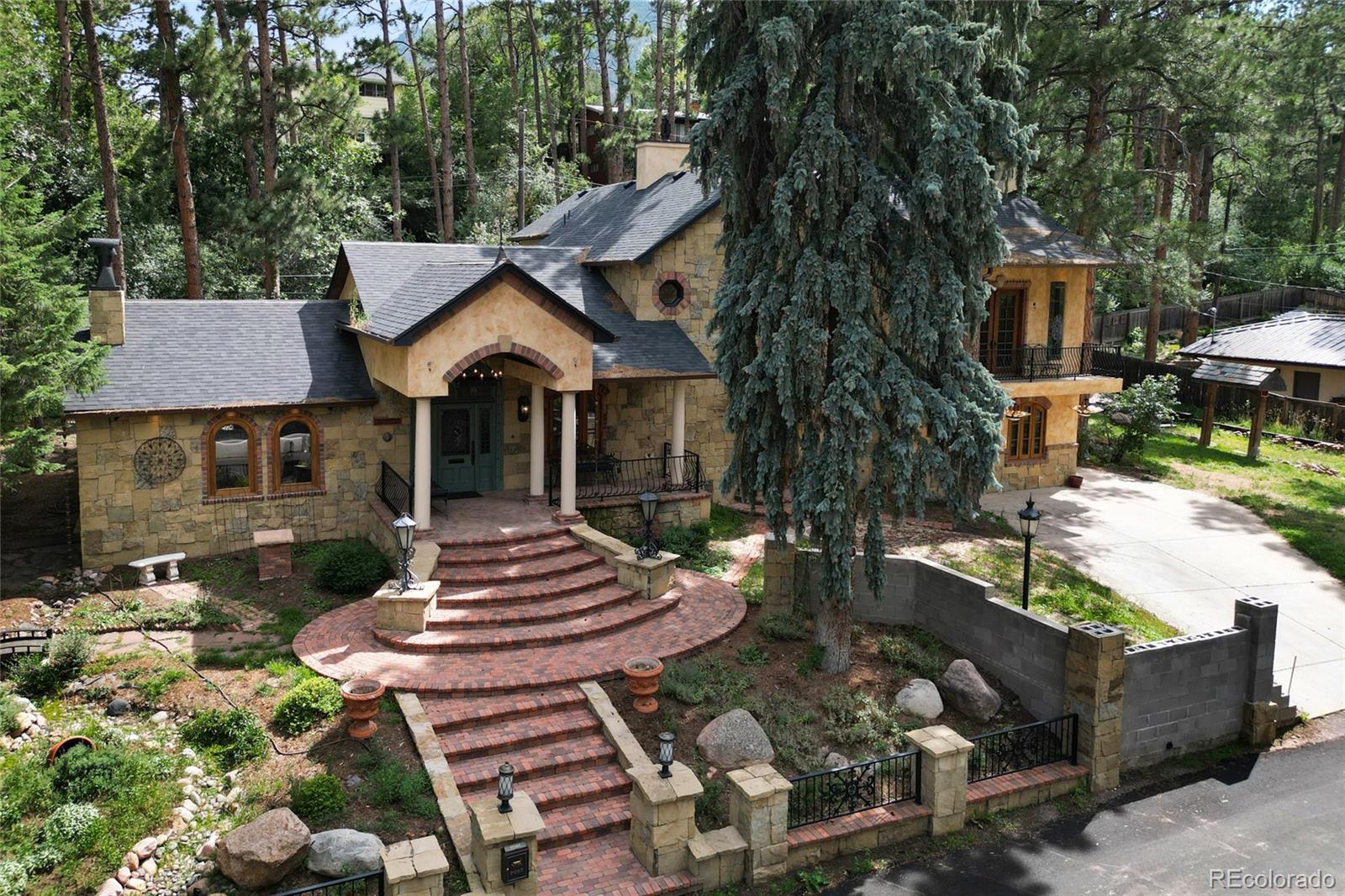 Rare opportunity to own a one-of-a-kind custom Tuscan-inspired home, rebuilt from the foundation up in 2018 after being purchased in 2014. Used as a successful turnkey vacation rental, this remarkable property showcases upgraded features, quality craftsmanship, and timeless character throughout. Perfectly situated within walking distance to the 5-star Broadmoor Hotel and open park space, the home offers a quiet, secluded setting surrounded by mature pine trees and natural habitat teeming with wildlife. The impressive leaded glass front door opens to a warm welcome, where a stunning chandelier, brick-lined ceiling supported by grand columns, arched windows, and wrought iron and leaded glass accents set the tone for elegance. The formal dining room features a fireplace and generous space for large gatherings, while the expansive gourmet chef’s kitchen is a showpiece with professional-grade appliances, an 8-burner gas range with griddle, a copper apron sink detailed with grapevine accents, Rocky Mountain granite backsplash, and a wine refrigerator. The inviting living room offers a second fireplace, built-in shelving, and abundant natural light. Upstairs, the primary retreat occupies the entire 1,119 sq. ft. level—a serene sanctuary with a spacious sitting area, two fireplaces, French doors to a private balcony, a wine refrigerator, and a one-of-a-kind rock-cut sink. The luxurious en-suite features a double-sized jetted tub and a massive walk-in spa shower. Outdoors, the private backyard offers multiple spaces for relaxation and entertaining, all framed by the home’s peaceful, natural surroundings. Additional highlights include a tankless water heater and thoughtful design elements throughout. Plenty of off-street parking and there are building plans to add a garage if desired. This is a rare chance to own a truly unique, secluded luxury home just steps from world-class amenities.