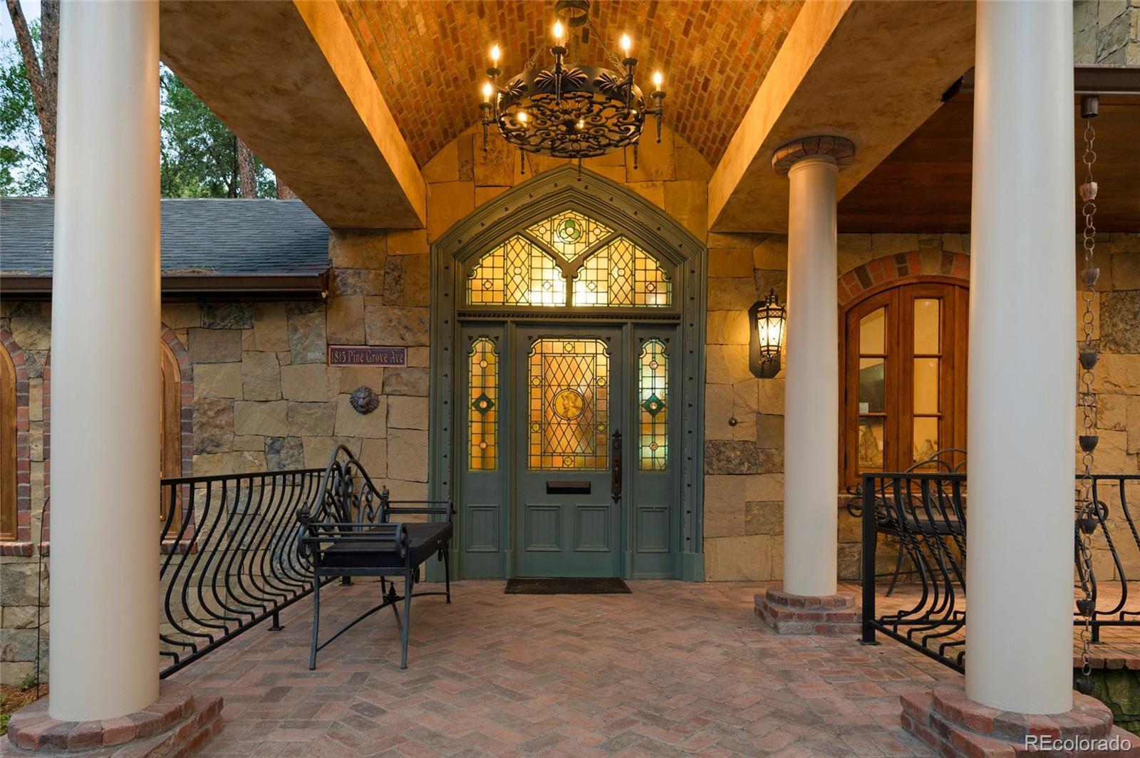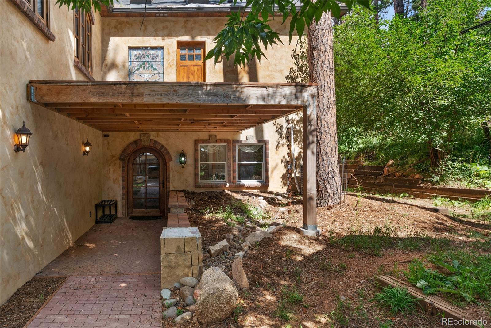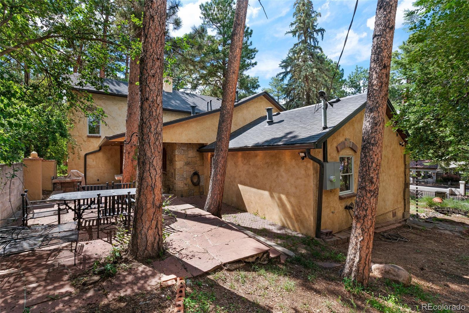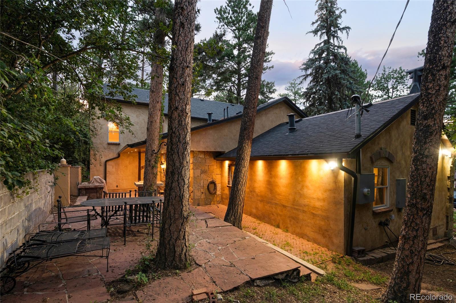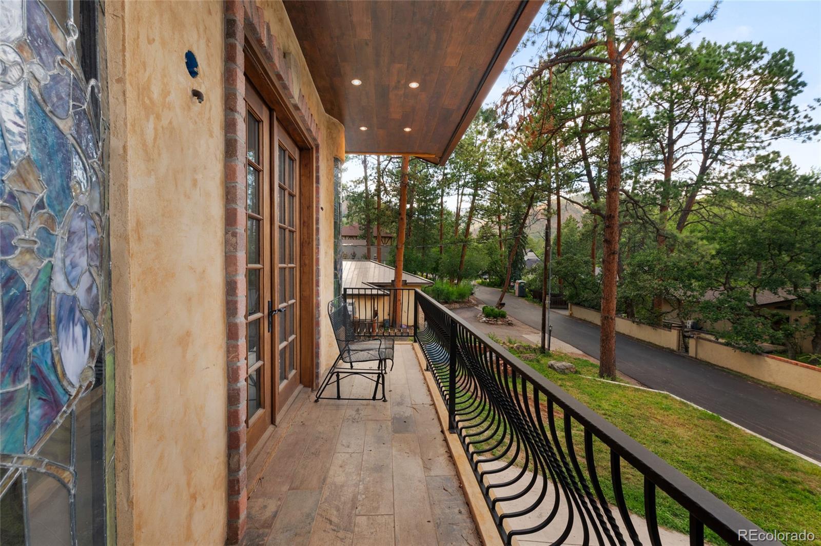Rare opportunity to own a one-of-a-kind custom Tuscan-inspired home, rebuilt from the foundation up in 2018 after being purchased in 2014. Used as a successful turnkey vacation rental, this remarkable property showcases upgraded features, quality craftsmanship, and timeless character throughout. Perfectly situated within walking distance to the 5-star Broadmoor Hotel and open park space, the home offers a quiet, secluded setting surrounded by mature pine trees and natural habitat teeming with wildlife. The impressive leaded glass front door opens to a warm welcome, where a stunning chandelier, brick-lined ceiling supported by grand columns, arched windows, and wrought iron and leaded glass accents set the tone for elegance. The formal dining room features a fireplace and generous space for large gatherings, while the expansive gourmet chef’s kitchen is a showpiece with professional-grade appliances, an 8-burner gas range with griddle, a copper apron sink detailed with grapevine accents, Rocky Mountain granite backsplash, and a wine refrigerator. The inviting living room offers a second fireplace, built-in shelving, and abundant natural light. Upstairs, the primary retreat occupies the entire 1,119 sq. ft. level—a serene sanctuary with a spacious sitting area, two fireplaces, French doors to a private balcony, a wine refrigerator, and a one-of-a-kind rock-cut sink. The luxurious en-suite features a double-sized jetted tub and a massive walk-in spa shower. Outdoors, the private backyard offers multiple spaces for relaxation and entertaining, all framed by the home’s peaceful, natural surroundings. Additional highlights include a tankless water heater and thoughtful design elements throughout. Plenty of off-street parking and there are building plans to add a garage if desired. This is a rare chance to own a truly unique, secluded luxury home just steps from world-class amenities.