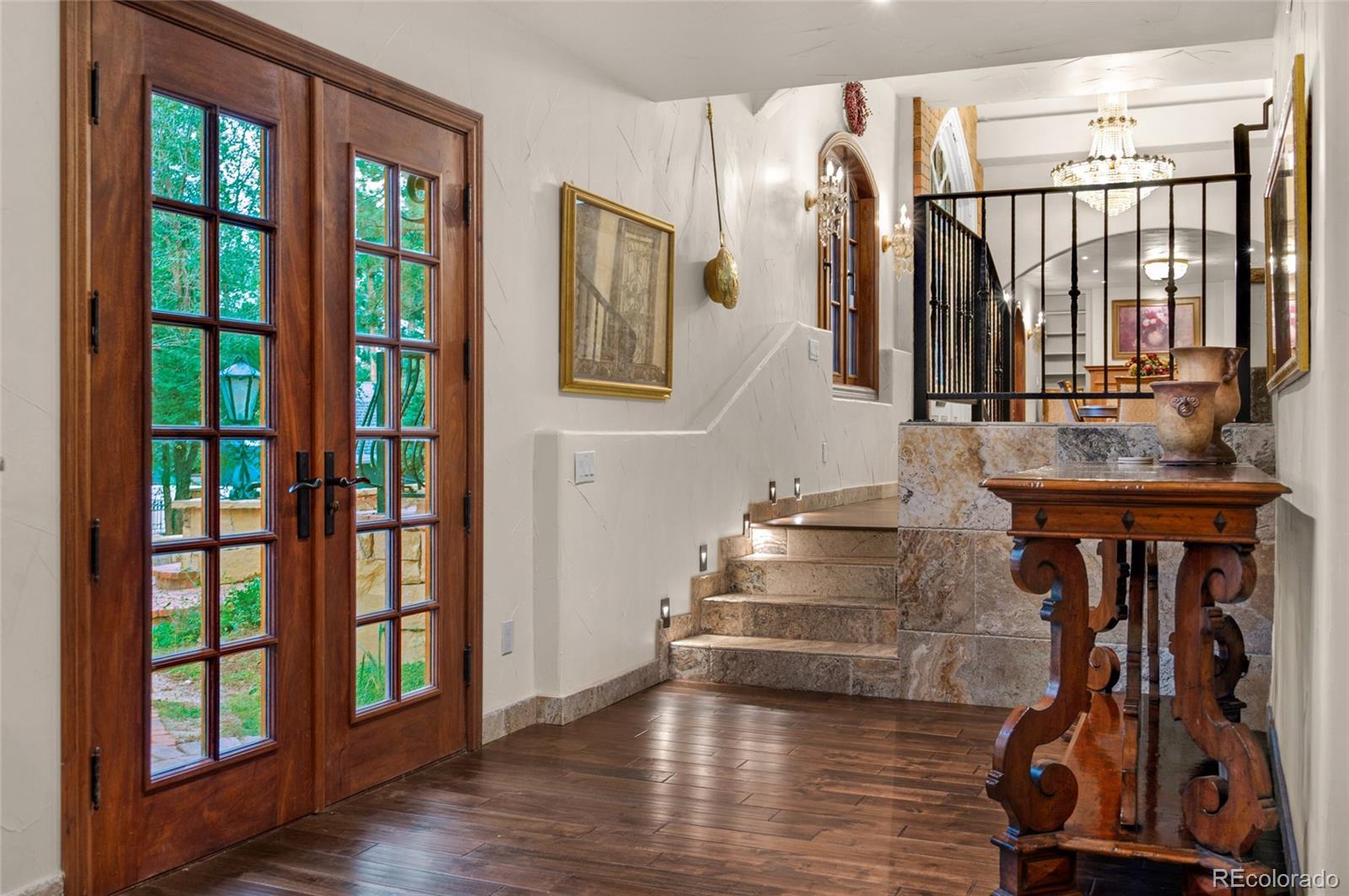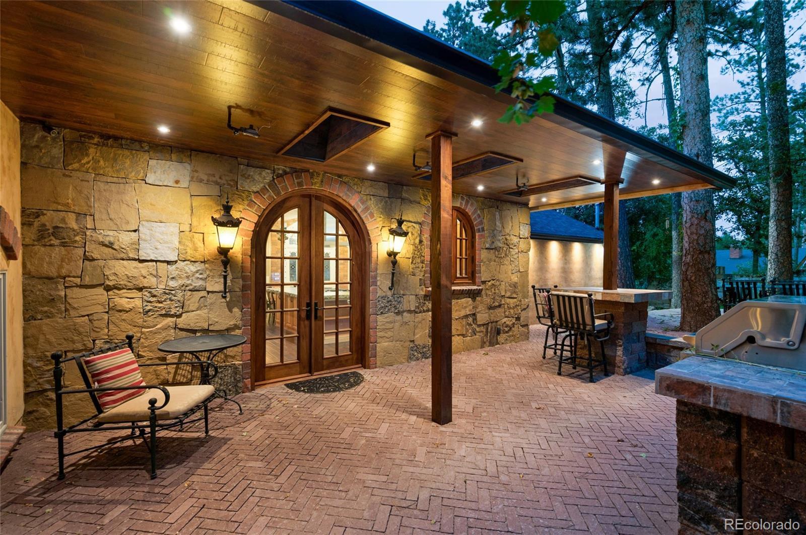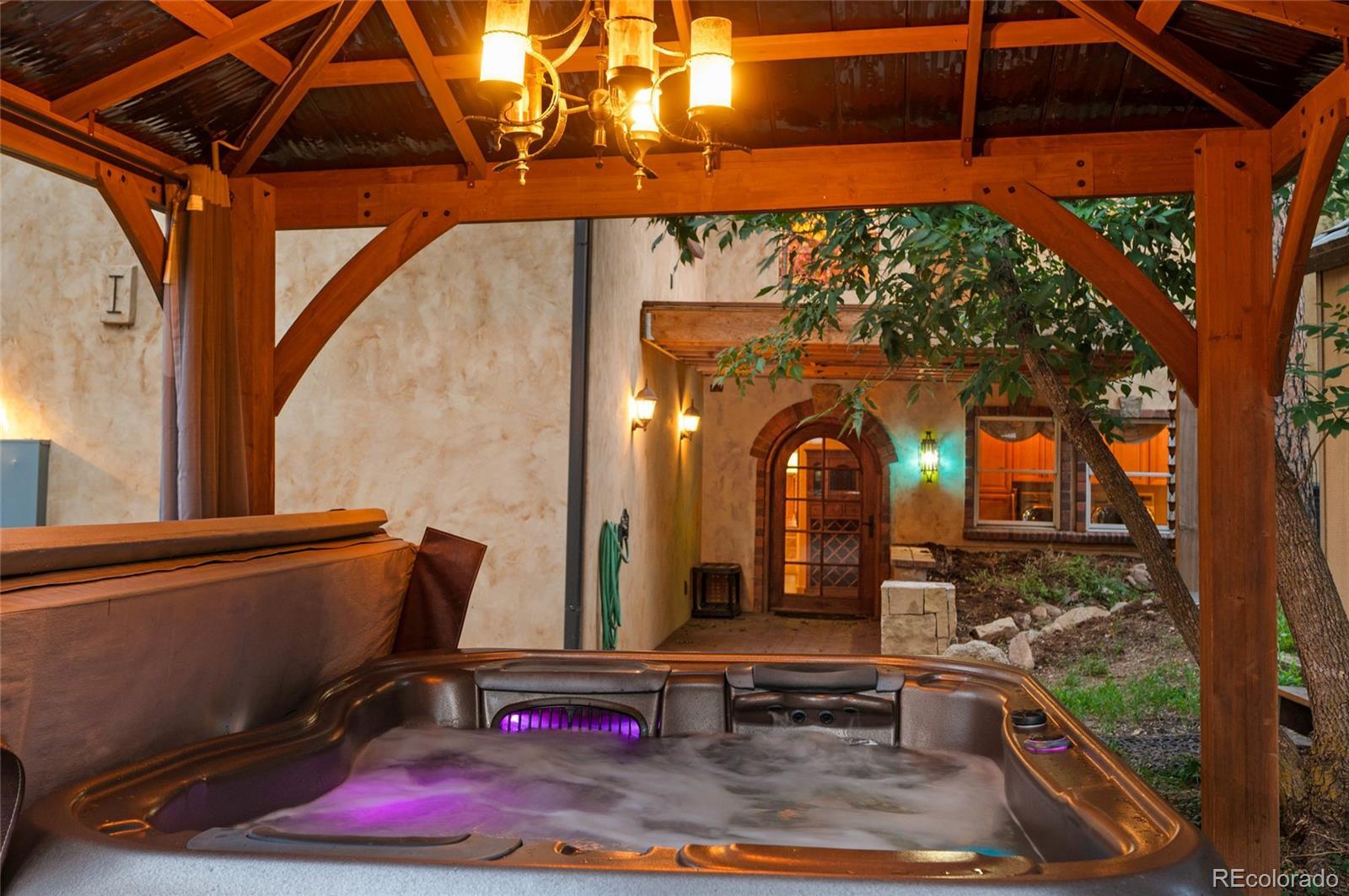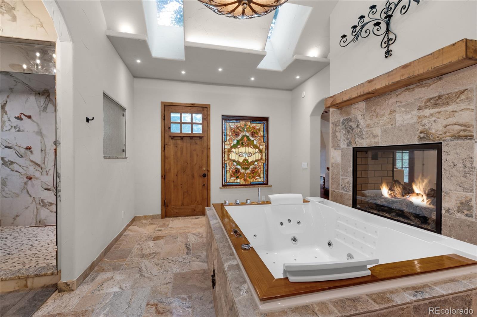 Rare opportunity to own a one-of-a-kind custom Tuscan-inspired home, rebuilt from the foundation up in 2018 after being purchased in 2014. Used as a successful turnkey vacation rental, this remarkable property showcases upgraded features, quality craftsmanship, and timeless character throughout. Perfectly situated within walking distance to the 5-star Broadmoor Hotel and open park space, the home offers a quiet, secluded setting surrounded by mature pine trees and natural habitat teeming with wildlife. The impressive leaded glass front door opens to a warm welcome, where a stunning chandelier, brick-lined ceiling supported by grand columns, arched windows, and wrought iron and leaded glass accents set the tone for elegance. The formal dining room features a fireplace and generous space for large gatherings, while the expansive gourmet chef’s kitchen is a showpiece with professional-grade appliances, an 8-burner gas range with griddle, a copper apron sink detailed with grapevine accents, Rocky Mountain granite backsplash, and a wine refrigerator. The inviting living room offers a second fireplace, built-in shelving, and abundant natural light. Upstairs, the primary retreat occupies the entire 1,119 sq. ft. level—a serene sanctuary with a spacious sitting area, two fireplaces, French doors to a private balcony, a wine refrigerator, and a one-of-a-kind rock-cut sink. The luxurious en-suite features a double-sized jetted tub and a massive walk-in spa shower. Outdoors, the private backyard offers multiple spaces for relaxation and entertaining, all framed by the home’s peaceful, natural surroundings. Additional highlights include a tankless water heater and thoughtful design elements throughout. Plenty of off-street parking and there are building plans to add a garage if desired. This is a rare chance to own a truly unique, secluded luxury home just steps from world-class amenities.