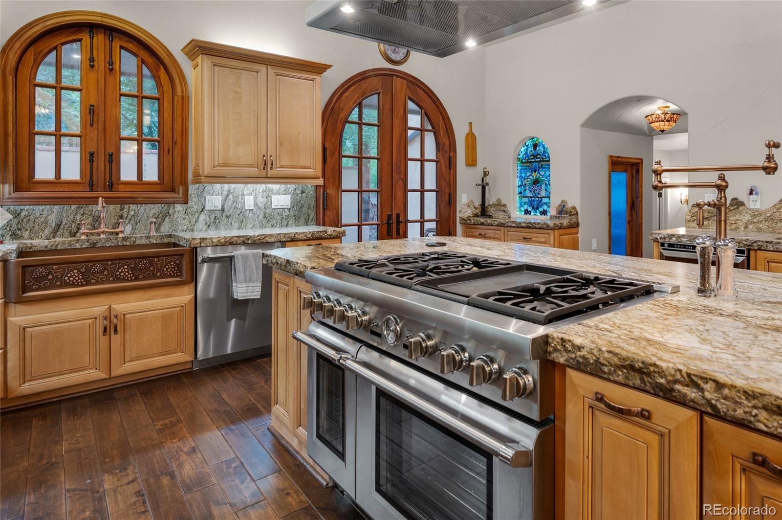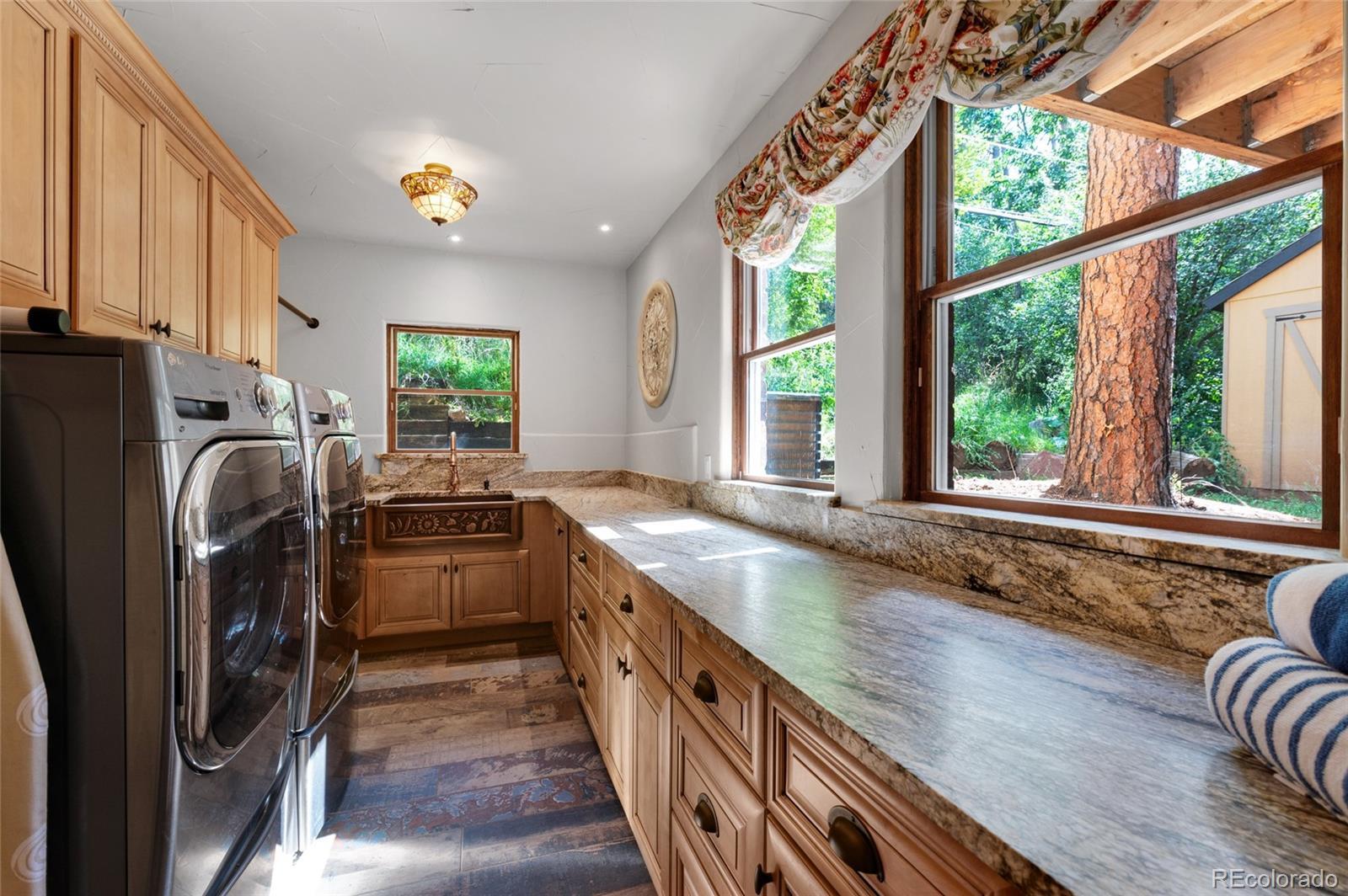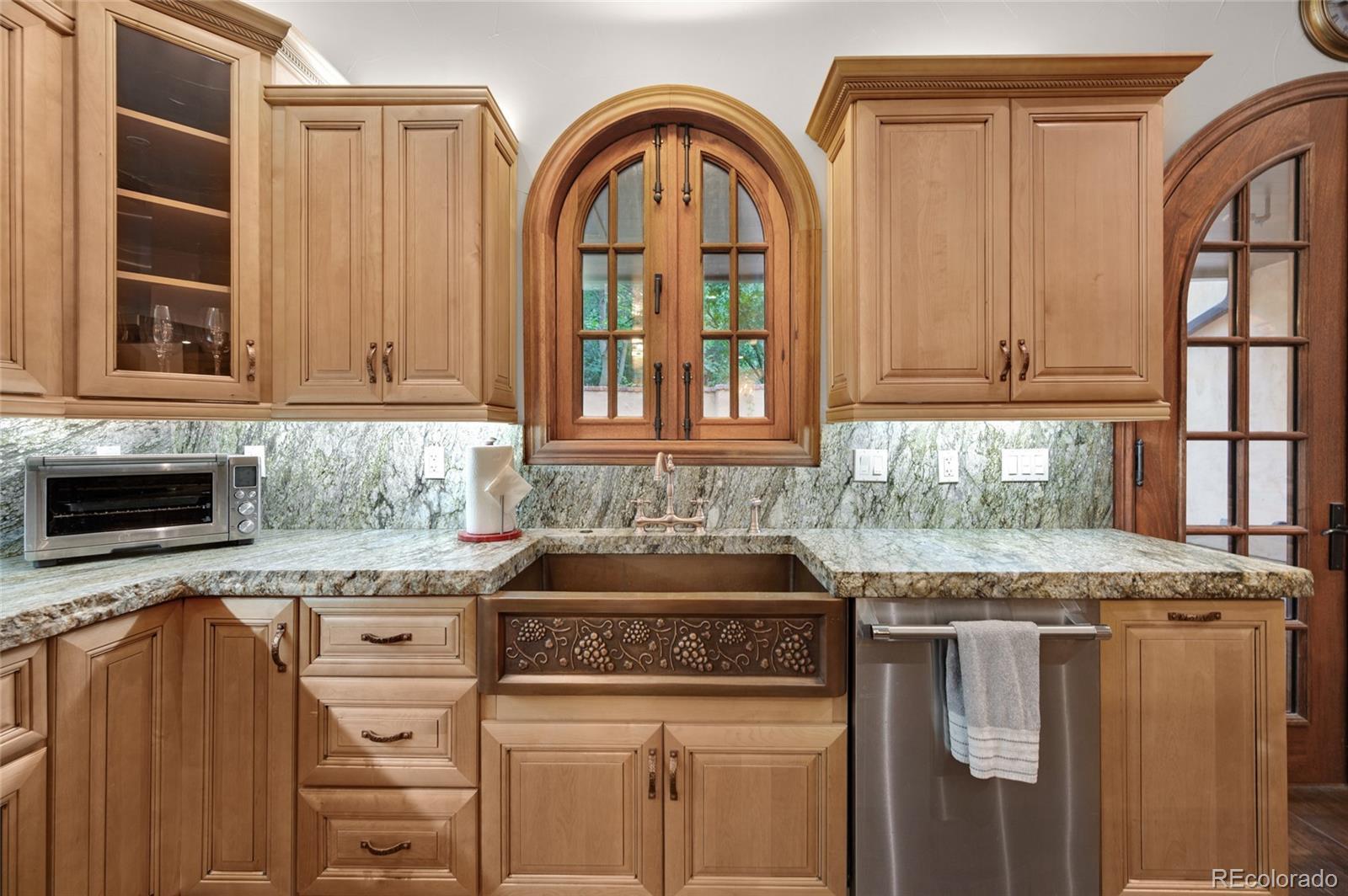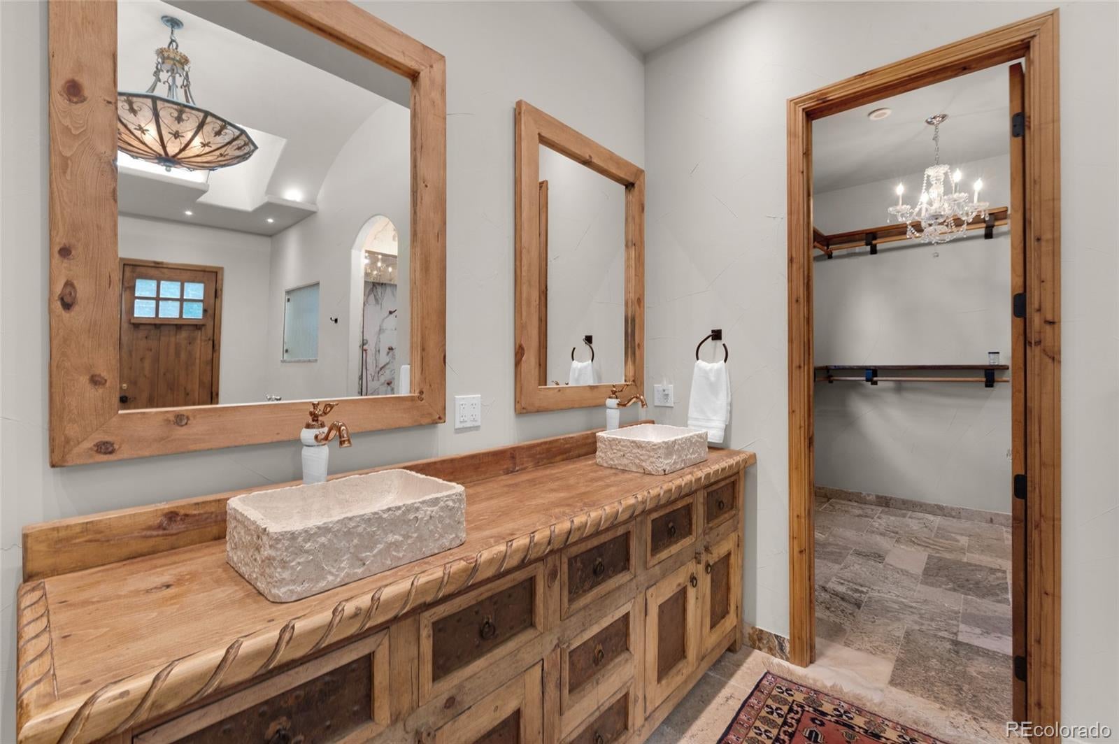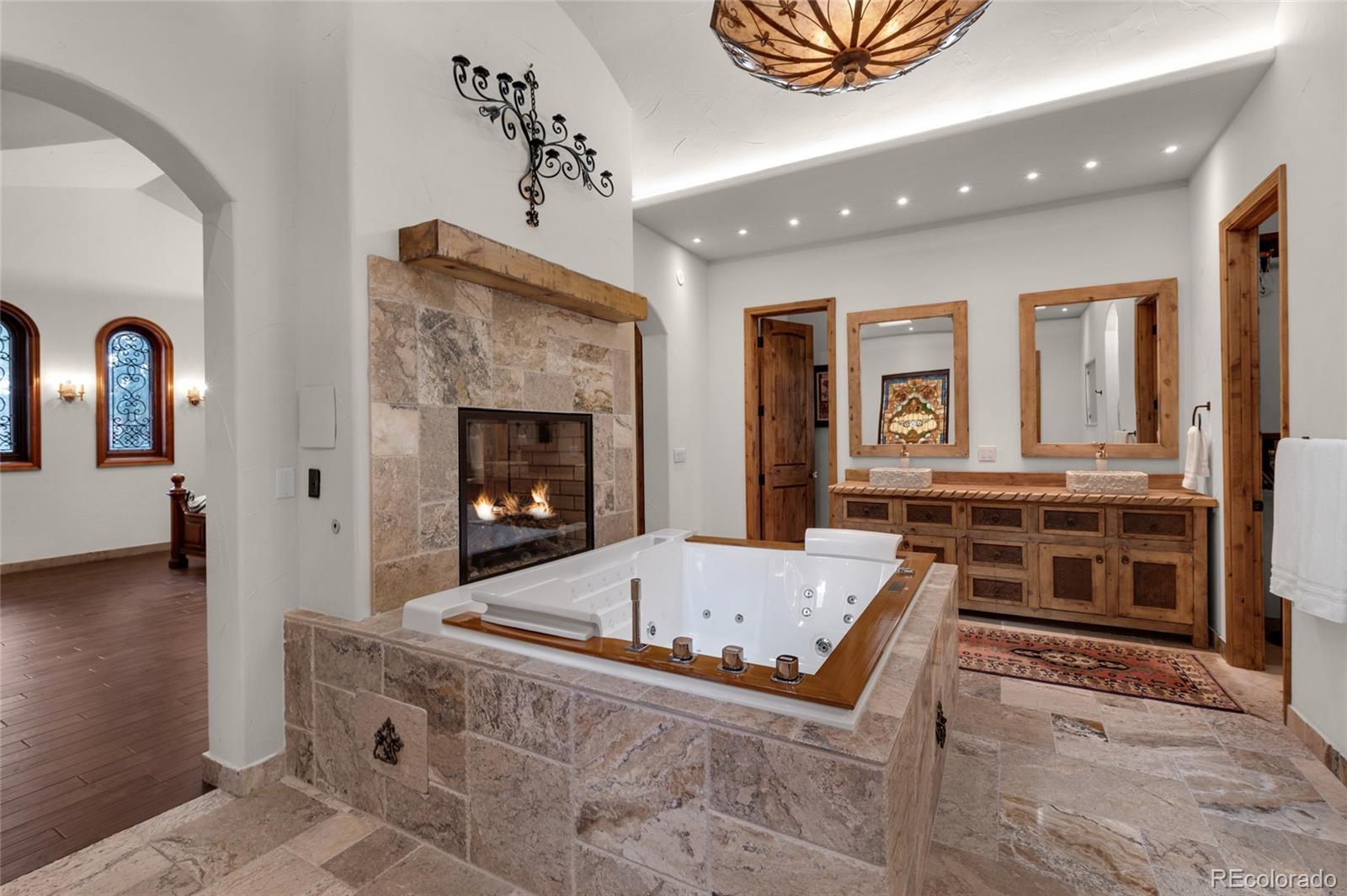 Rare opportunity to own a one-of-a-kind custom Tuscan-inspired home, rebuilt from the foundation up in 2018 after being purchased in 2014. Used as a successful turnkey vacation rental, this remarkable property showcases upgraded features, quality craftsmanship, and timeless character throughout. Perfectly situated within walking distance to the 5-star Broadmoor Hotel and open park space, the home offers a quiet, secluded setting surrounded by mature pine trees and natural habitat teeming with wildlife. The impressive leaded glass front door opens to a warm welcome, where a stunning chandelier, brick-lined ceiling supported by grand columns, arched windows, and wrought iron and leaded glass accents set the tone for elegance. The formal dining room features a fireplace and generous space for large gatherings, while the expansive gourmet chef’s kitchen is a showpiece with professional-grade appliances, an 8-burner gas range with griddle, a copper apron sink detailed with grapevine accents, Rocky Mountain granite backsplash, and a wine refrigerator. The inviting living room offers a second fireplace, built-in shelving, and abundant natural light. Upstairs, the primary retreat occupies the entire 1,119 sq. ft. level—a serene sanctuary with a spacious sitting area, two fireplaces, French doors to a private balcony, a wine refrigerator, and a one-of-a-kind rock-cut sink. The luxurious en-suite features a double-sized jetted tub and a massive walk-in spa shower. Outdoors, the private backyard offers multiple spaces for relaxation and entertaining, all framed by the home’s peaceful, natural surroundings. Additional highlights include a tankless water heater and thoughtful design elements throughout. Plenty of off-street parking and there are building plans to add a garage if desired. This is a rare chance to own a truly unique, secluded luxury home just steps from world-class amenities.