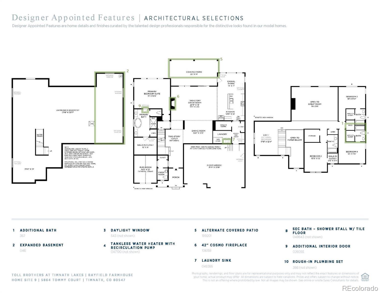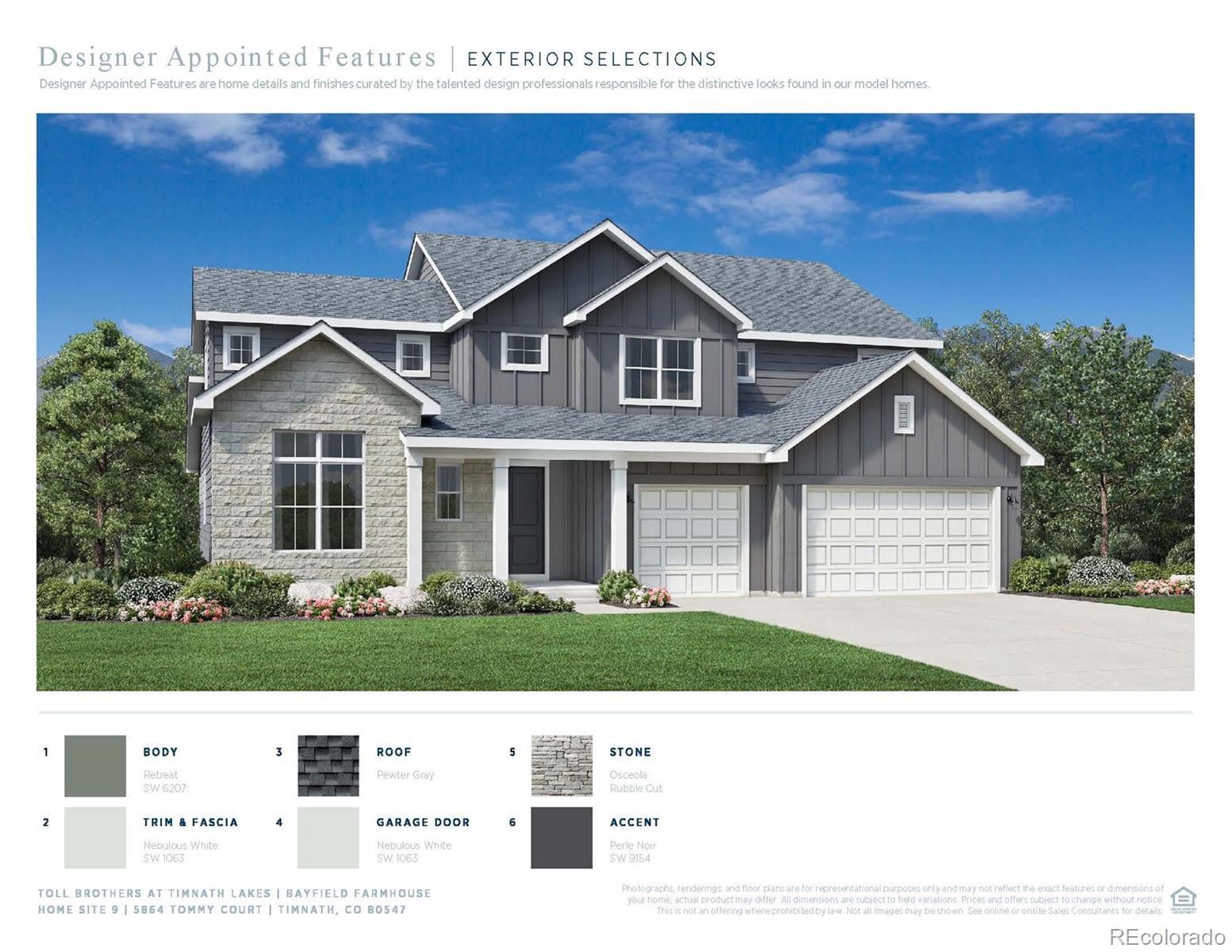 Love everything about this Bayfield Farmhouse. 3,870 finished square feet—main level primary, 4 bedrooms, 4 ½ bathrooms, 3-car garage, flex room, loft, and formal dining. This home is located in a cul-de-sac location and boasts a south-facing driveway for a dry winter driveway and a cool rear yard in the hot summer months. The gourmet kitchen features a huge, expanded island, Ripieno polished quartz counters, and Jennair appliances, including double ovens and a 42" built-in refrigerator. The primary bath includes designer tile upgrades plus a free-standing Kohler bathtub, dual vanities, and a large walk-in closet. Three additional bedrooms, each with full baths, ample storage, and a spacious loft, round out the second floor. 2,308 square feet of unfinished basement, with two rough-in plumbing sets and four daylight windows, provides numerous future finishing options. Maximize efficiency with 2 HVAC units and a tankless water heater with a recirculation pump. Northern Colorado’s hottest new community is walkable to downtown Timnath, trails, boating, fishing, and more. Schedule an appointment today to learn more about this stunning home!