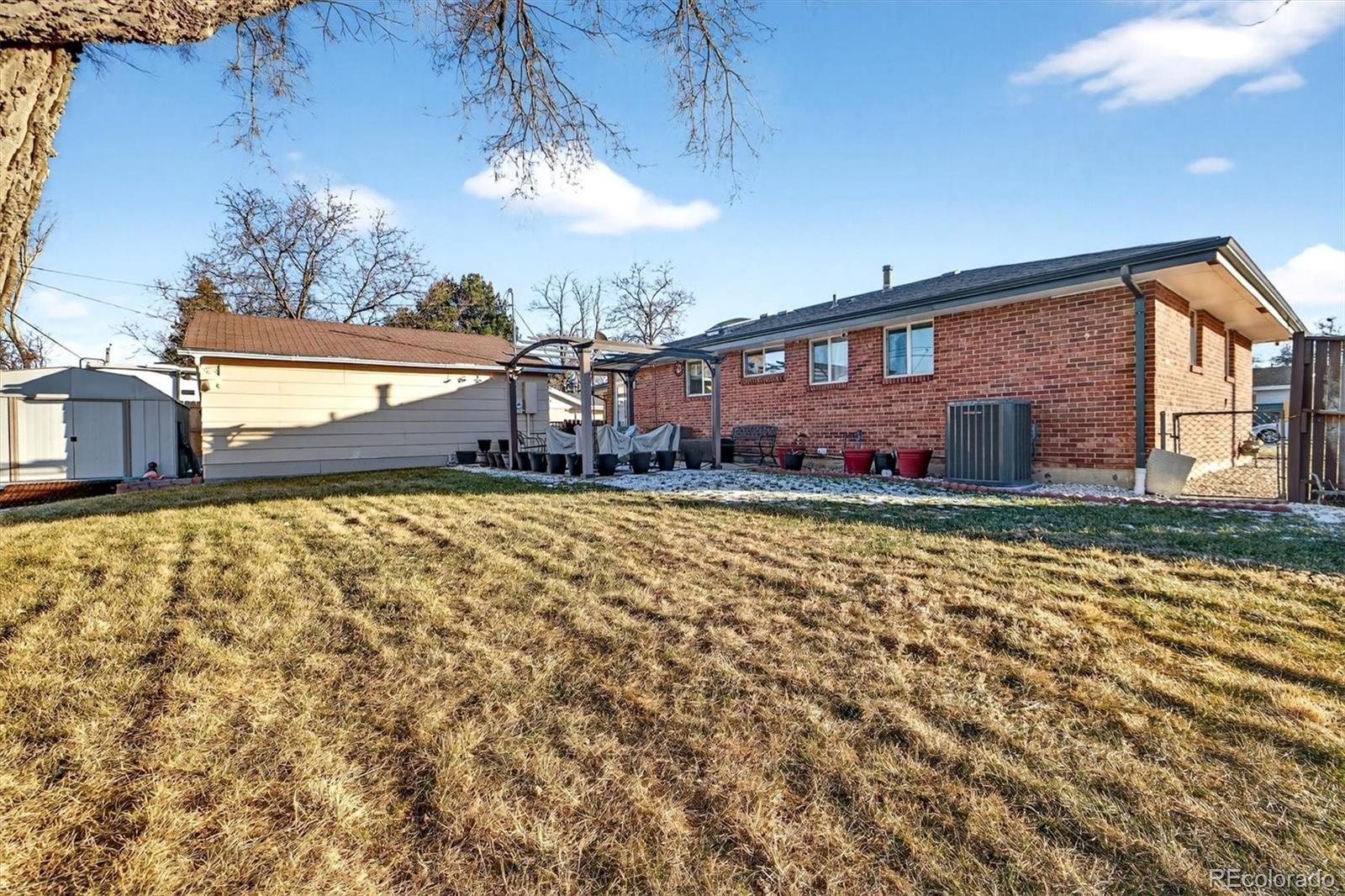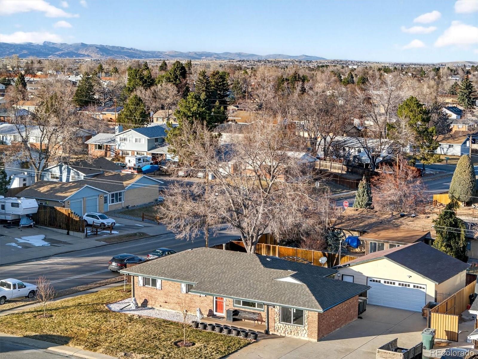 Welcome to 1165 W 101st Ave — A well maintained brick Ranch home nestled on a spacious corner lot in the heart of Northglenn. This inviting home blends classic charm with practical updates and versatile living spaces, making it a great fit for many types of buyers. Step inside to find a light-filled living room with original hardwood floors, built-in shelving, and fresh neutral tones that provide a welcoming first impression. The kitchen is clean and functional, with oak cabinetry, a skylight that floods the space with natural light, and room to easily customize and add value over time. A thoughtful original garage conversion has created an expansive dining area, perfect for entertaining, everyday meals, or even a second living space — with views of the beautifully landscaped front yard. The main level features three comfortable bedrooms, with hardwood floors, and two updated bathrooms, including a private primary bedroom en-suite with a stylish tiled shower and modern vanity. Downstairs, the finished basement offers even more living space with a large carpeted recreation room, a clean and spacious half-bath, and a bonus room that could be used as a future bedroom, home office, or hobby space (note: there is currently no egress window in that room). A generous storage room offers flexible use and includes the washer and dryer. Outside, the backyard feels like a retreat - Complete with a large patio, a shade-gazebo, mature trees, and manicured landscaping. A major highlight to this home is the oversized two-car detached garage — Ideal for car lovers, hobbyists, or anyone needing extra space. Plus parking for 5+ vehicles in the extended driveway. Centrally located in an established neighborhood (No HOA) that is close to schools, shopping, parks, and quick access to I-25. This home truly offers both convenience and comfort... clean, move-in ready, and full of potential. It’s ready to welcome its next chapter - Come see it for yourself!