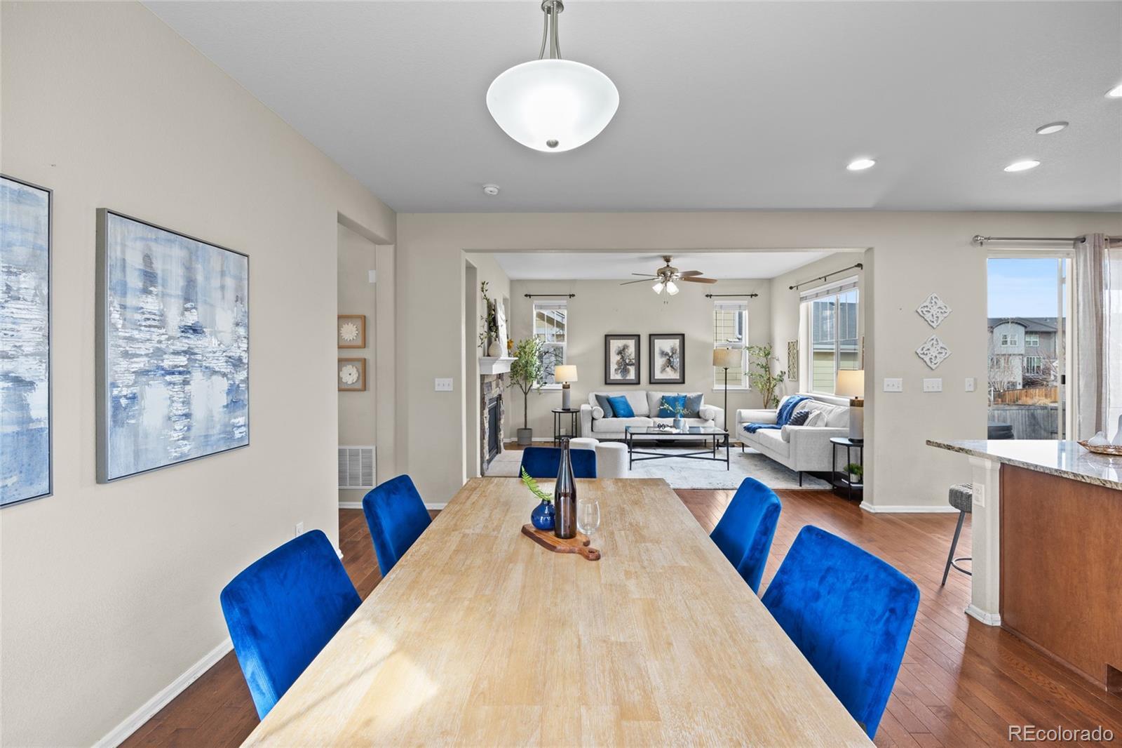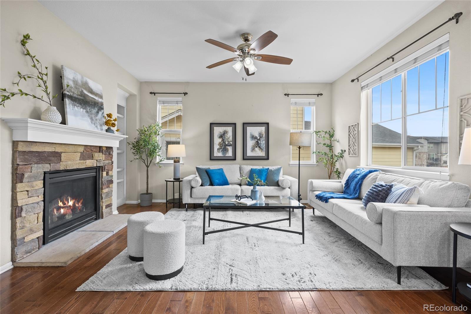 Welcome to Colorado living in the heart of Castle Rock's desirable Meadows community. This beautiful 3-bedroom, 3-bath home offers nearly 3,000 square feet of thoughtfully designed living space in an exceptional interior location—near parks, trails, the neighborhood pool, schools, restaurants, retail, and the local hospital. Inside, the functional floor plan offers versatility with three spacious bedrooms plus a generous loft or optional main-floor study—ideal for working from home or additional flex space. The kitchen is designed for both everyday living and effortless entertaining, featuring 42-inch cabinetry, granite countertops, a large center island, and a gas range. The adjacent family room is warm and inviting, highlighted by a cozy stone fireplace and built-in bookshelves. Upstairs laundry adds everyday efficiency—washer and dryer included. Outdoor living is just as impressive with a covered front porch, rear patio, and a hot tub (included!)—all surrounded by professional landscaping that creates a private and welcoming setting. The spacious 2- car garage is equipped with a Level 2 EV charger, bringing modern convenience home. Enjoy easy access to I-25, Downtown Castle Rock, Denver, and Colorado Springs. This is Colorado living at its best—make it yours today!