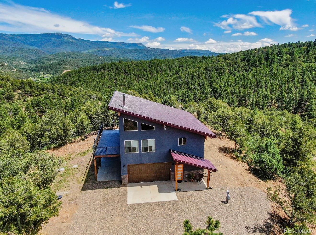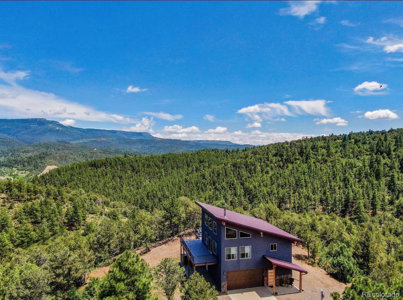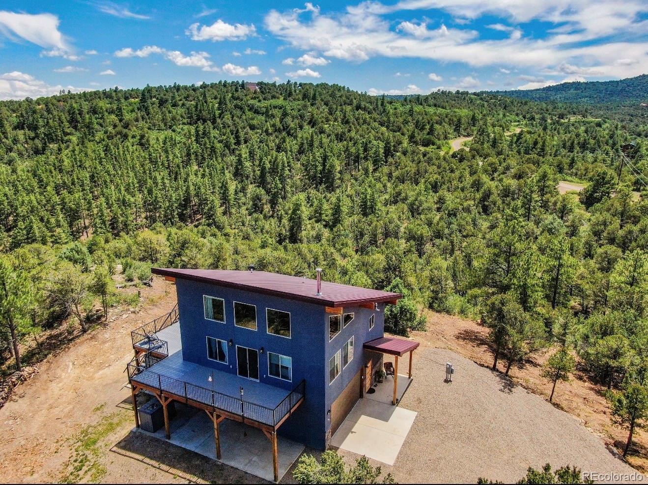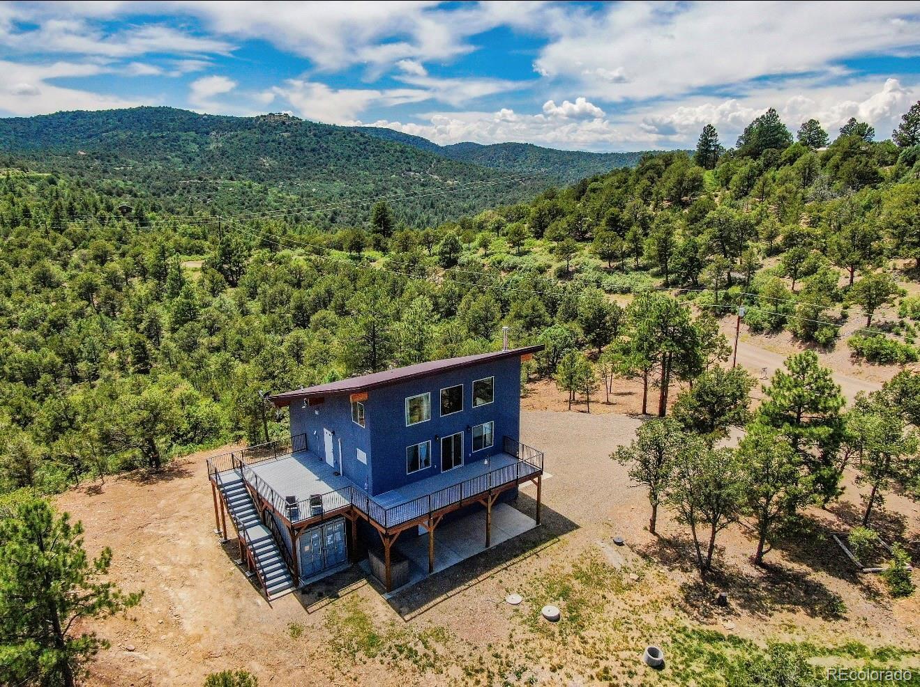 Peaceful Retreat with Sweeping Views in Santa Fe Trail Ranch. Nestled in the serene Santa Fe Trail Ranch near the Colorado–New Mexico border, this charming 2-bedroom, 2-bath residence sits on 35 acres of lush trees and unmatched natural beauty. Just a short drive from the town of Trinidad, this property offers breathtaking views of Fishers Peak. Step inside to an inviting open-concept layout, perfect for everyday living or entertaining. The expansive wrap-around deck seamlessly connects indoor and outdoor spaces, offering the ideal setting for morning coffee, sunset dinners, or stargazing under the big Colorado sky. A cozy loft area provides flexible space—perfect for extra guests, a creative studio, or a home office with a view. With endless possibilities, this home is a rare opportunity to enjoy tranquility, privacy, and nature at your doorstep—while still being minutes from I-25, Trinidad, and a world of outdoor recreation. Don’t miss this chance to make your mountain lifestyle a reality!