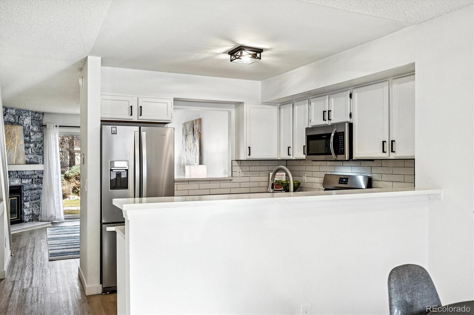 (*professional photos coming 1/21/26*) Step into this expansive and rarely available end unit, where thoughtful updates and generous living spaces create an inviting place to call home. The entry opens to a sun-filled dining area that flows seamlessly into the renovated kitchen, setting the stage for both everyday living and entertaining. Continue into the welcoming family room, where a cozy fireplace and distinctive stone accent wall add warmth and character. Upstairs, the oversized primary suite impresses with vaulted ceilings, dual closets, and a refreshed en-suite full bath; down the hall, the 2nd upgraded full bath leads the way to the 2nd bedroom offering space and sunshine! The finished basement expands the home’s versatility with The finished basement expands the home’s versatility with two separate rooms—ideal for a playroom, home office, gym, or guest space. With an existing egress window already in place, the space also offers the opportunity to easily add bedroom #3! For added convenience, there is a dedicated laundry room too! Extensive upgrades include fresh paint, new lighting, top down/bottom up window coverings, main-level flooring, quartz countertops, kitchen appliances, and HVAC, all in 2024… followed by new faucets, upstairs carpet, soft-close cabinet hinges, basement flooring, an extended hot water heater warranty, and all-new windows and sliding glass door in 2025. Evenings here are peaceful, with views of mature trees and occasional wildlife, creating a tranquil backdrop through every season. Located near the historic Stone House and Bear Creek Trail, the well-maintained Silver Valley community offers snow removal, social events, a rentable clubhouse, and two central pools, with easy highway access and the dining and shopping options of Belmar just minutes away.