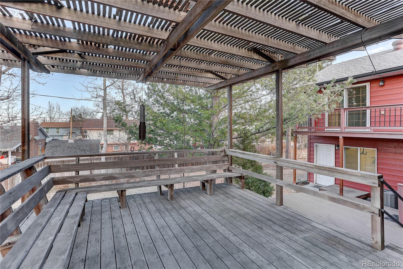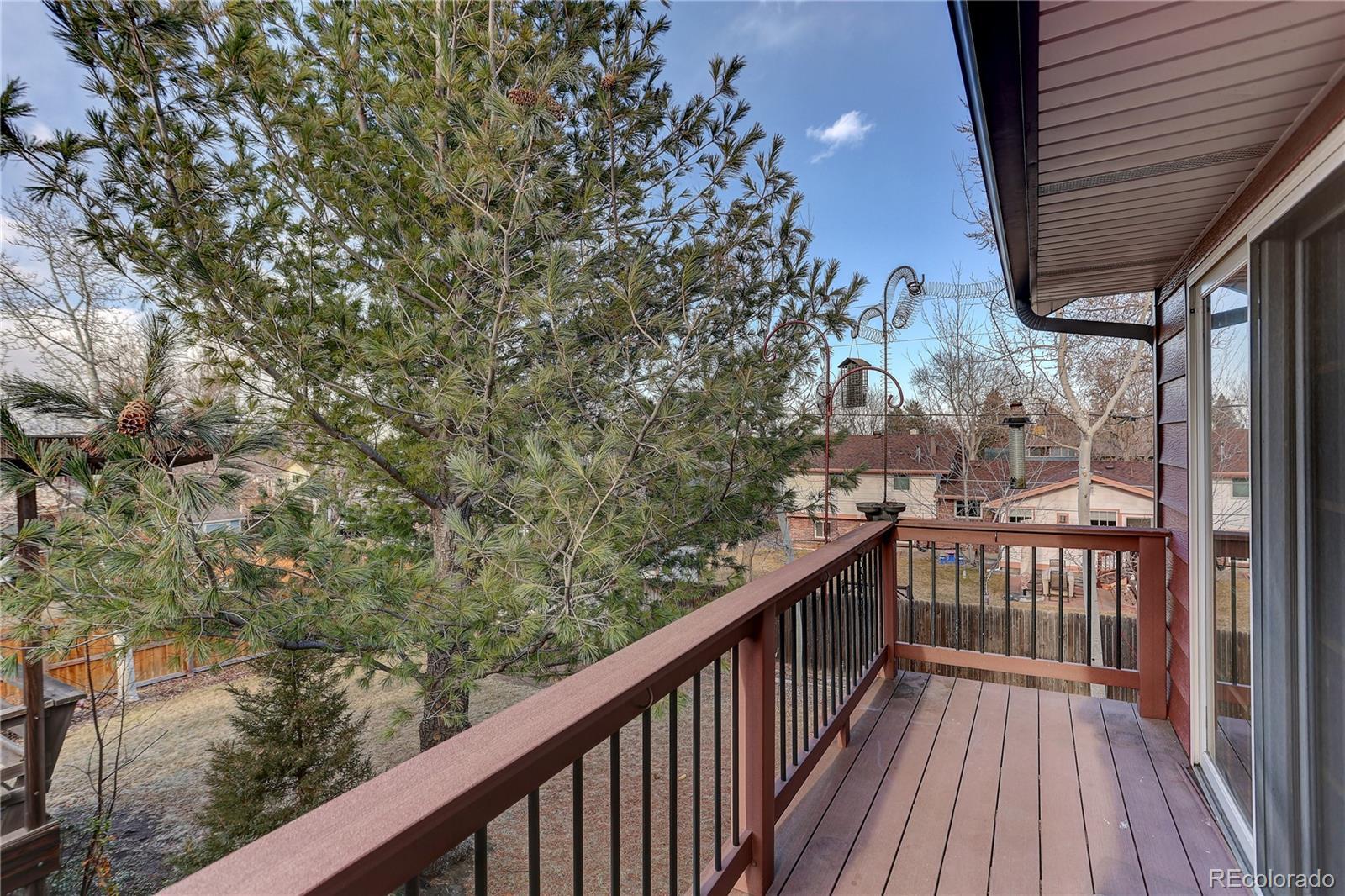 Spacious home with fabulous outdoor space, plus 3 car garage and a work shop! You will enjoy all the natural light and bay windows! Multiple decks that you can access off every level of the home. Options for formal dining space and options to easily convert a room into a 4th bedroom! Fantastic primary suite with huge walk-in closet and en-suite bath. One of the upper level bedrooms has its own private entrance, 1/4 bath, walk-in closet, and private balcony. The lower level features a flex space, mini kitchen with sink and full size refrigerator, office space, additional bedroom, and 3/4 bath. Wonderful private yard with expansive decks that is perfect for relaxing or entertaining. Bonus is the 3 car garage with tons of cabinets/storage space and a separate workshop space. Move in ready with opportunity to add your personal touch. Ideally located with convenient access to I-25 and neighborhood park only a few blocks away.