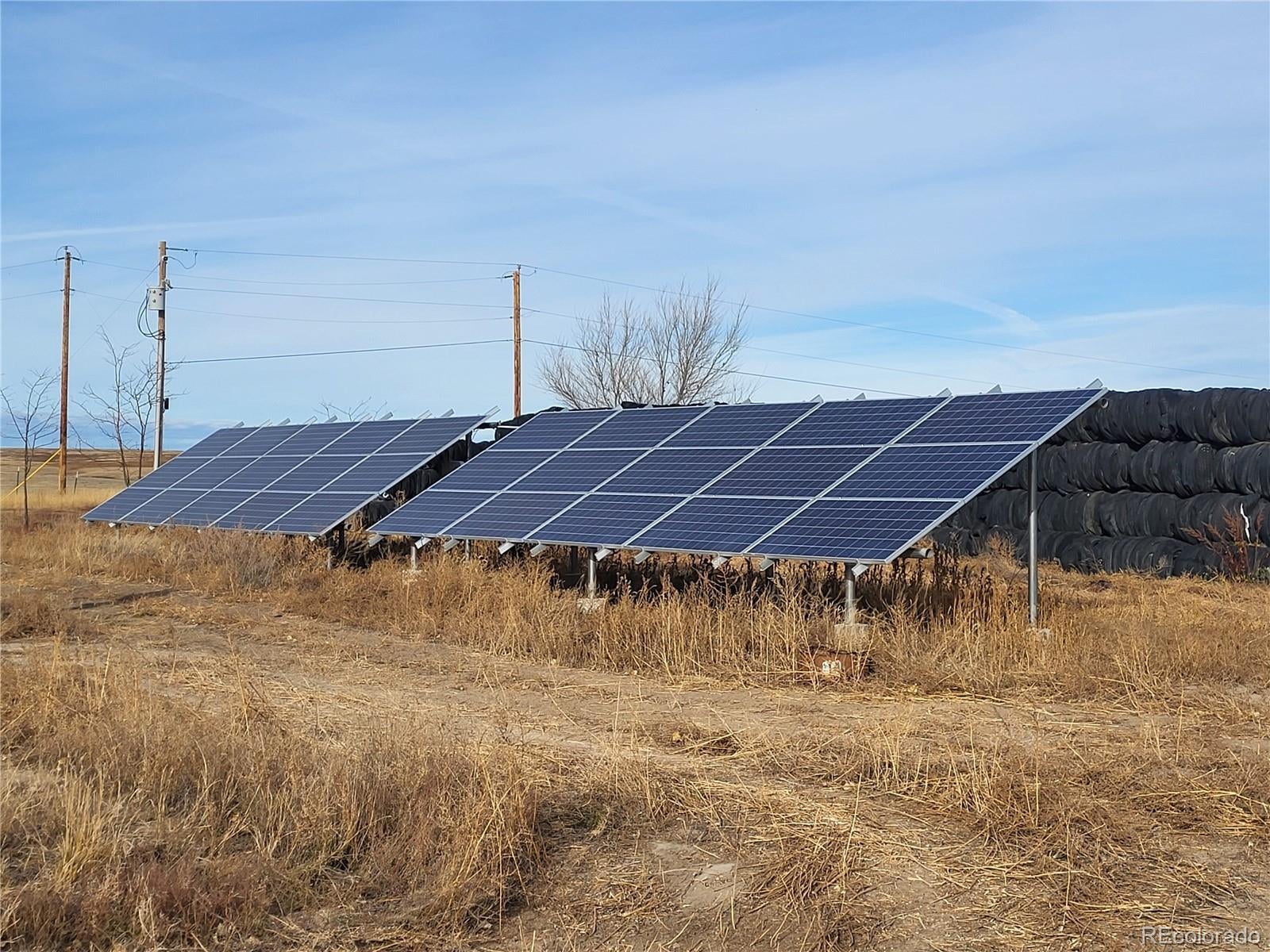 Cozy home on 60 acres in Elbert County Colorado. 1 spacious bedroom with walk in closet and a beautiful bathroom with large tub and separate walk-in shower. The tile work and 9 in. wide luxury vinyl plank flooring are well done & easy to maintain. This comfortable home was designed with efficiency in mind and can be lived in year round with net $0 in utilities. The solar panels are paid for and included with the sale. You'll enjoy the open floorplan, great sunlight, wood burning fireplace, high efficiency electric boiler and cool minisplit air conditioning. Outside you have a 2 car detatched garage and a separate home office or ADU(heated/cooled) with a walk in freezer just large enough to hang your beef or wild game. The property is well fenced with 4 strand barbed wire and t-posts and has great terrain to pasture, cultivate, ride or roam with seasonal ponds and great native grasses. There are multiple outbuildings for all your workshop, tack room, storage or stable needs including a 25x60 Earth Sheltered Solar Greenhouse and a 10x12 chicken coupe with automatic door. The property also includes an approximately 150x150 arena + coral and alley built of approximately 1200 tire bales that are practically indestructible and can be moved with a skid steer into any configuration you need to protect your most prized livestock. The tire bales are also great for shooting backstops, erosion control, retaining walls and windbreaks. Come and enjoy your own private country get away today!
