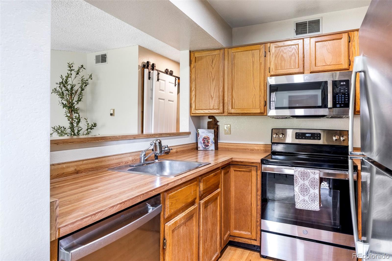 Situated near a tranquil lake and serene Sutherland Shire Park, this Sun Valley West residence offers an ideal balance of natural beauty and everyday convenience. A spacious living room warmed by a cozy wood-burning fireplace flows into a separate dining area with access to a covered patio — the perfect setting to enjoy quiet moments of outdoor relaxation. The kitchen offers a breakfast bar and newer stainless steel appliances, including a glass cooktop and self-cleaning oven. Two sizable bedrooms are complemented by a full bath with a double vanity, with the primary offering private access. A one-car detached garage is ideally located just outside the front door, while a laundry area with a new washing machine adds ease to daily routines. Positioned adjacent to the community path, this residence offers easy access to the main reservoir, Starbucks and King Soopers, plus close proximity to 6th Ave and C-470. Revel in a rare and refined retreat in a quiet yet well-connected location.