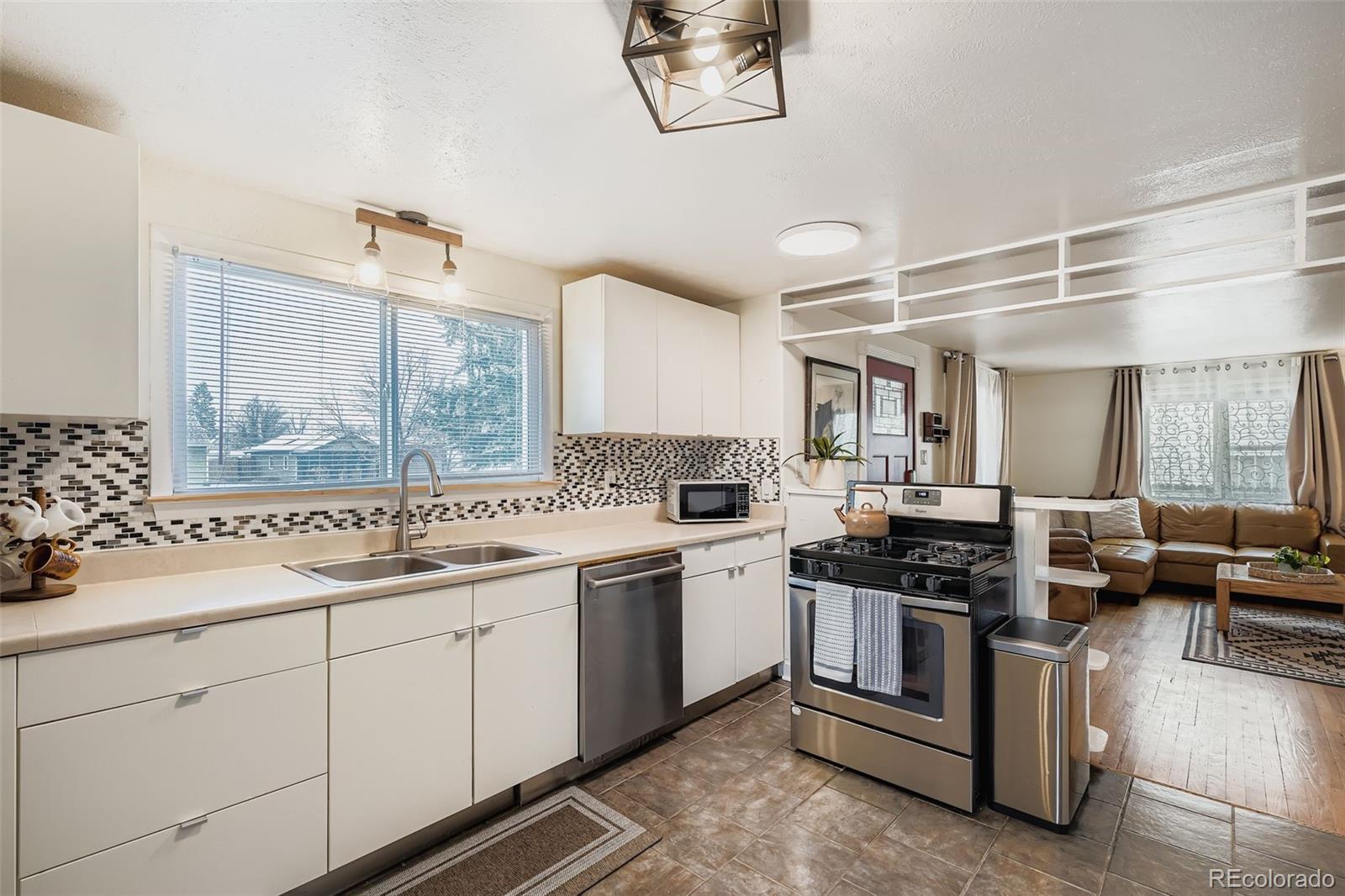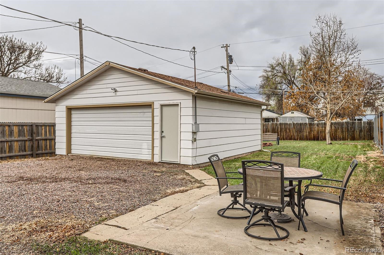 Nice two-bedroom, one bath ranch featuring huge 576 sqft detached garage with room for all your toys, tools & workshop * Big kitchen with tile floor & backsplash & all stainless-steel appliances included, plus new stackable washer & dryer * Living room & bedrooms feature hardwood floors * Updated bathroom with tile floor * Large flat yard would be great for pets, gardens, kids & chickens? plus long driveway that provides ample parking or RV storage * Newer furnace 2021 * Newer water heater 2018 * Room ac units & attic fan * 6-panel doors * New interior paint * Double pane vinyl windows * Easy access to downtown, Boulder, Westminster light rail station, Olde Town Arvada, shopping, theatres, restaurants, parks & trails *