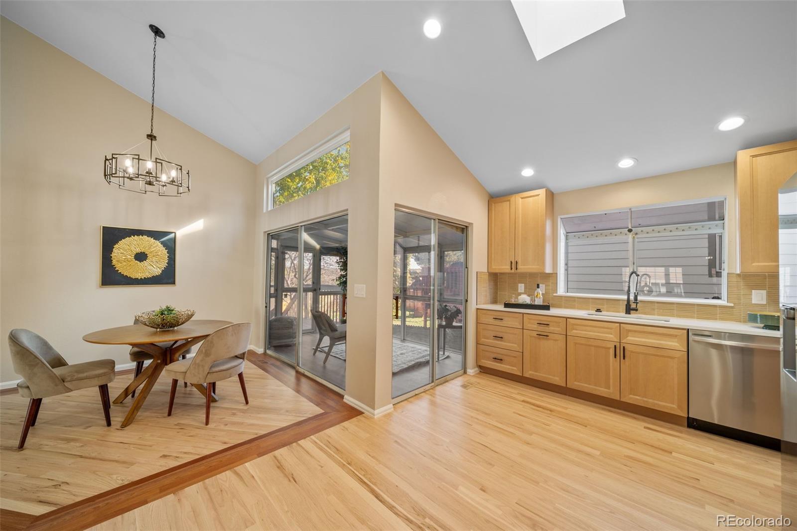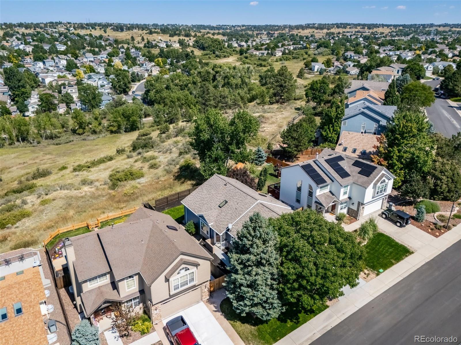 Welcome to this inviting Parker home nestled in the desirable Villages of Parker community. This exceptional home truly offers the perfect blend of comfort, style, and setting. Featuring a highly sought-after ranch floor plan with a walkout basement, the home backs to dedicated open space, delivering breathtaking views and a rare sense of privacy. Thoughtfully fully updated throughout, this right-sized home shines with a stunning brand-new kitchen designed for both everyday living and entertaining. The open floor plan showcases custom cabinetry with soft-close doors and slide-out drawers, expansive high-end quartz countertops, stainless steel appliances, and all-new modern fixtures—every detail carefully curated. Both bathrooms have been beautifully renovated, including a spa-like walk-in shower in the primary suite, along with new vanities, countertops, and fixtures. There is no carpet anywhere in the home—instead, enjoy 100% solid hardwood flooring throughout, professionally refinished and brand new where added, creating a seamless and timeless look. Major improvements offer peace of mind, including newer windows, roof, updated HVAC system, a new garage door, new driveway, and all-new front and back landscaping. Step outside to the expansive deck, accessible from both the kitchen/sunroom and the primary bedroom—an ideal space to relax, entertain, and take in the serene open-space views. This home is truly move-in ready and an absolute must-see, offering a rare combination of upgrades, location, and lifestyle