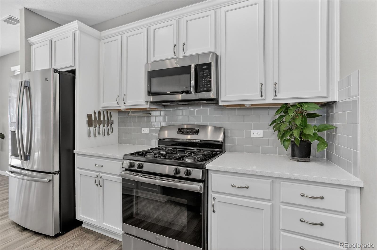 Tucked into a prime location within Copperleaf, this move-in ready home delivers space, style, and smart design throughout. Featuring four bedrooms and three bathrooms, the layout is practical and flexible, with a main-floor bedroom and full bath perfect for guests, extended family, or a private office. The main level showcases durable luxury vinyl plank flooring and a seamless open layout connecting the kitchen, dining, and living areas for effortless daily living and entertaining. The kitchen shines with quartz countertops, a spacious island, crown-accented cabinetry, and a classic tile backsplash. Upstairs, the generous primary suite offers a private bath with Corian countertops and dual sinks. The secondary hall bath also has two sinks, making morning routines smooth and stress-free. Additional highlights include ceiling fans throughout, a large laundry room, a recently cleaned and certified furnace, and a newer roof. A crawl space adds valuable extra storage. Step outside to a thoughtfully designed backyard with low-maintenance artificial turf, a covered patio, an extended shaded deck, and a separate seating area—perfect for hosting or relaxing. Positioned across the street from open space and just steps from the neighborhood park, the setting enhances both privacy and lifestyle. Located in vibrant Copperleaf, you’ll enjoy quick access to E-470, Southlands Shopping Center, DIA, and nearby retail and fast-food options. A brand-new King Soopers is being built right at the community edge, adding even more convenience. Residents enjoy 9 community parks, trails, the Arboretum Clubhouse, a basketball court, outdoor pools, and year-round events like food trucks, movie nights, and holiday celebrations—all within the Cherry Creek School District. This home combines comfort, convenience, and community in one exceptional opportunity.