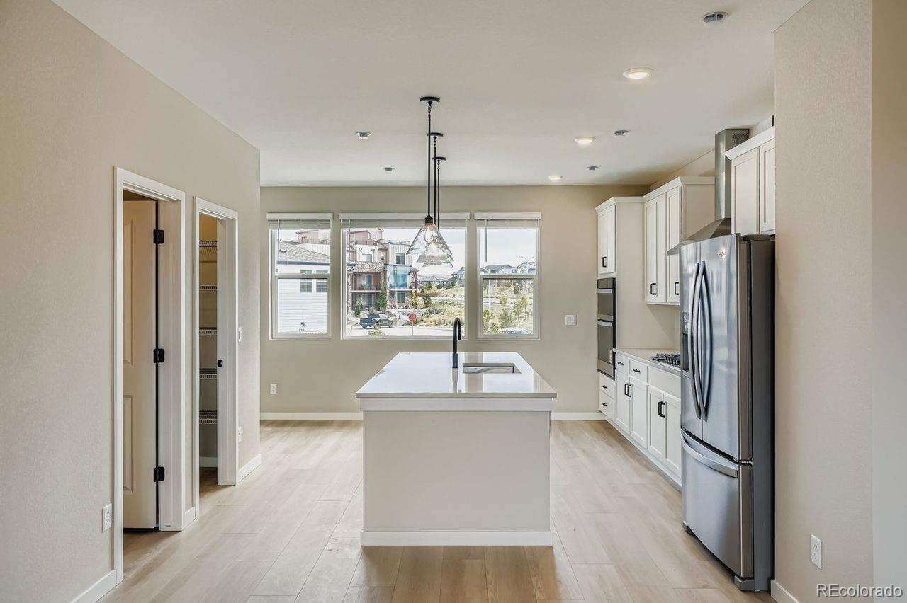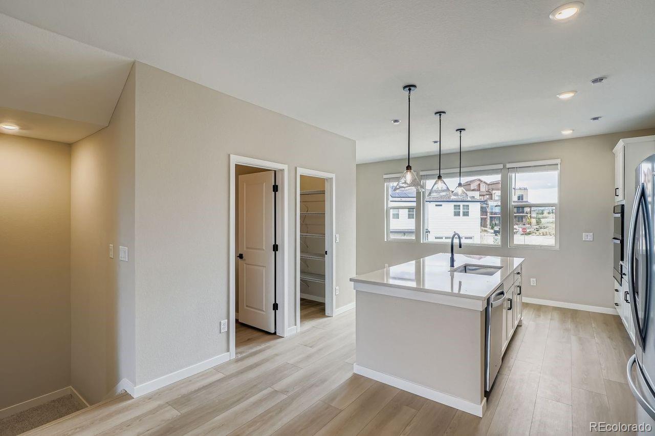 Move-In Ready Dream Finders Townhome with Rooftop Deck & Breathtaking Mountain Views! Welcome to 8406 Mount Ouray St, Littleton, an exceptionally upgraded townhome in the highly desirable Sterling Ranch community. This modern 3-bed/3.5-bath home showcases premium design selections, including quartz countertops, upgraded tile and carpet, extended 42" cabinetry, large island, a gas cooktop with designer hood, custom kitchen backsplash, contemporary pendant lighting, and electric fireplace. Soaring 9’ ceilings on both the main and upper levels creating a bright and airy living space. The luxurious owner's suite features an oversized walk-in shower with a bench and a spacious walk-in closet with access to the upper level laundry room. Separate bedroom and full bath on the entry level provide privacy and flexibility for guests or a home office. Thoughtfully designed for indoor–outdoor living, this home features multiple patios, but the highlight is the expansive rooftop deck offering panoramic mountain views—the perfect space for relaxing, entertaining, or watching Colorado sunsets. Located moments from Chatfield Reservoir, Roxborough State Park, hiking and biking trails, shopping, and Denver Botanic Gardens, this home offers unmatched access to Colorado’s best outdoor recreation. Every Sterling Ranch homeowner receives a free Colorado State Parks pass, making it easy to explore year-round. Enjoy a resort-style lifestyle with community amenities including a pool, clubhouse, fitness center, pickleball courts, a brewery, coffee bar, and wine bar. The HOA maintains exterior, landscaping, and snow removal, giving you a truly low-maintenance, lock-and-leave home. Dream Finders Homes is offering excellent incentives and flexible financing options designed to lower your monthly payments. This stunning home is move-in ready now, just in time to start the New Year in your beautiful new space. Schedule your showing today and experience unparalleled Colorado living!