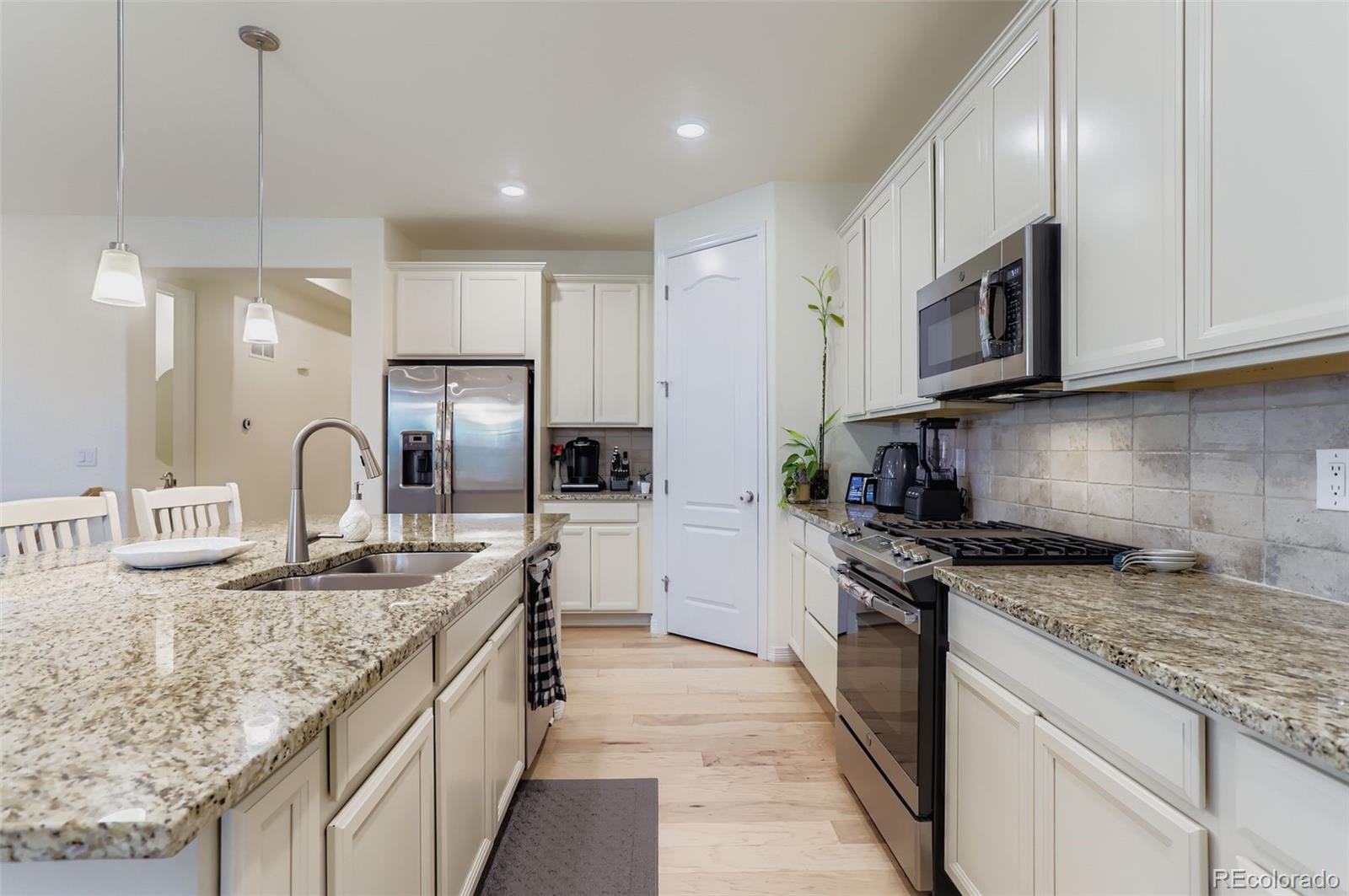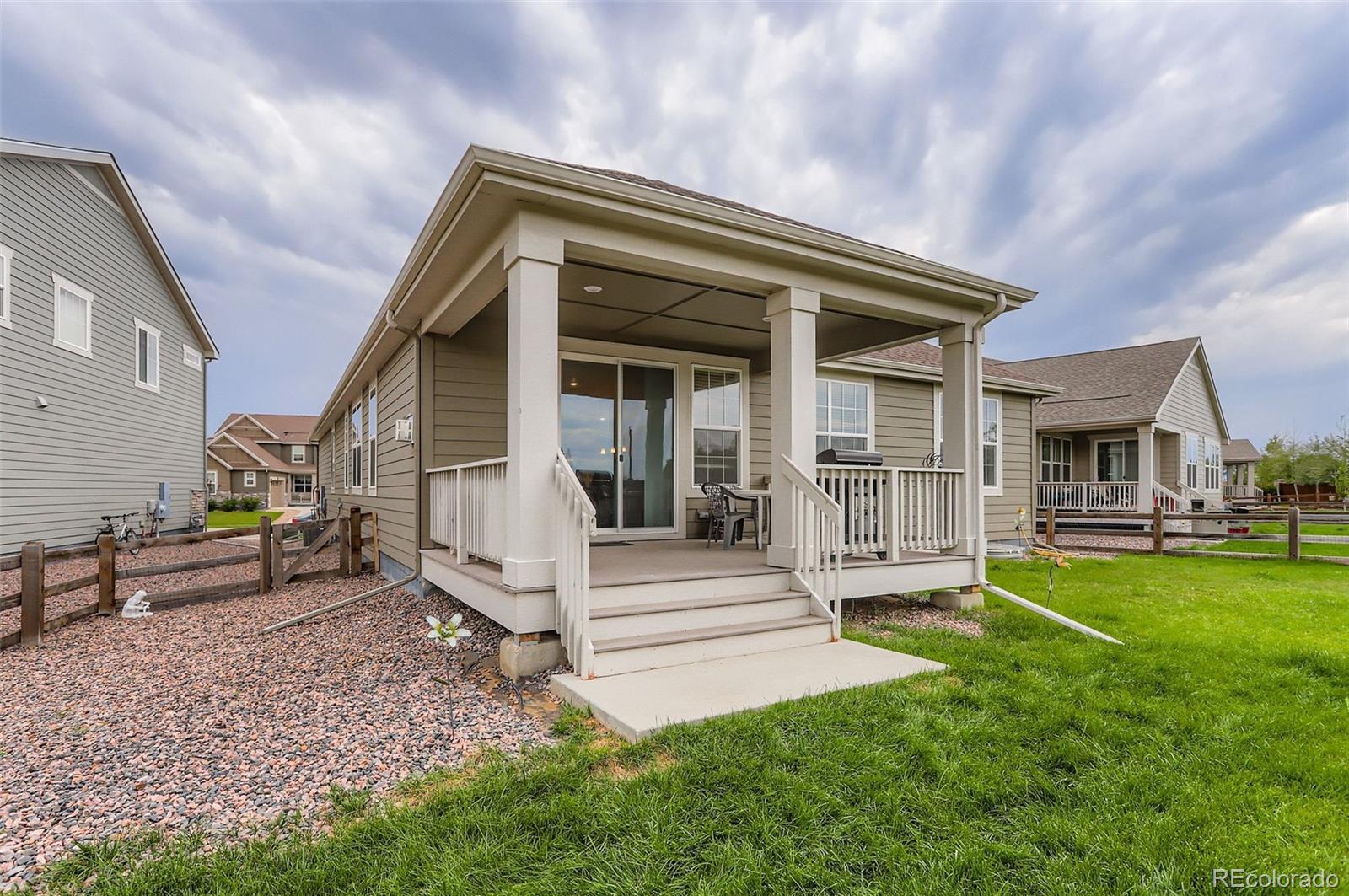 Welcome to elegant, one level living in Provenance. This 4 bed, 3 bath, and a full basement is perfect for the entire family. This beautifully designed ranch style home offers a seamless open floor plan, modern finishes, and abundant natural light throughout. With 3 spacious bedrooms, an office, and 3 bathrooms, there's room for everyone to live comfortably and entertain in style. The heart of the home is the chef’s kitchen, featuring granite countertops, stainless steel appliances, a large center island, and a walk in pantry. The kitchen flows into a bright dining area and a generous great room with a cozy gas fireplace that is perfect for gatherings or relaxing evenings. The primary suite is a serene retreat with a luxurious 5 piece bath and oversized walk-in closet. Two additional bedrooms and a full bath sit on the opposite side of the home for privacy. There is also a spacious office, which could be used as a 4th bedroom. Step outside to a covered back patio overlooking the landscaped backyard that is ideal for enjoying sunny Colorado days or cool summer nights. Carpet has already been installed in the basement which provides 2290 square feet of additional living space. Additional highlights include a 3 car attached tandem garage, central A/C, main-floor laundry, and smart home features. Built in 2019, this home combines the benefits of newer construction with the comfort of established living. Located just minutes from shopping, dining, parks, golf courses, and trails, plus easy access to Boulder and I-25, this home offers the perfect balance of lifestyle and location. Schedule your showing today!