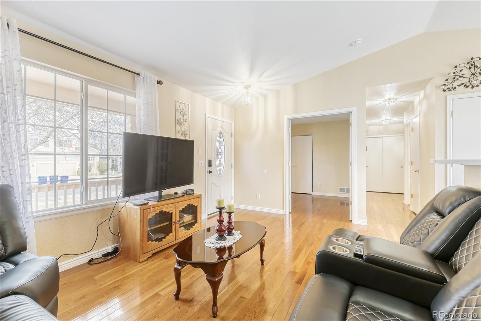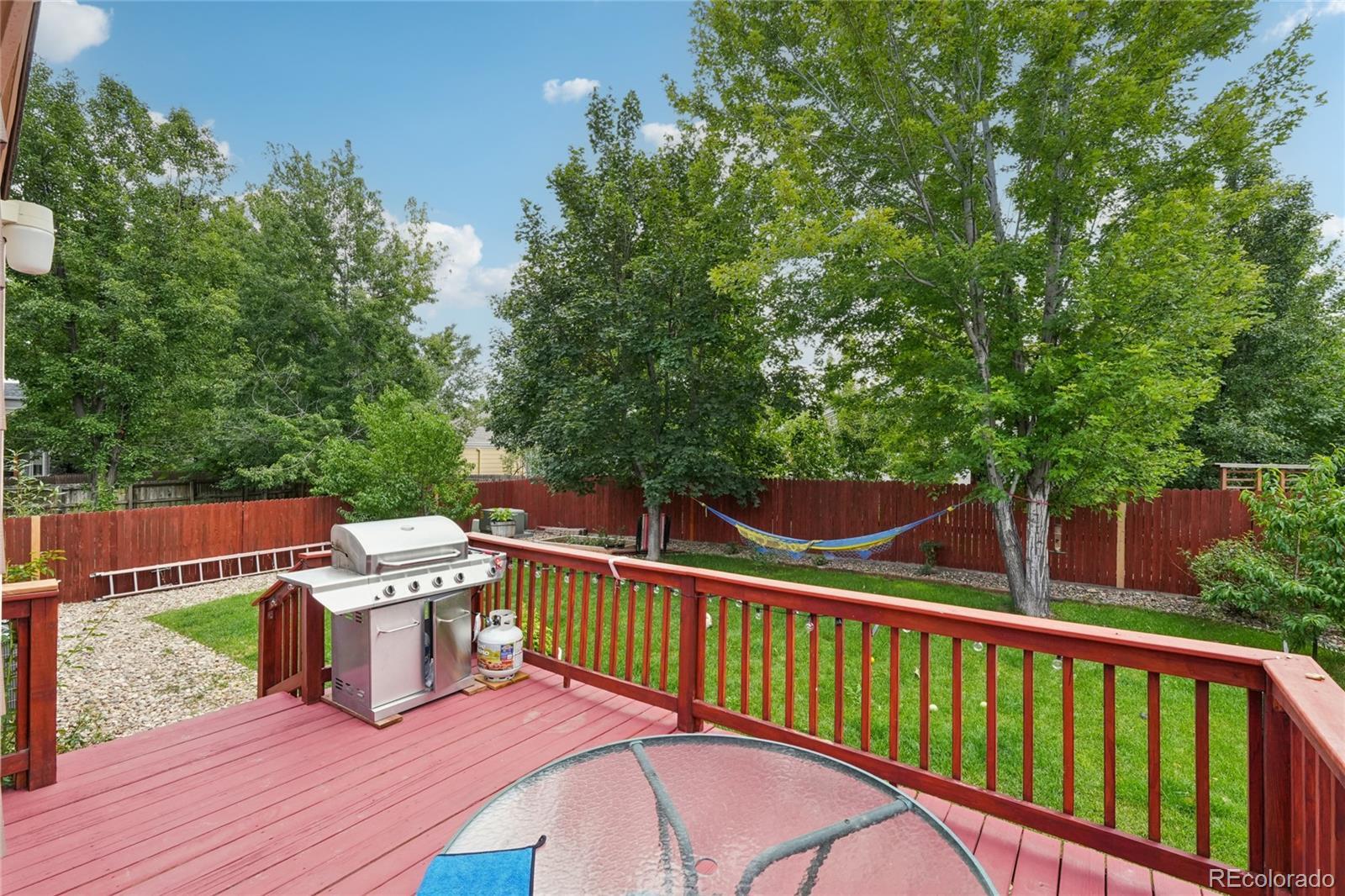Discover the perfect blend of tranquility and modern updates in this meticulously maintained, original-owner home in Erie’s peaceful Canyon Creek neighborhood. From the moment you arrive, the beautiful front landscaping, mature shade tree, and inviting covered front porch create an exceptional first impression. Inside, the open main level is defined by soaring vaulted ceilings that enhance the bright and spacious atmosphere. The heart of the home is the newly updated kitchen, which features stunning quartz countertops and a brand-new stove and dishwasher, flowing seamlessly into the dining area and living room for an effortless living experience. The main floor layout is thoughtfully designed for comfort, featuring a primary bedroom with vaulted ceilings and en-suite access to the full bathroom. Two additional bedrooms are located on this level, including one with charming French door entry that could easily serve as a home office. Downstairs, the finished basement significantly expands the living space with a large flex room, a fourth bedroom with egress windows, a 3/4 bath, and a generous laundry room. Practicality is covered as well, with direct access to a fully finished two-car garage and major updates including a two-year-old roof and a five-year-old HVAC system and water heater. Step through the sliding glass doors to find a true outdoor retreat in the fenced backyard, complete with a sunny deck, lush lawn, and established garden beds. The location is as impressive as the home itself, situated just steps from Canyon Creek Pirate Park and the scenic walking trails of Thomas Reservoir. With four spacious bedrooms and versatile living zones inside and out, this home is move-in ready and perfectly positioned for its next chapter.
