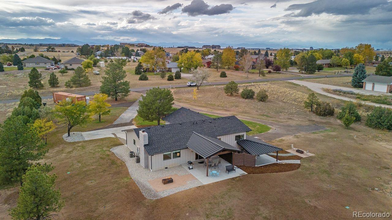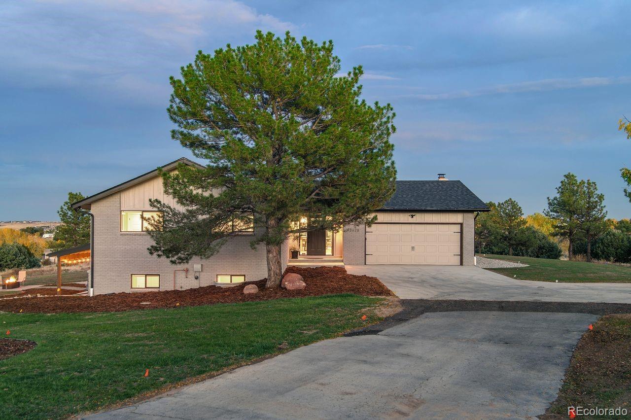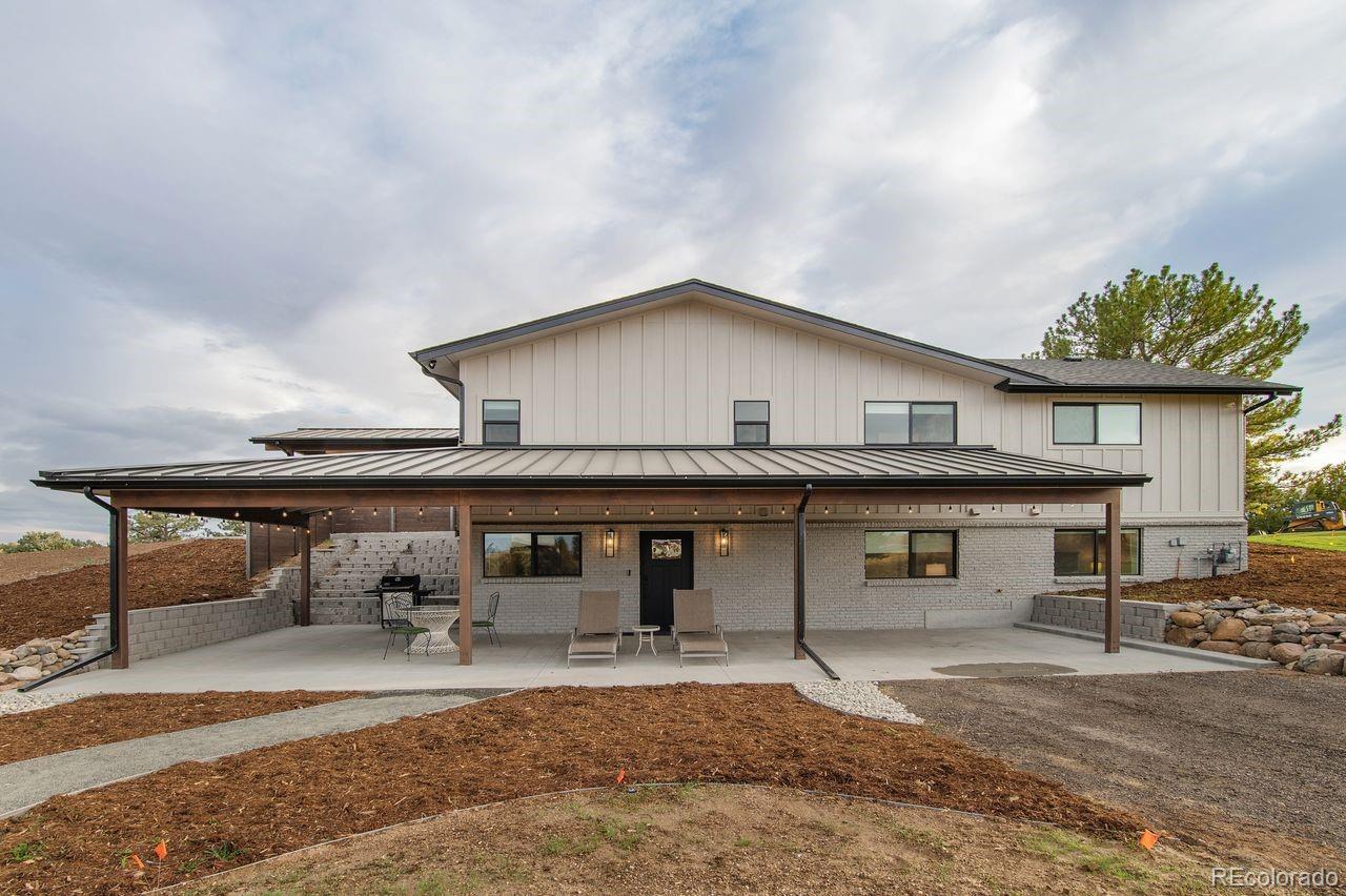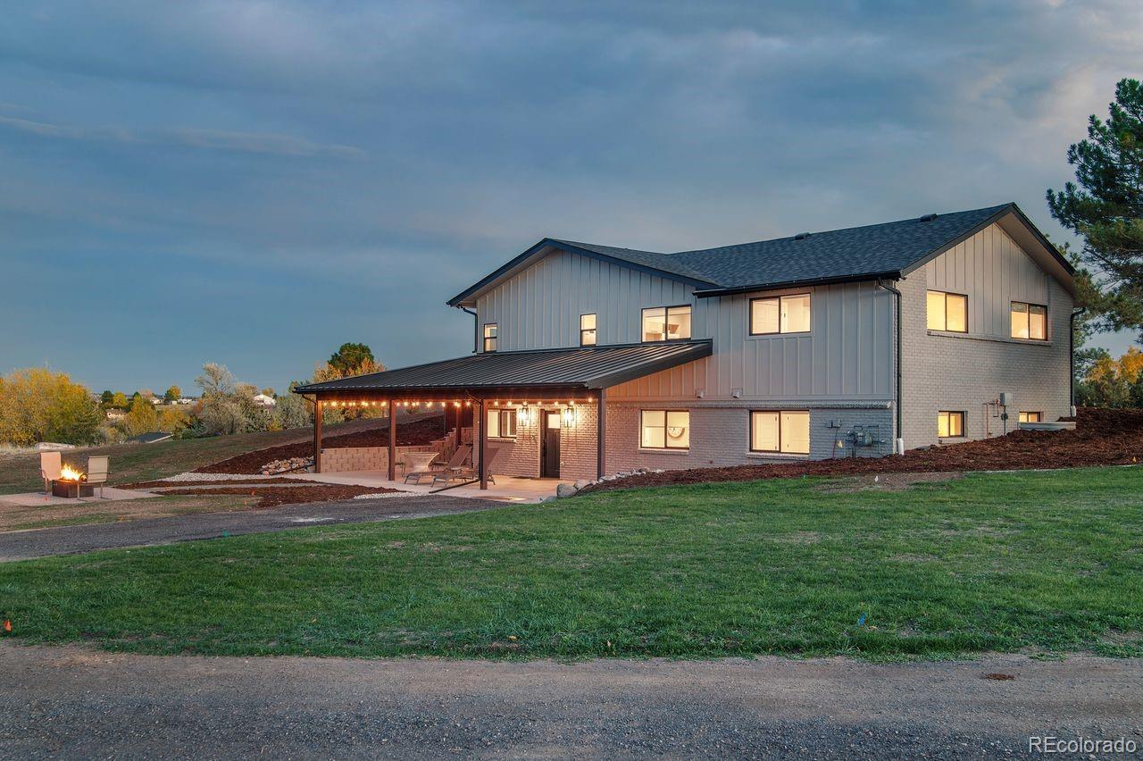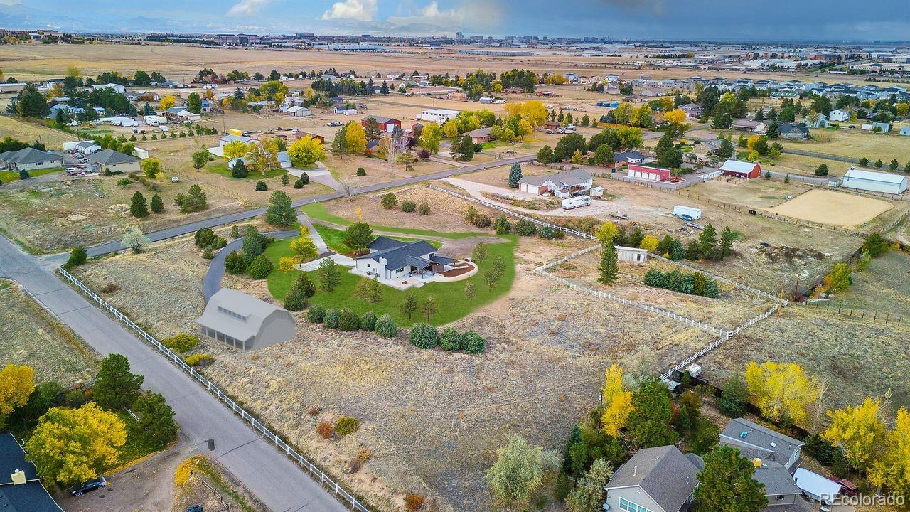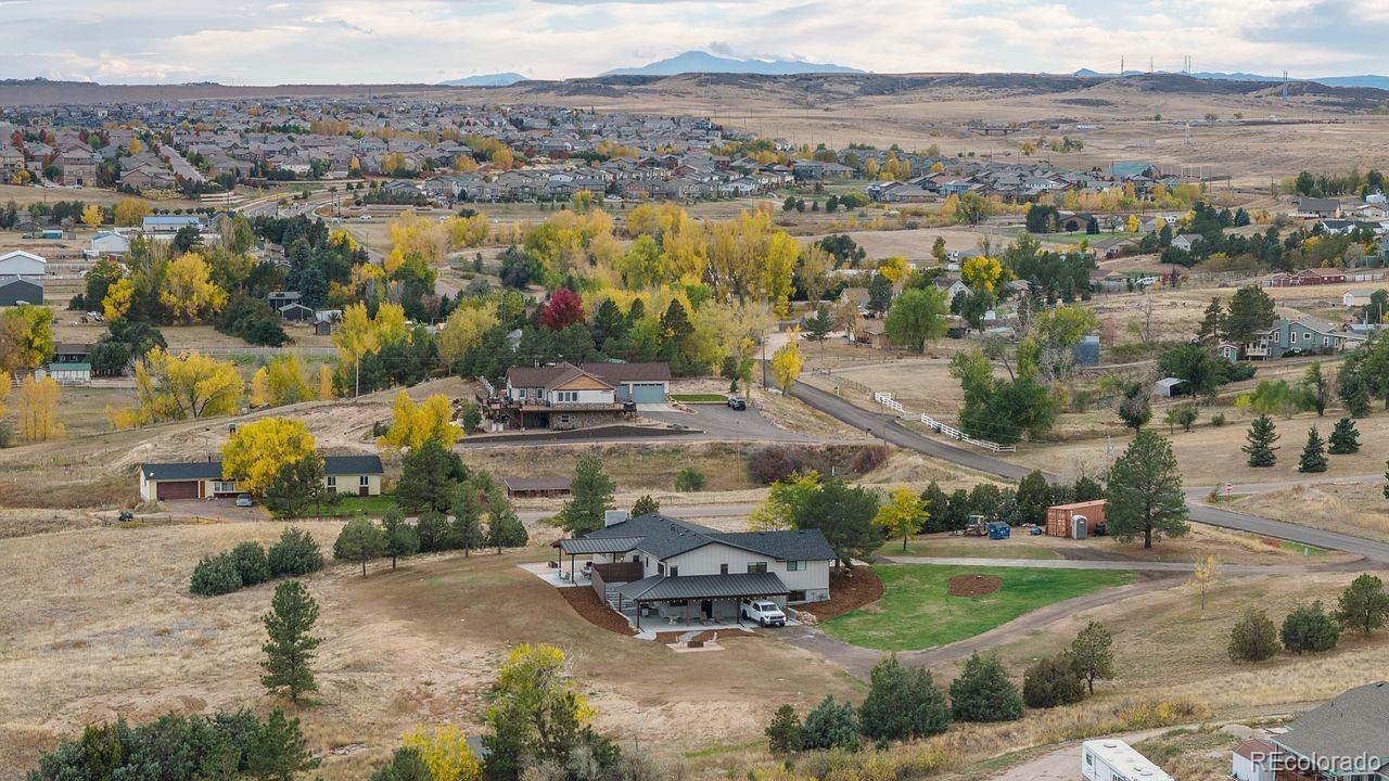 Welcome to this extraordinary, fully renovated multi-generational-living horse property, thoughtfully redesigned from the studs up by a Colorado custom homebuilder. With 6 bedrooms and 4 bathrooms, this home offers an expansive layout perfect for groups of all sizes or those seeking extra space with guest quarters. The open-concept floor plan, featuring stunning hardwood floors and soaring vaulted ceilings, creates a bright, welcoming atmosphere ideal for both everyday living and entertaining. The gourmet kitchen is a showstopper, equipped with modern appliances, ample counter space, and a functional layout that will inspire your inner chef. Each bedroom, including the luxurious primary suite, is designed for comfort and privacy, with ample storage and serene, relaxing spaces. Step outside and enjoy breathtaking mountain views from the covered patios, or unwind by one of the cozy firepits. This property offers unmatched potential, with room to build a custom barn or create your own equestrian estate. The existing infrastructure is ready for your personal plans for growth—whether that’s adding an accessory dwelling unit (ADU), tack shelter, or barn. Designed with multi-generational living in mind, this home offers multiple kitchens and private access points, giving everyone in the family their own space while still fostering togetherness. It’s also an ideal setup for a lucrative Airbnb investment, with separate living areas and plenty of room for privacy. Whether you’re looking for a spacious family home, a custom horse property, or a solid investment opportunity, this rare gem offers it all. Don’t miss your chance to make it your own! **NOTE: The gray/white barn and fence shown are illustrations of potential structures that can be built based on the current utility connections and property boundaries. They do not represent the actual existing structures but are intended to highlight the locations of the existing utility connections.