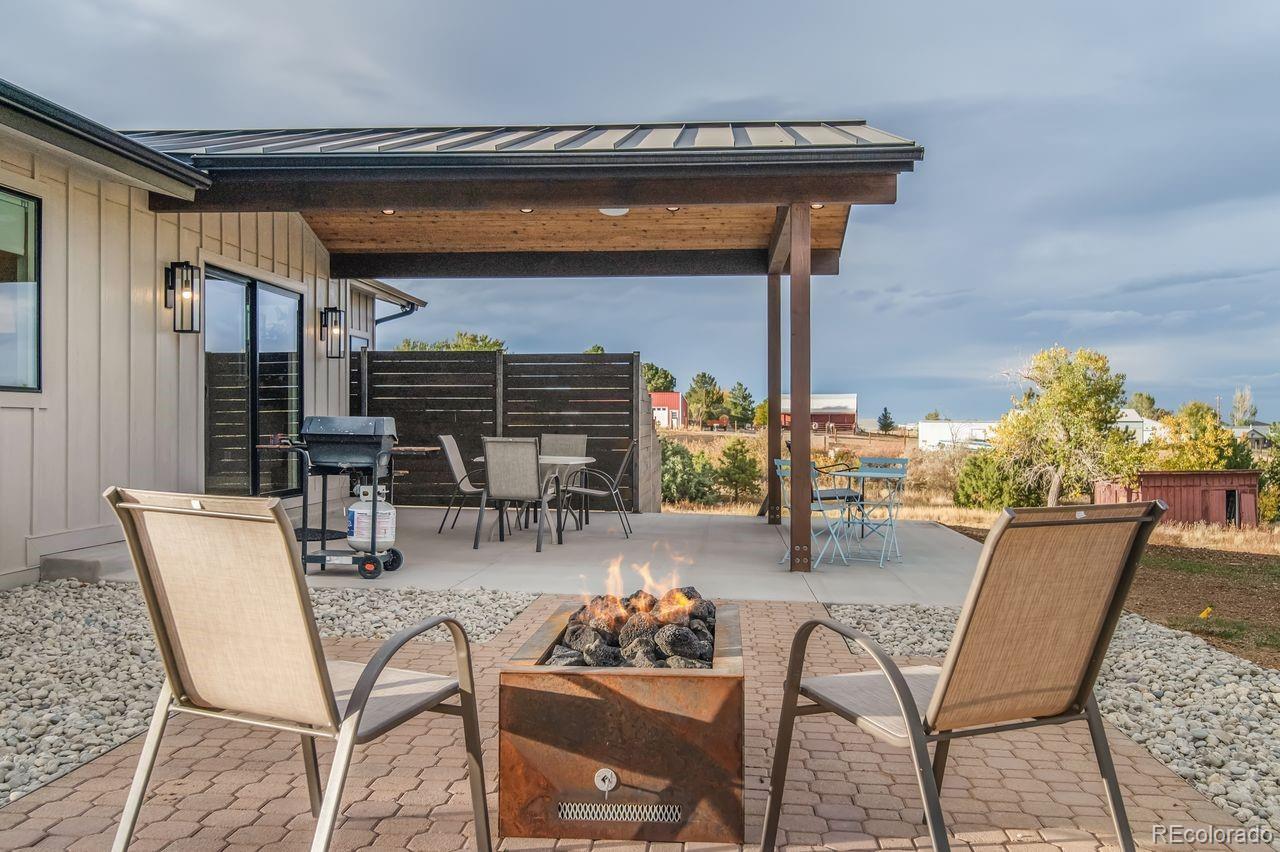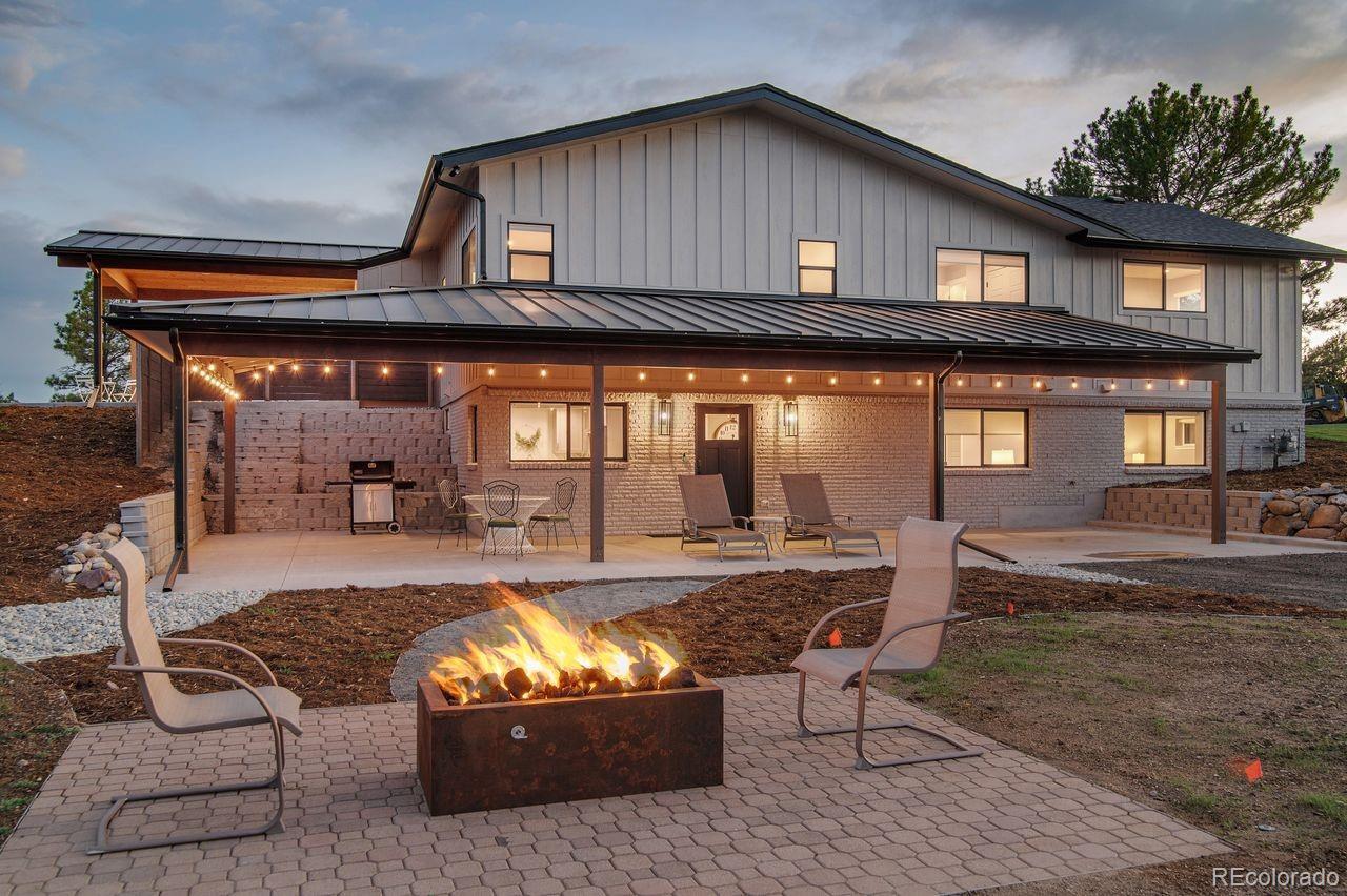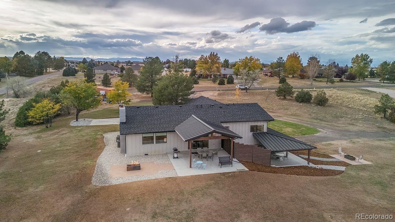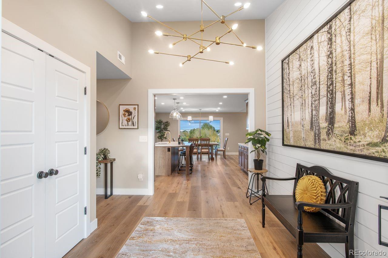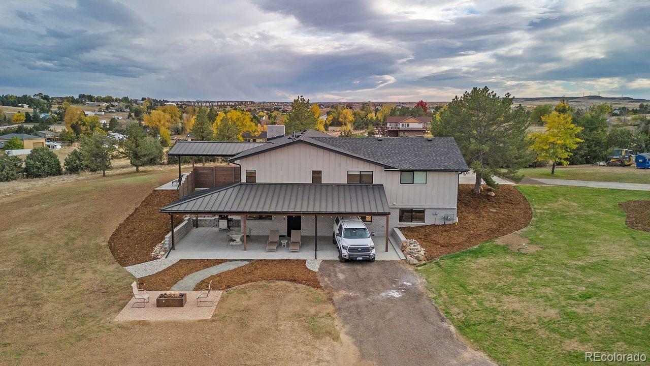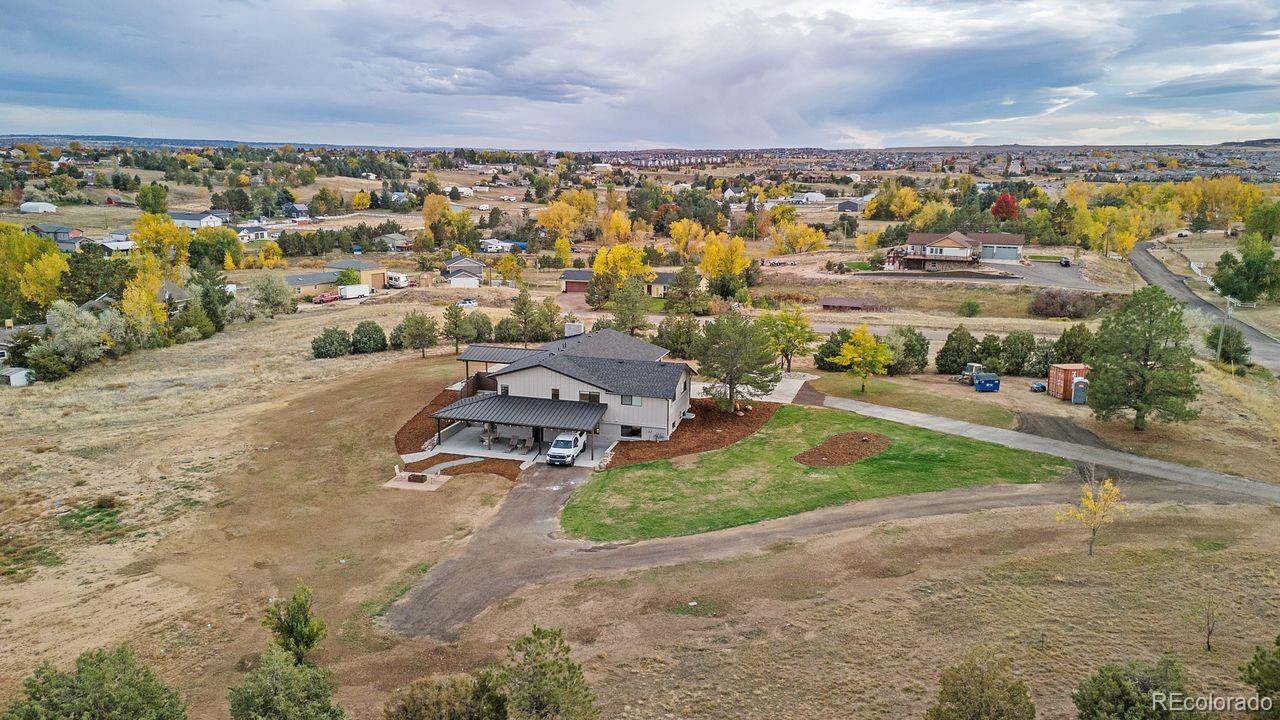 Welcome to this extraordinary, fully renovated multi-generational-living horse property, thoughtfully redesigned from the studs up by a Colorado custom homebuilder. With 6 bedrooms and 4 bathrooms, this home offers an expansive layout perfect for groups of all sizes or those seeking extra space with guest quarters. The open-concept floor plan, featuring stunning hardwood floors and soaring vaulted ceilings, creates a bright, welcoming atmosphere ideal for both everyday living and entertaining. The gourmet kitchen is a showstopper, equipped with modern appliances, ample counter space, and a functional layout that will inspire your inner chef. Each bedroom, including the luxurious primary suite, is designed for comfort and privacy, with ample storage and serene, relaxing spaces. Step outside and enjoy breathtaking mountain views from the covered patios, or unwind by one of the cozy firepits. This property offers unmatched potential, with room to build a custom barn or create your own equestrian estate. The existing infrastructure is ready for your personal plans for growth—whether that’s adding an accessory dwelling unit (ADU), tack shelter, or barn. Designed with multi-generational living in mind, this home offers multiple kitchens and private access points, giving everyone in the family their own space while still fostering togetherness. It’s also an ideal setup for a lucrative Airbnb investment, with separate living areas and plenty of room for privacy. Whether you’re looking for a spacious family home, a custom horse property, or a solid investment opportunity, this rare gem offers it all. Don’t miss your chance to make it your own! **NOTE: The gray/white barn and fence shown are illustrations of potential structures that can be built based on the current utility connections and property boundaries. They do not represent the actual existing structures but are intended to highlight the locations of the existing utility connections.