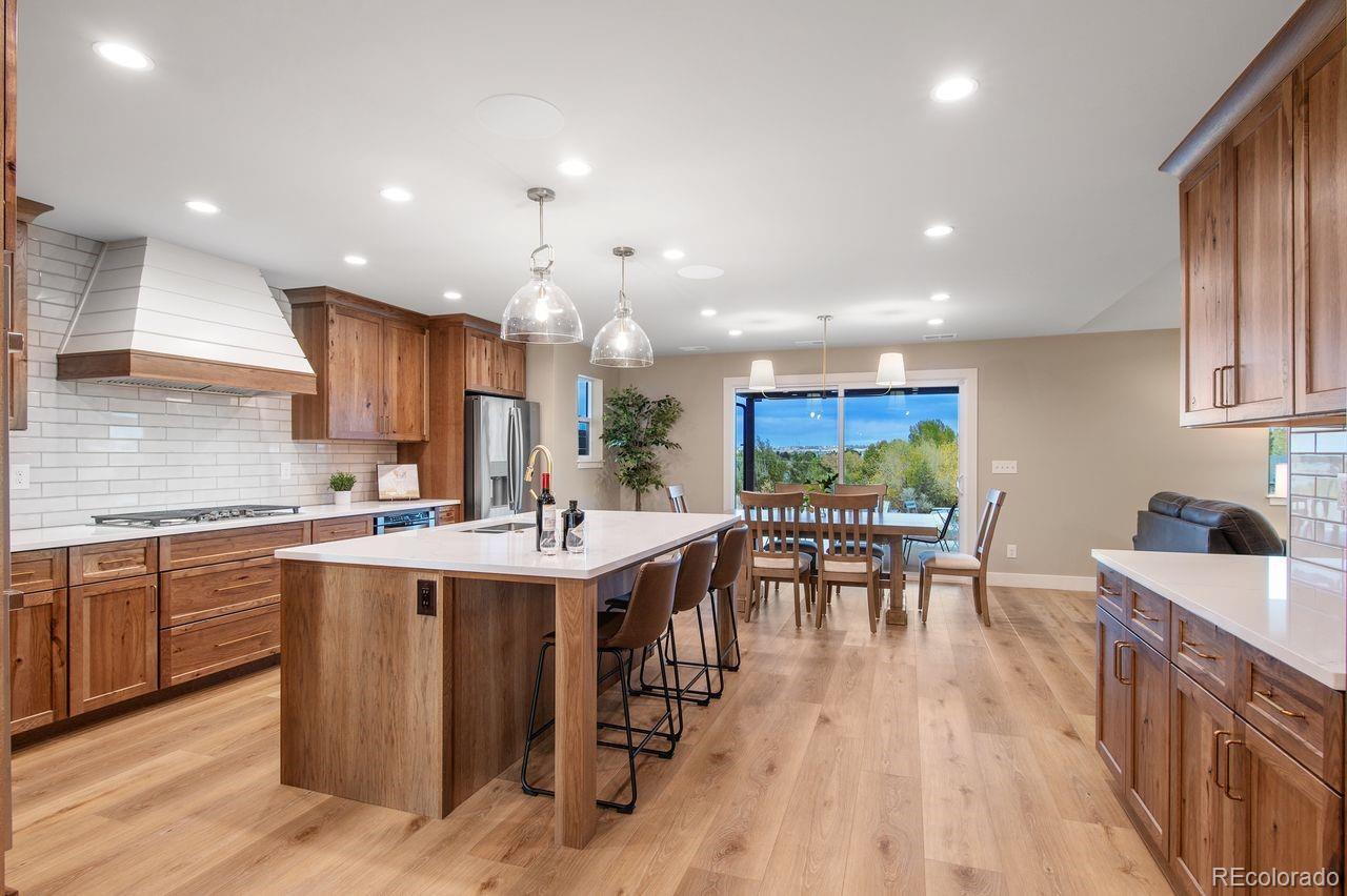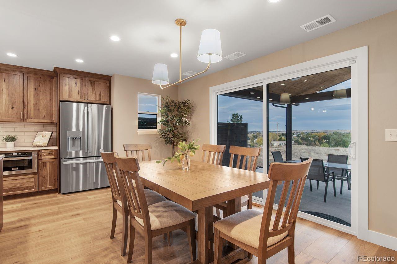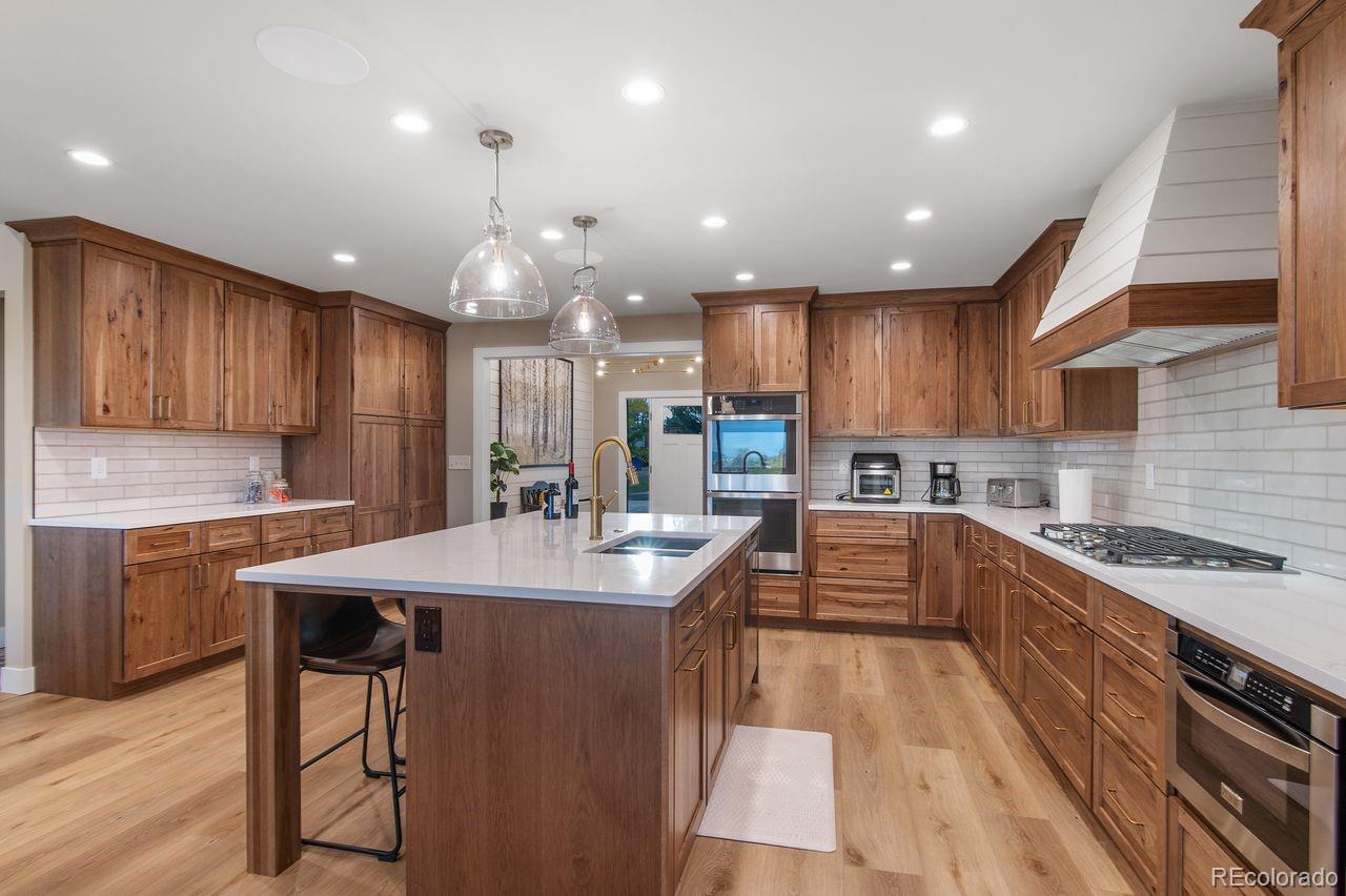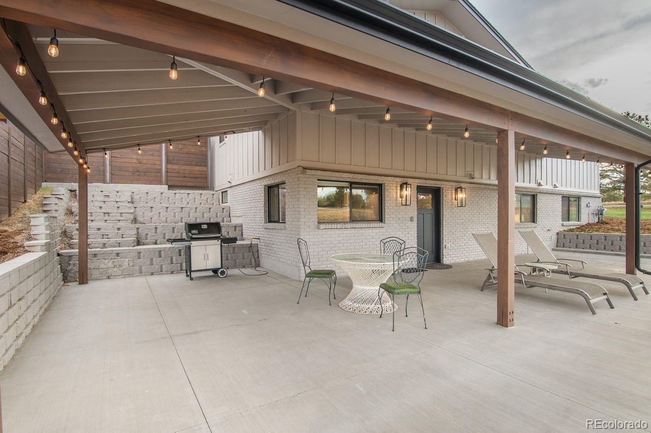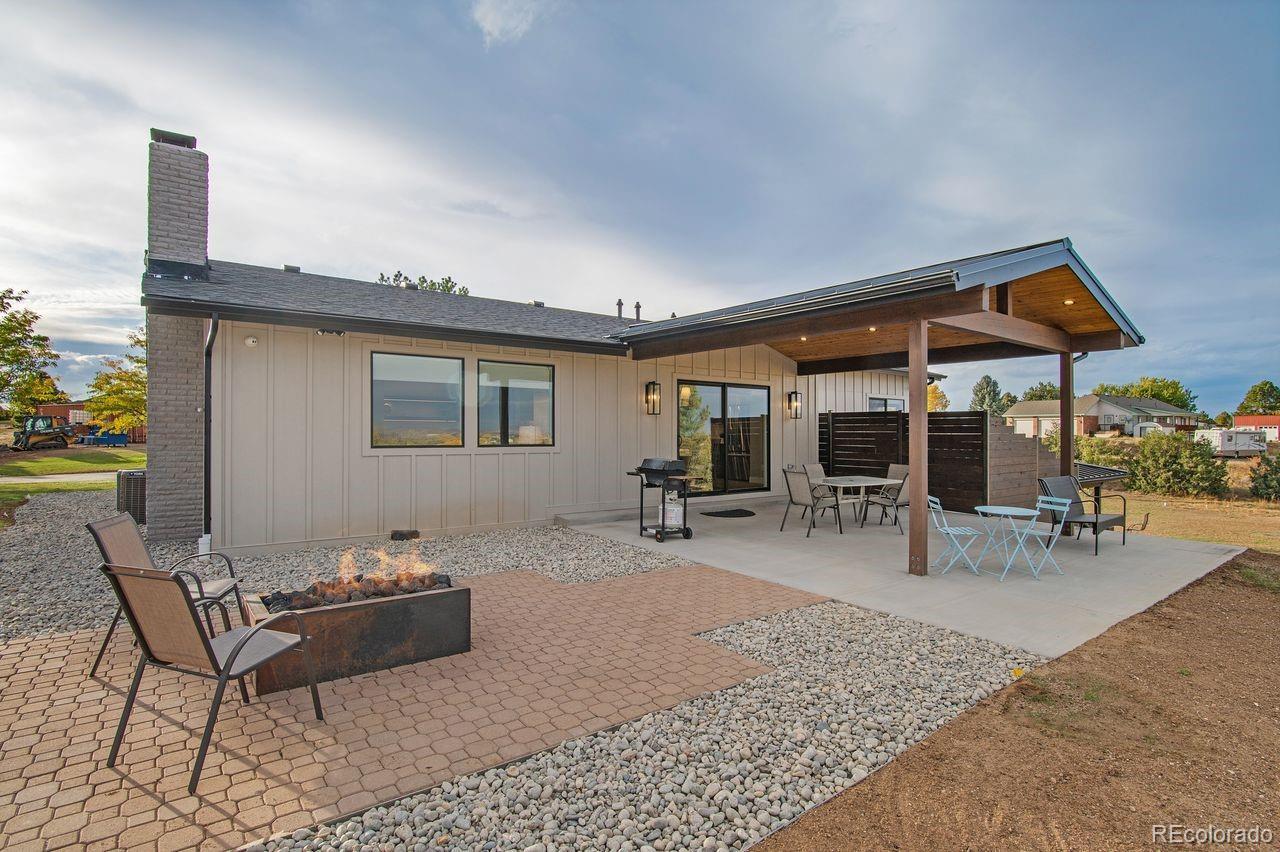 Welcome to this extraordinary, fully renovated multi-generational-living horse property, thoughtfully redesigned from the studs up by a Colorado custom homebuilder. With 6 bedrooms and 4 bathrooms, this home offers an expansive layout perfect for groups of all sizes or those seeking extra space with guest quarters. The open-concept floor plan, featuring stunning hardwood floors and soaring vaulted ceilings, creates a bright, welcoming atmosphere ideal for both everyday living and entertaining. The gourmet kitchen is a showstopper, equipped with modern appliances, ample counter space, and a functional layout that will inspire your inner chef. Each bedroom, including the luxurious primary suite, is designed for comfort and privacy, with ample storage and serene, relaxing spaces. Step outside and enjoy breathtaking mountain views from the covered patios, or unwind by one of the cozy firepits. This property offers unmatched potential, with room to build a custom barn or create your own equestrian estate. The existing infrastructure is ready for your personal plans for growth—whether that’s adding an accessory dwelling unit (ADU), tack shelter, or barn. Designed with multi-generational living in mind, this home offers multiple kitchens and private access points, giving everyone in the family their own space while still fostering togetherness. It’s also an ideal setup for a lucrative Airbnb investment, with separate living areas and plenty of room for privacy. Whether you’re looking for a spacious family home, a custom horse property, or a solid investment opportunity, this rare gem offers it all. Don’t miss your chance to make it your own! **NOTE: The gray/white barn and fence shown are illustrations of potential structures that can be built based on the current utility connections and property boundaries. They do not represent the actual existing structures but are intended to highlight the locations of the existing utility connections.