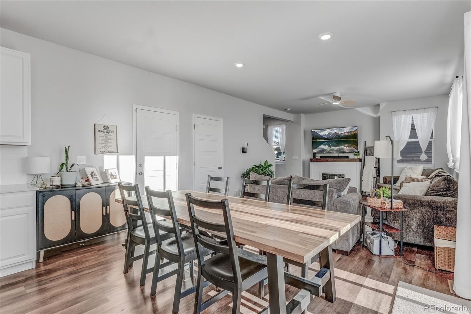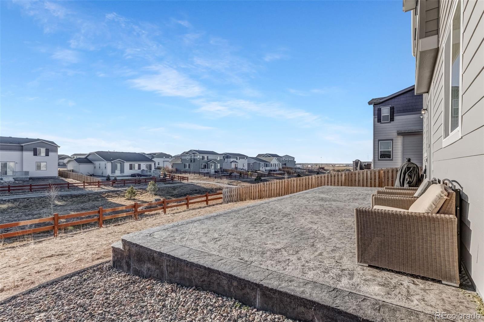 Welcome to this beautiful 4-bedroom, 3-bath home, built in 2023 and located in a highly desirable neighborhood. As you enter, you’ll immediately notice the bright, open floor plan enhanced by 9’ ceilings and abundant natural light, creating a spacious and inviting atmosphere throughout. The stunning kitchen features quartz countertops, stainless steel appliances, ample cabinet space, and a large center island that opens to a generous dining area perfect for entertaining and everyday living. All four bedrooms are located upstairs, including a spacious primary suite with a large walk-in closet and private en-suite bath. Enjoy outdoor living in the huge backyard with a large stamped concrete patio, backing to open space with trails and mountain views ideal for relaxing or hosting gatherings. Perfectly situated near restaurants, shopping, schools, and the Reunion area, with easy access to major highways and DIA. This immaculate, move-in-ready home offers modern design, scenic surroundings, and exceptional convenience. Don’t miss this opportunity to make it yours!!