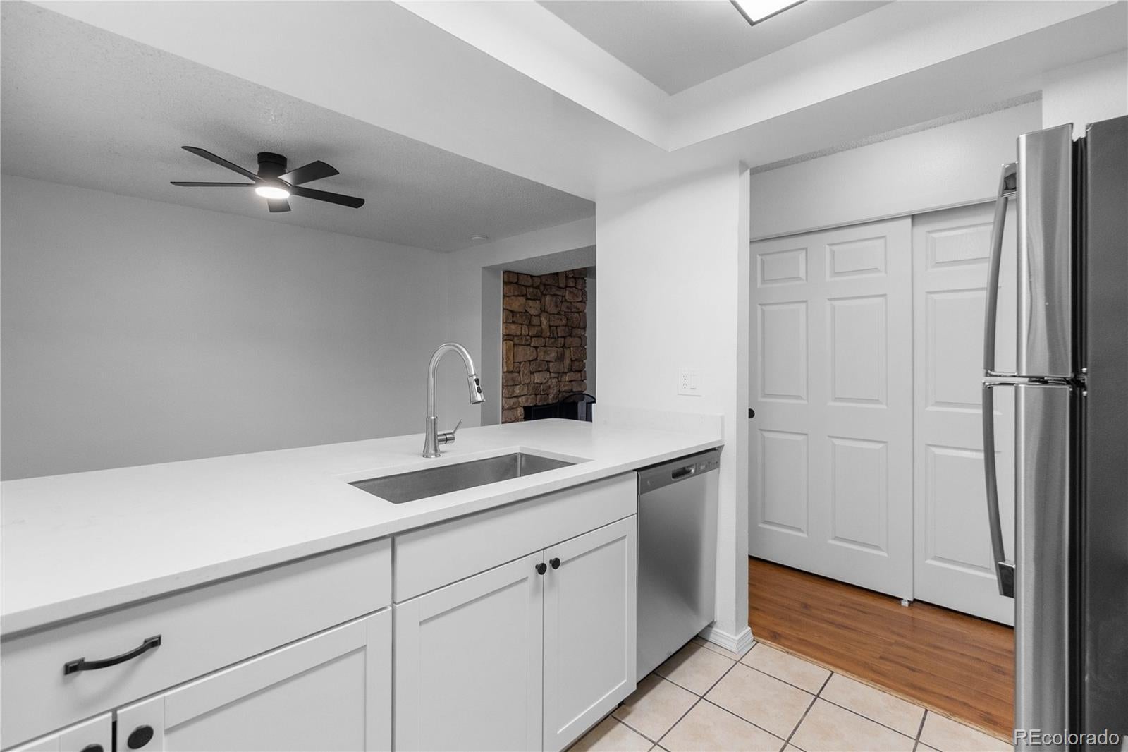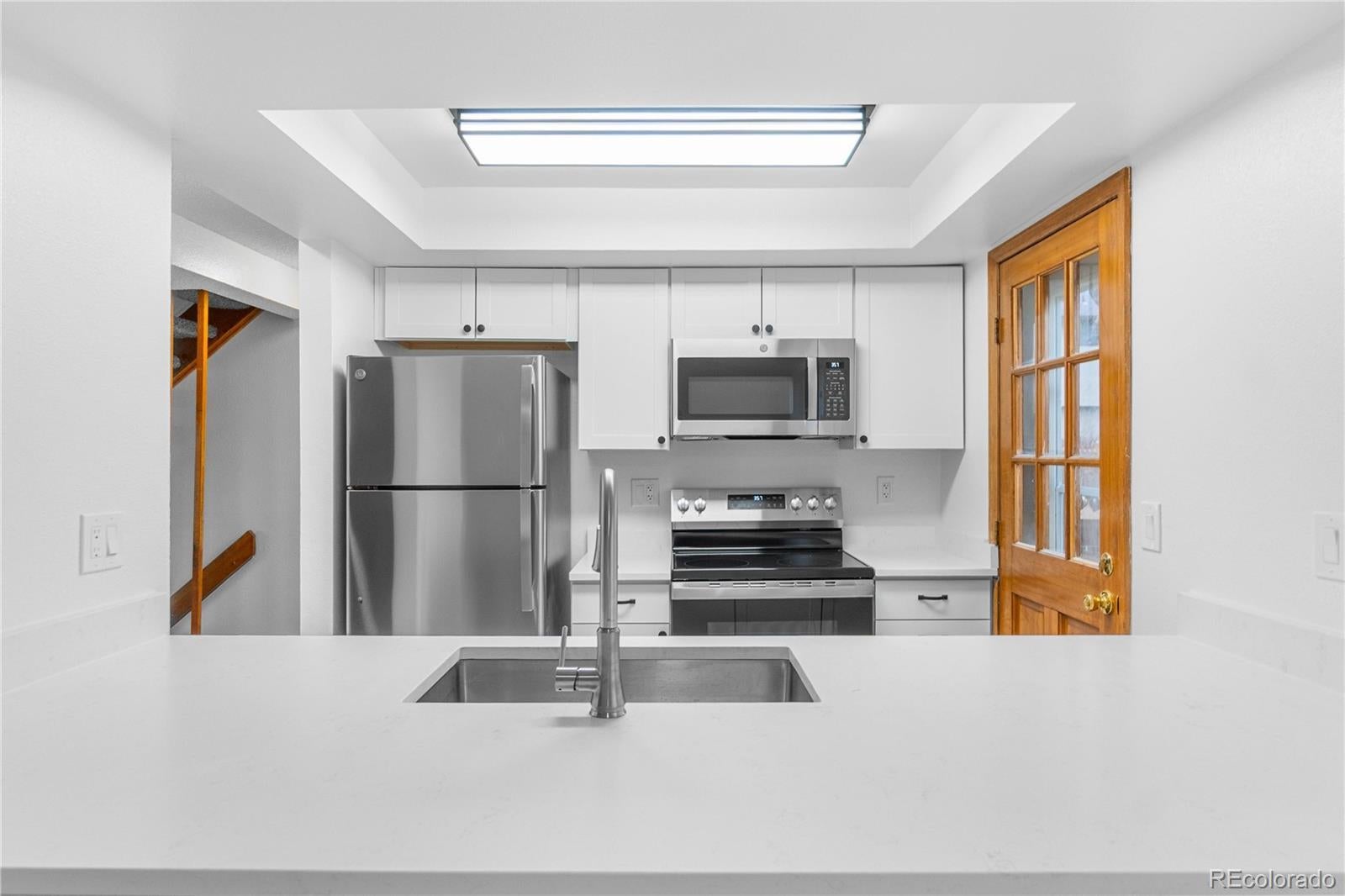 Discover this beautifully remodeled three-bedroom townhome that perfectly balances comfort and convenience. The heart of the home features a stunning kitchen with white cabinetry, gleaming quartz countertops, brand-new stainless steel appliances, and a well-organized pantry perfect for cooking enthusiasts. Cozy wood-burning fireplace perfect for those chilly Colorado evenings. Luxury vinyl flooring flows throughout the main level, while fresh carpet and paint create a move-in-ready atmosphere on the upper level where all three bedrooms await. The finished basement adds valuable extra living space, Access your private fenced rear courtyard, an ideal spot for morning coffee or weekend barbecues. New air conditioning installed in 2022 ensures year-round comfort, while the included washer and dryer mean one less thing on your moving checklist. Practical features include covered reserved parking with an additional space available, because who doesn't need extra parking? The well-managed homeowners association maintains the property beautifully with no special assessments and FHA approved. Located next to playground and community pool, within the highly regarded Cherry Creek School district, you're also minutes from Danewood Park and convenient shopping options. This gem combines modern updates with thoughtful amenities in a community that truly feels like home. Super clean, don't miss this one!