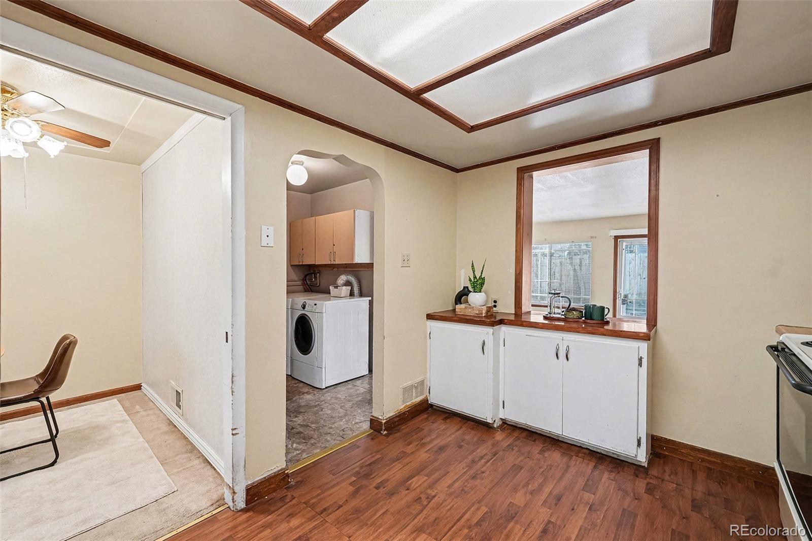 This GREAT opportunity awaits you in Edgewater just west of Sloan’s Lake. LOCATION ~ LOCATION ~ LOCATION! Easy access to I70, I76, Hwy 6, Wadsworth, Sheridan, and the West Light Rail Line. Charming ranch home with crawl space, nicely sized yard, plus an oversized 1-car garage with interior door access! Step inside to the living and dining area leading to the kitchen, laundry room, plus a nicely sized bonus room (240 sq ft NOT included in total square footage amount) leading out to the back patio/back yard (sliding door does not operate correctly - DO NOT OPEN). Two roomy bedrooms flank the ¾ bath with walk-in shower plus a linen closet. Enjoy the peaceful back yard with a covered backyard patio and storage shed. The yard is fully fenced to keep your family and pets safe, too. The newer roof is in great condition and the sewer line from house to city tap has been replaced. You're just a quick jaunt to Lumberg Elementary and Jefferson Jr/Sr High in addition to parks, restaurants, and entertainment. This home offers so much potential to the next owner...come visit and make it yours!