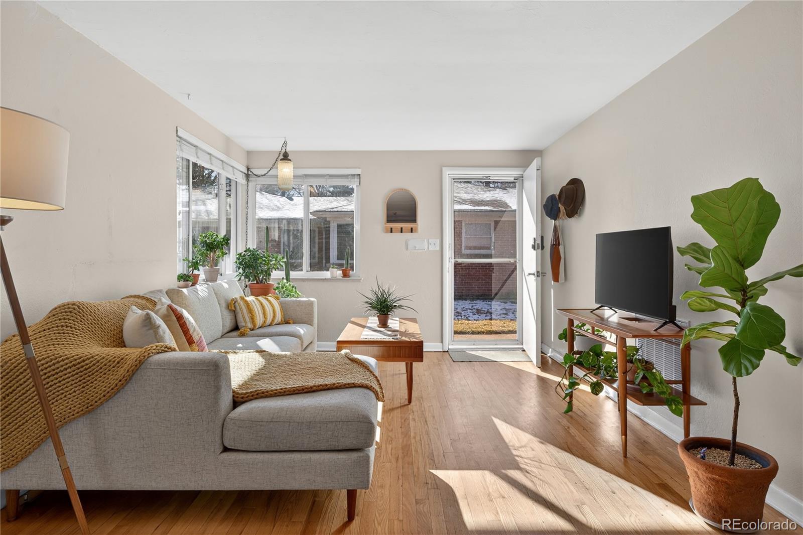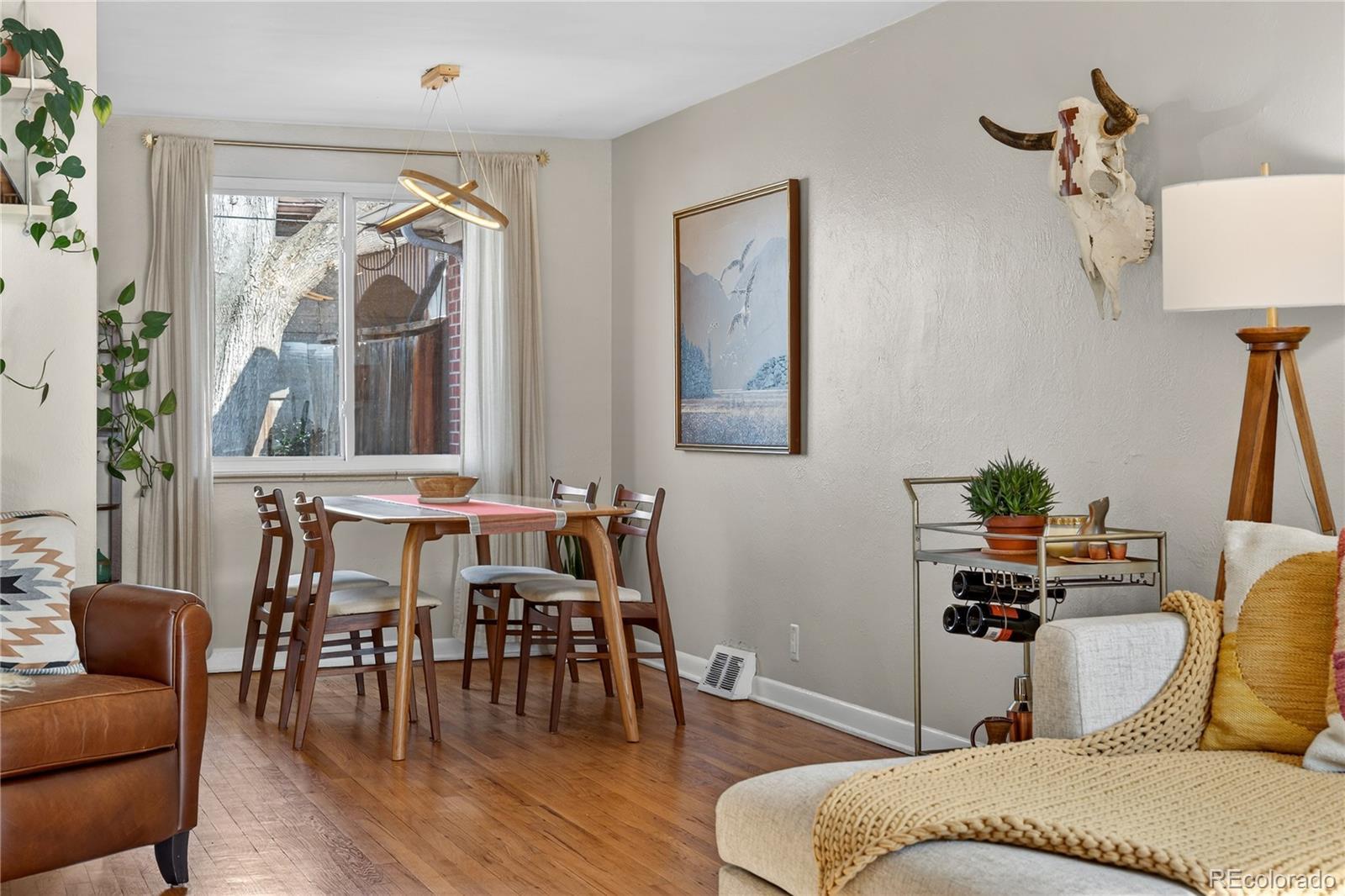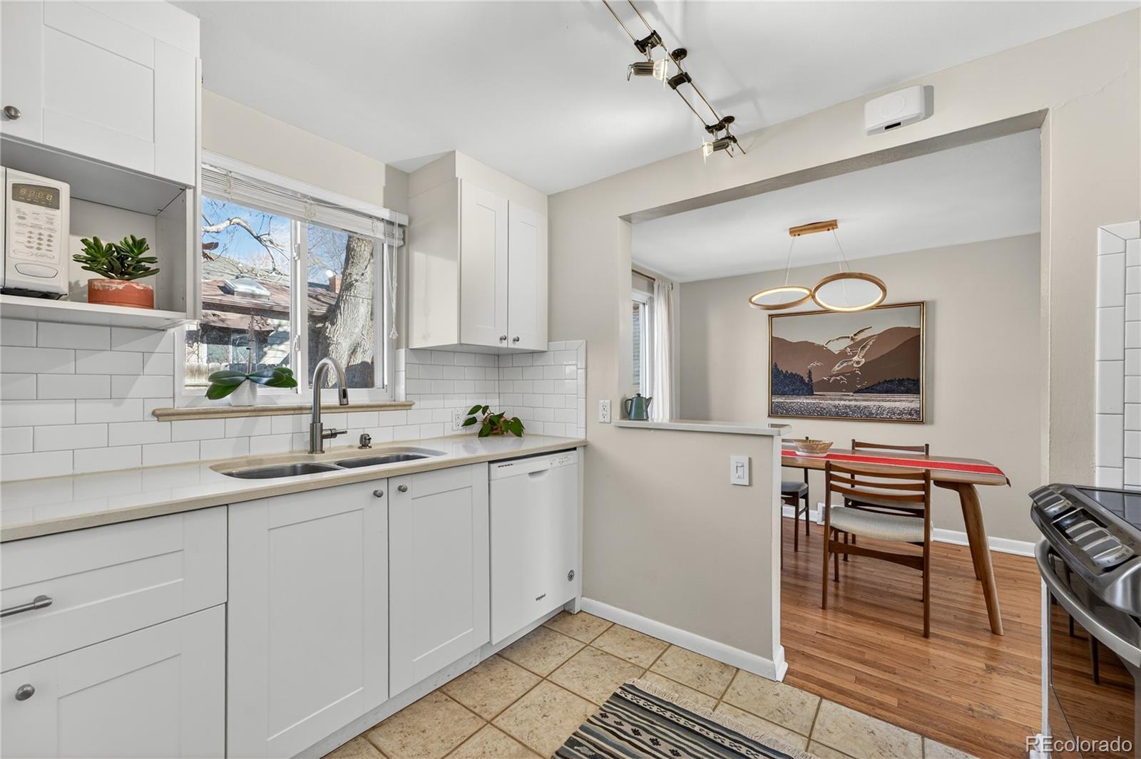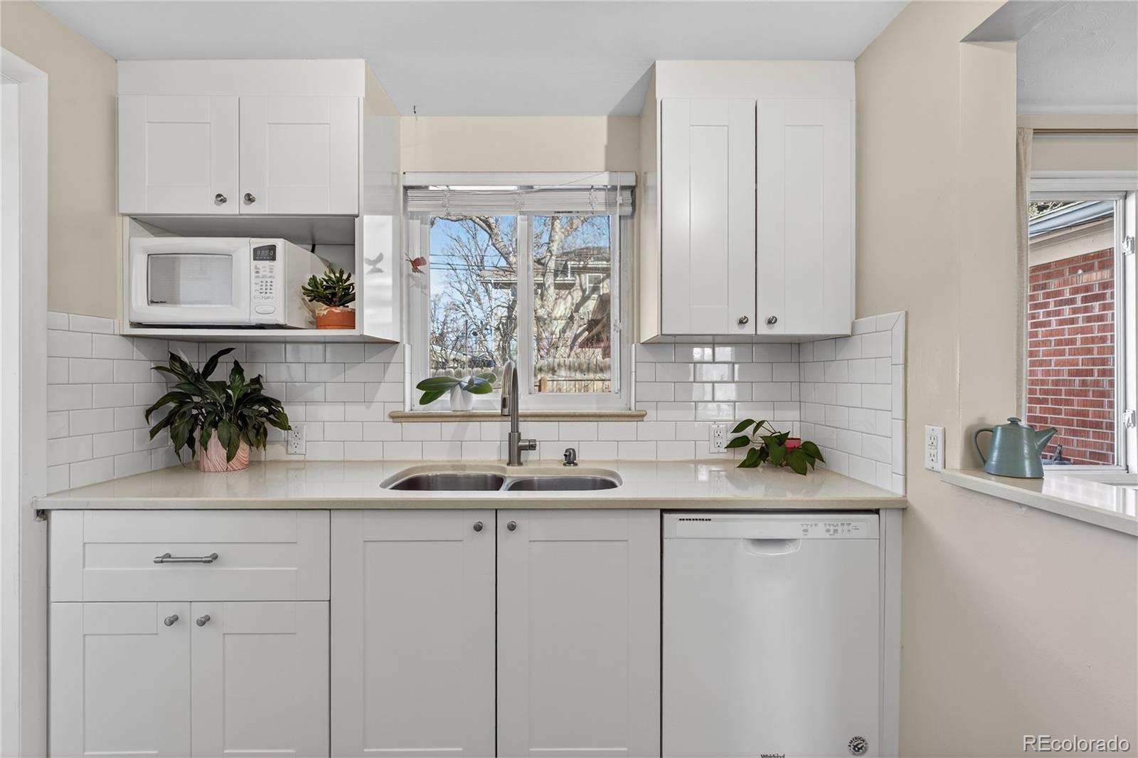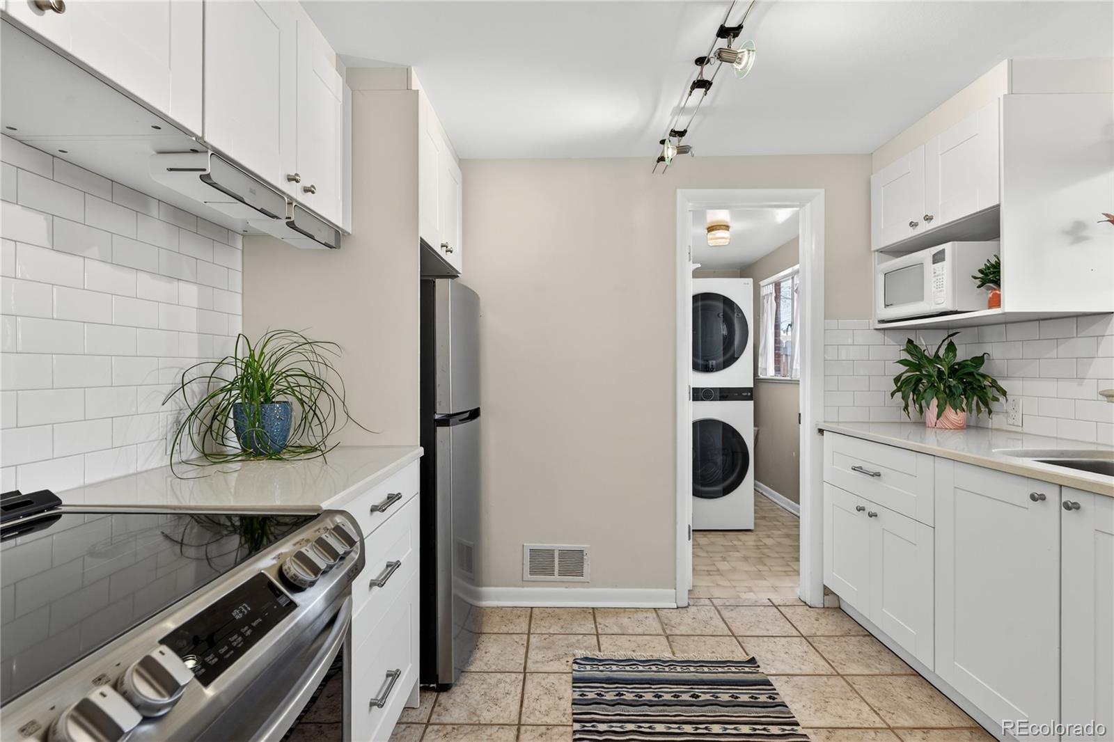 Charming, bright, and spacious townhome in a beautifully landscaped six-unit community, perfectly situated in one of Denver’s most desirable & walkable locations. Tucked just steps from an expansive multi-mile recreation path and several beloved parks—including Harvard Gulch with its rec center, golf course, pool, and gardens—this home offers the best of city living with a peaceful neighborhood feel. Enjoy being moments from local favorites like coffee shops, Denver Beer Co., and a hidden-gem smashburger spot, all while being close to DU without the noise or crowds. Inside, the home is filled with natural light and features an open living room and kitchen united by gorgeous hardwood floors, creating an inviting and airy space. The modern kitchen offers white Shaker cabinetry, chic subway tile backsplash, stainless steel appliances, and an induction range that elevates everyday cooking. A dedicated laundry room just off the kitchen includes a new stackable washer and dryer and opens directly to the backyard for added convenience. Two generously sized bedrooms also feature hardwood floors and abundant natural light, complemented by a crisp, clean full bathroom with a new toilet. The private backyard is a true standout—easily the best of the six units—with a cozy patio, sprinkler system, and a mature shade tree that transforms the space into a cool, relaxing oasis even on the hottest summer days. Thoughtful landscaping surrounds the home with seasonal beauty, including stunning pink peonies, a yellow rose bush, purple irises in both the front and back yards, and a central landscaped area with flowering trees and vibrant blooms. The home enjoys excellent natural light throughout the day and remains comfortable year-round thanks to its solid insulation. Street parking is plentiful! With a new water heater in 2021, A/C in 2022, a home warranty, and a self-managed HOA that covers the roof, lawn care, irrigation, and water, this move-in-ready gem is ready to call home!