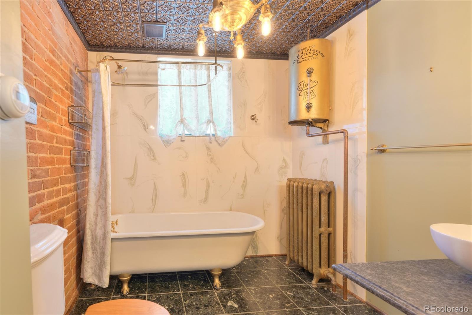 Classic, Queen Anne Era, 1898 home in the heart of Canon City! Easy walk to everything! Lots of recent renovations retain the period feel of this home. New paint, new roof, plumbing and electrical upgrades. Beautiful woodwork throughout. Custom made library. Solid Oak staircase, landings and floors. Large living room with nearly 11 foot ceilings, plus a huge dining room with the same open and classic feel of this Era home. Interior transom windows, finely crafted woodwork, bench window seats, swinging doors, French doors, crown moldings, interior brick walls, plenty of storage and more. All original period lighting, door knobs, door plates and hardware. The Kitchen has modern updates including new appliances, granite counter tops and pantry. The 2nd floor has 4 bedrooms plus a quaint tower reading room with a porch (also has been used as a bedroom). Classic bathrooms with claw foot tubs and lots of room. Beautiful exterior original brick finish, fountain, antique wrought iron fencing, brick walkways, patios and lots of perennial flowers in an established English cottage style garden. Covered back porch with stamped concrete, 2nd floor balcony above, porch swing, antique wrought iron in the back yard. Storage buildings and 1 car garage recently rebuilt. Private, long drive can accommodate 4 cars. So, so much more to take in when you visit this beauty. Great for entertaining!