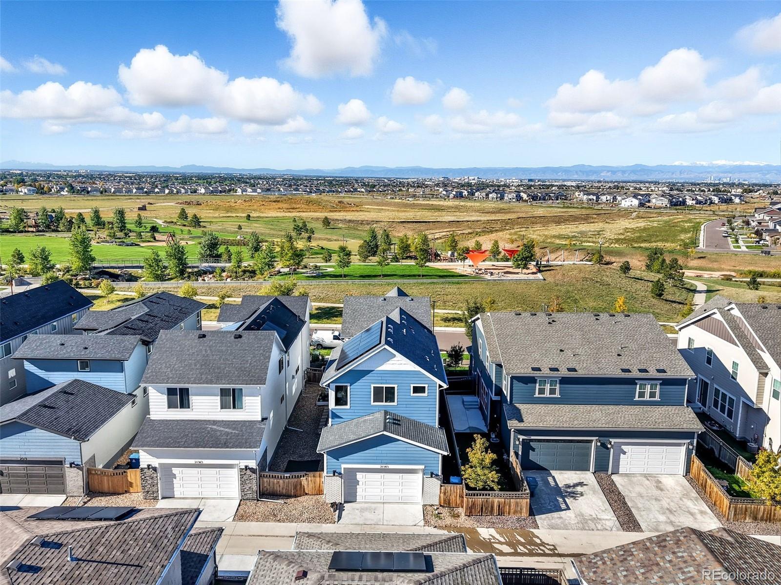 Stunning five-bedroom home with sweeping park and mountain views! The primary suite offers a true retreat with a sitting area, walk-in closet, and spa-inspired bath featuring dual sinks, a soaking tub, and a separate shower. The chef’s kitchen impresses with a gas freestanding range, double ovens, even-heat convection, and a brand-new refrigerator. The finished basement is pre-wired for surround sound—perfect for movie nights or game day—and includes a bedroom with two spacious closets for added storage. Enjoy outdoor living on the back patio with a built-in gas line, and year-round comfort with a recently serviced HVAC system. Energy efficiency shines with a 20 year prepaid solar lease, keeping utility costs low while you enjoy those incredible views.