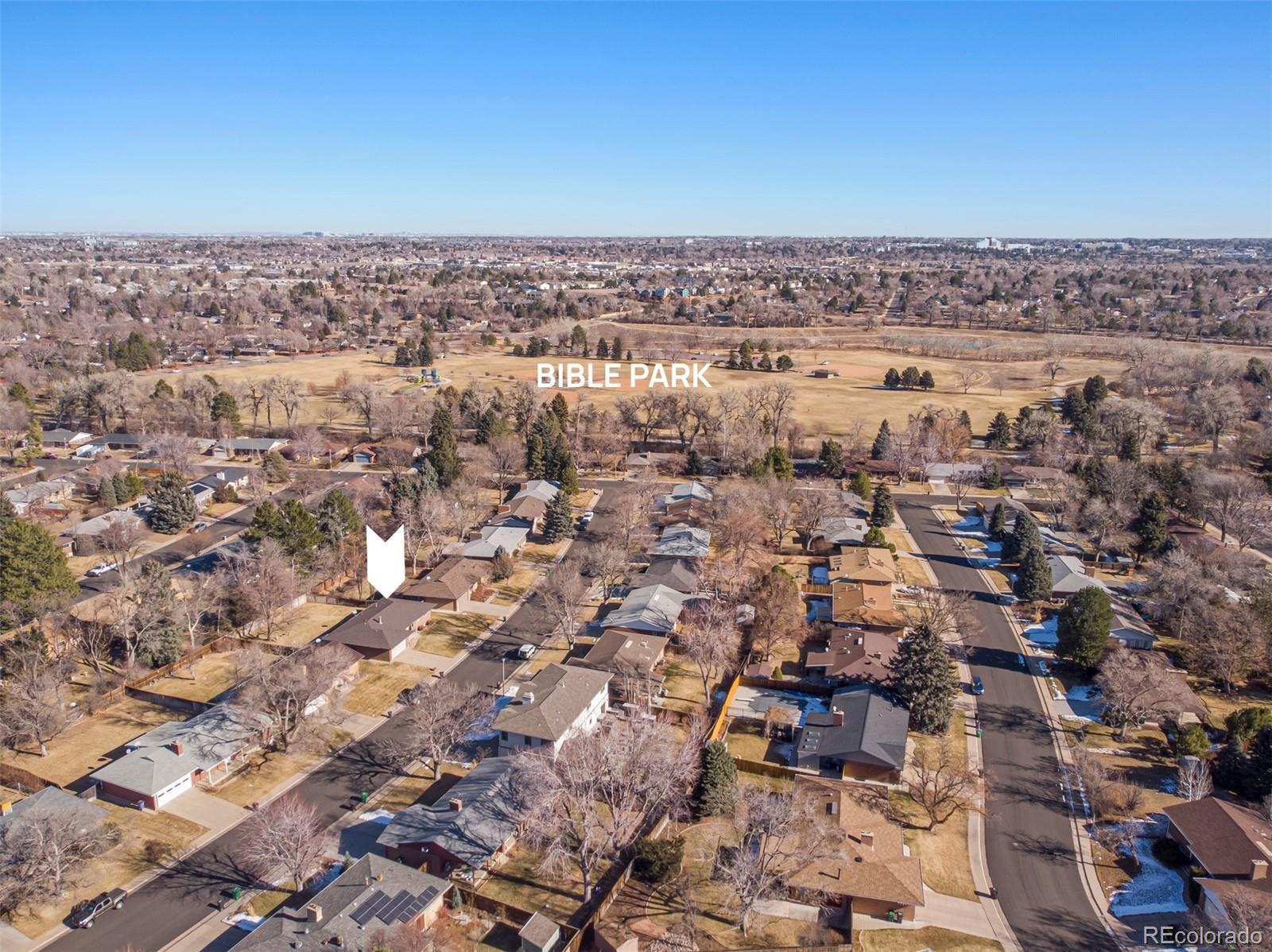 This south-facing brick ranch offers a practical, thoughtful layout with 5 bedrooms and 3 bathrooms, including a main-floor primary bedroom with en suite bath. A covered front porch provides a welcoming entry, while inside the home features custom ash hardwood floors, newer carpet, and updates throughout. The kitchen includes granite countertops, maple cabinetry, and stainless steel appliances. You'll get the best of both worlds with a gas fireplace on the main level and a wood-burning fireplace in the basement. This home has been well cared for and includes a large backyard with room to relax or entertain. Located in the desirable Hutchinson Hills neighborhood, the property sits just one block from Bible Park, which offers a new playground, open green space, and access to the Highline Canal Trail. This location is prime, with nearby grocery shopping, dining, and convenient access to I-25, I-225, downtown Denver, DIA, Denver Tech Center and multiple Light Rail stations.
