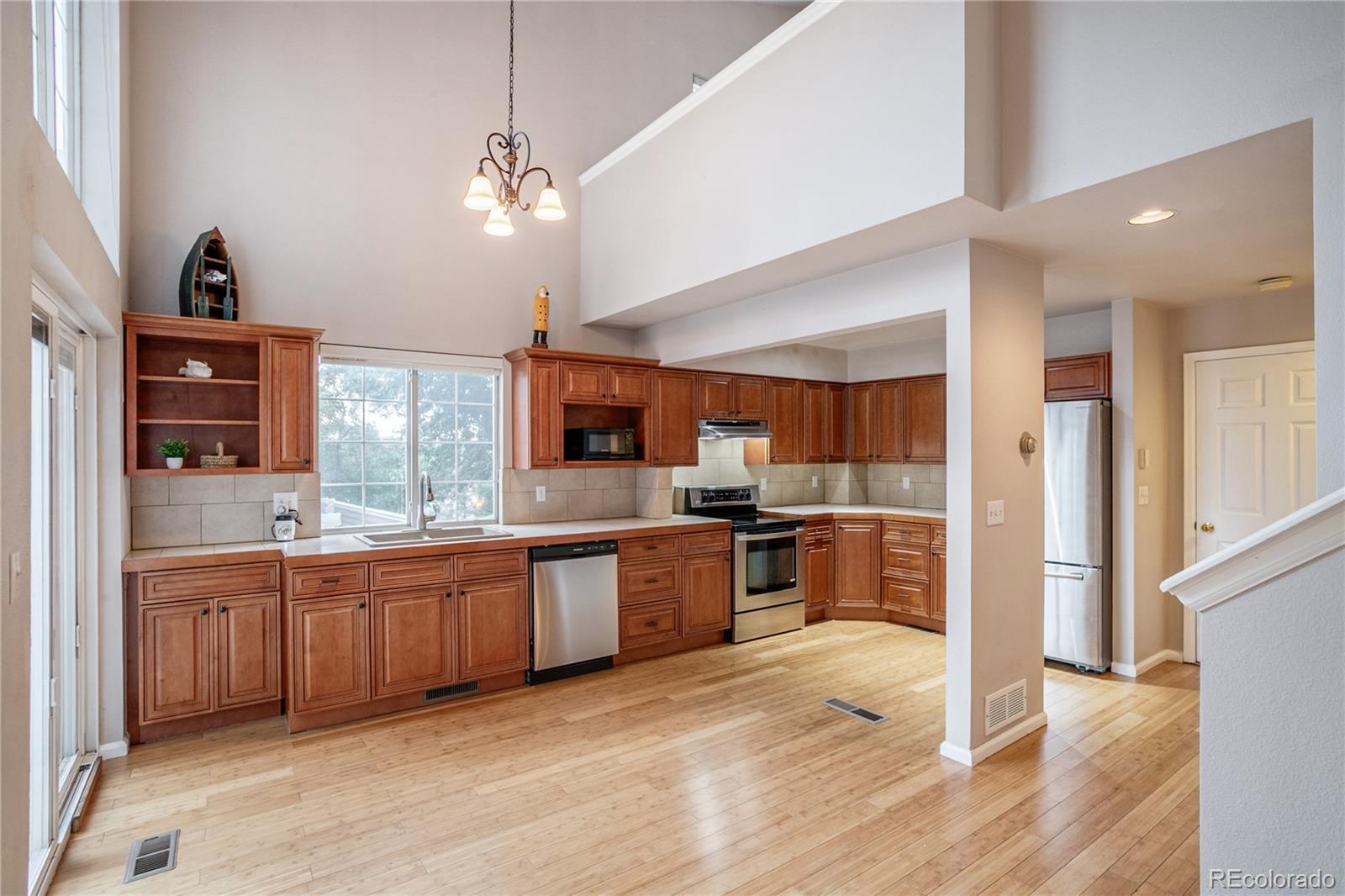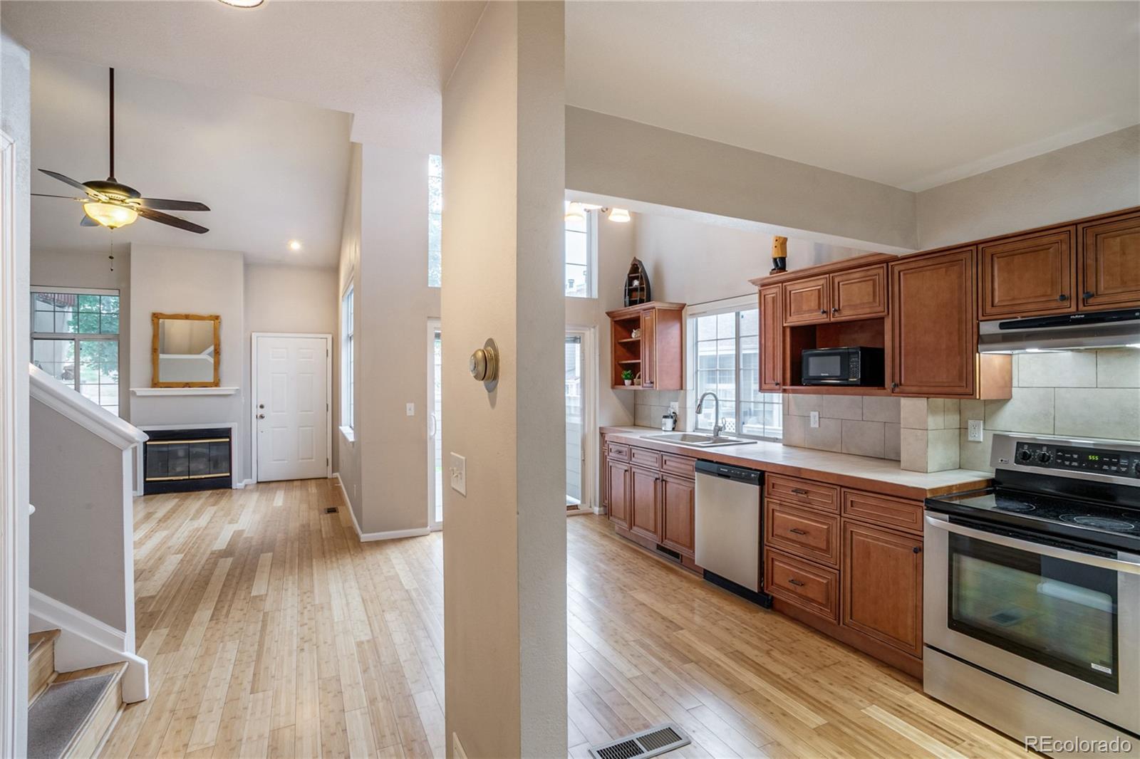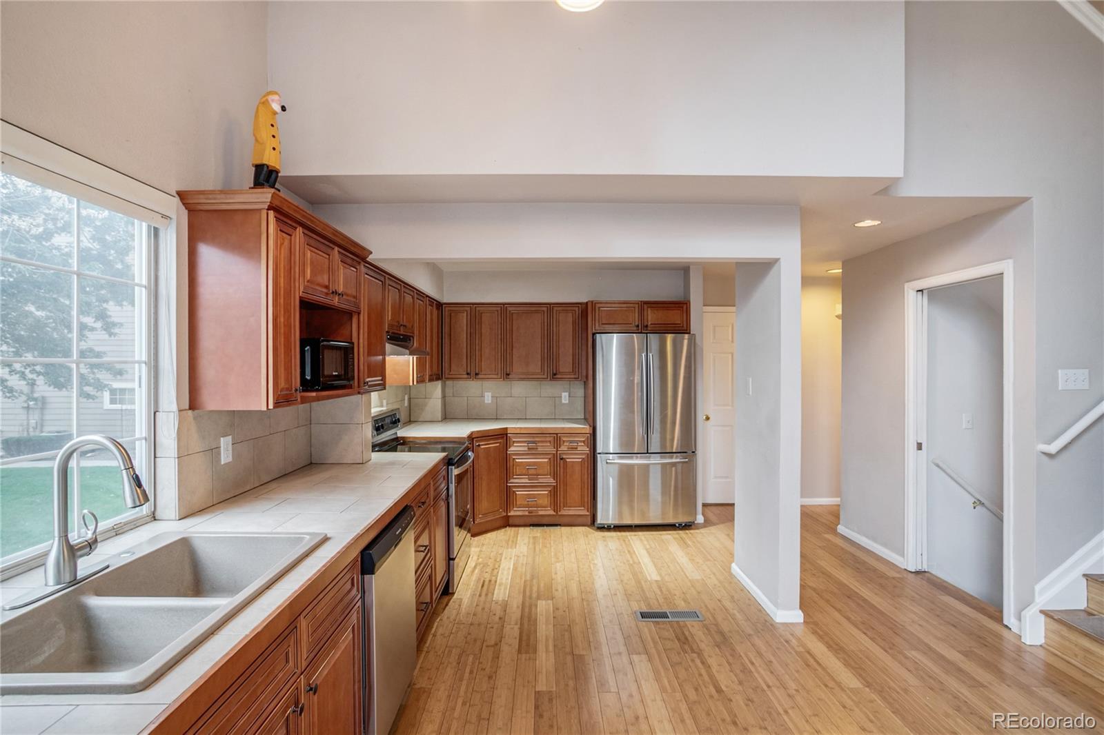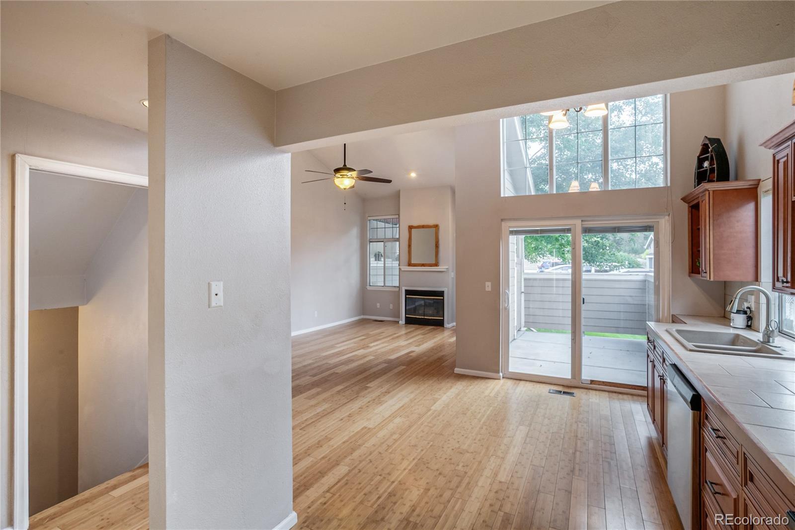 End-unit townhome in The Yacht Club on a private lake. It's a prime north metro location—convenience meets comfort here without high HOA fees nor metro district taxes. This roomy, updated home is ready for anyone who’d rather spend weekends playing than pushing a mower. It is in tiptop shape, says the home inspector. The open main level with bamboo floors shines with tall ceilings, natural light, and a cozy gas fireplace--perfect for entertaining—or letting your houseplants thrive. The updated kitchen features counterspace, stainless appliances, and room to cook. Newer windows and top/bottom opening window shades adjust easily for comfort. Relax under the maple tree on the private, fenced patio. Guests will appreciate the convenient main floor updated 1/2 bath. The primary bedroom has vaults, an art ledge, an ensuite bath (new 2020) and walk-in closet, so you can stop arguing with your dresser drawers. Secondary bedrooms and a loft flex as a home office, craft room, or family space. The finished basement has room for a home gym, movie nights, or overnight guests who won’t want to leave. Full and 3/4 bathrooms have practical tile floors and updated fixtures. In the attached garage with opener (2016) protect your vehicles and store your toys. Guest parking in front keeps friends happy. The HOA cares for exterior maintenance and grounds care, trash, recycling & the pool. Convenient to shopping, restaurants, trails, bus, light rail, interstate highways-everywhere you want to go. With a smart floor plan, modern updates, great location, and a reasonable price, this home checks all the boxes—and a few you didn’t know you had.