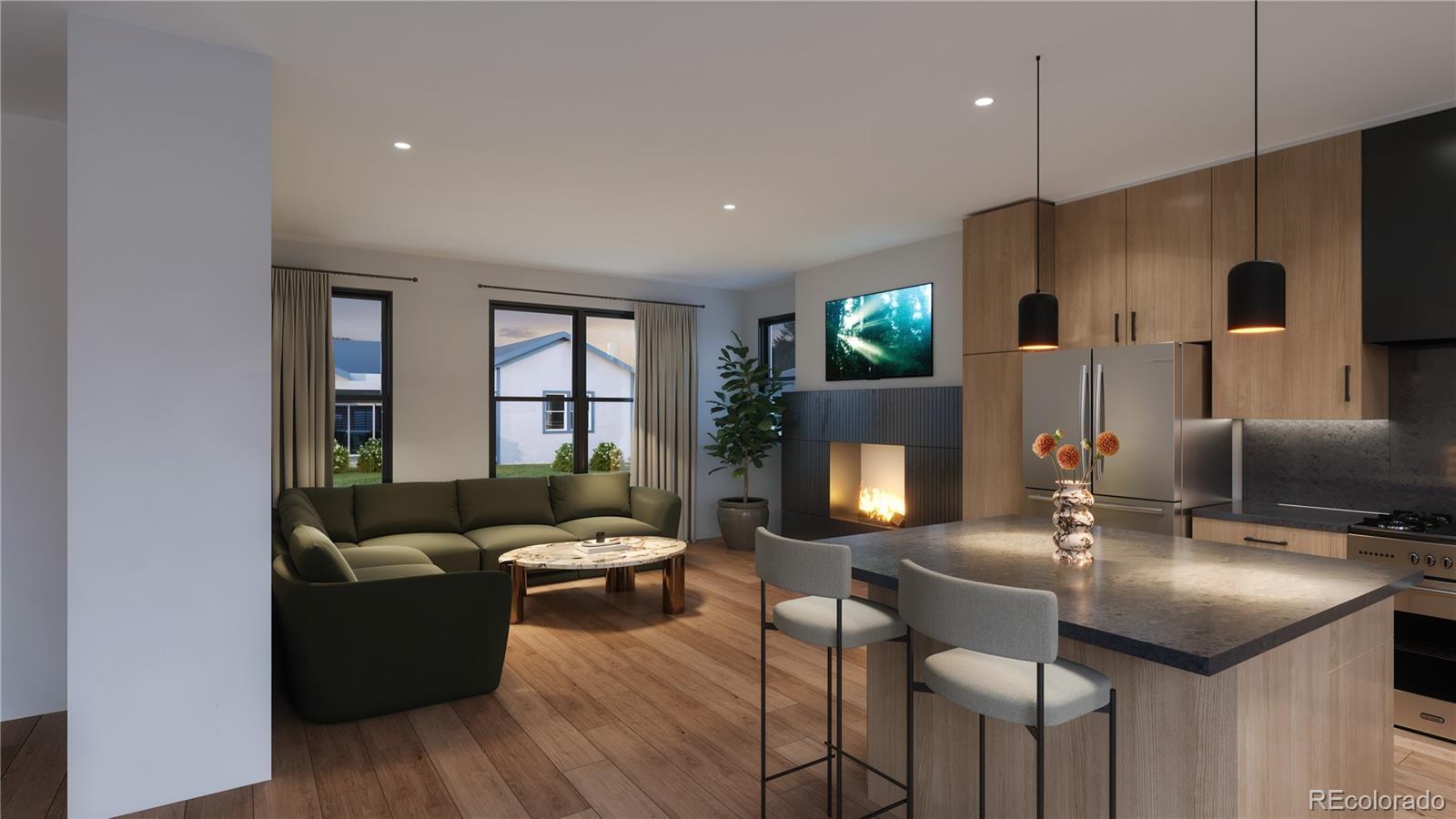 At Hardin Farms, bold design meets timeless privacy. Expected completion Spring 2026. Brand new gated community in Arvada, brought to you by Dominion Residential, offers both paired and single-family luxury residences. Rare new community having no Metro/Special Taxing District. The home features modern design with mid-century flair and thoughtfully curated finishes and details. Tall ceilings, hardwood floors, and fireplace will welcome you from the front door. Entertain with ease from your open-concept kitchen, dining, and living room. Any chef's heart will flutter at the stainless steel Bosch appliance package that includes 36" gas range and custom hood. Quartz countertops, a kitchen island, and handsome cabinetry enhance the sleek kitchen. The largest of our floor plans, this home features 4 bedrooms upstairs. The primary suite includes a massive 5-piece bath, is exquisitely appointed and features soaking tub inside the enormous shower. Also with two walk-in closets. The perfect bedroom retreat! 3 additional bedrooms - 1 with double doors, making it an ideal home office. Laundry room upstairs for added convenience. Vast finished basement features tall ceilings, additional entertainment space, standard wetbar, full bathroom and 2 additional bedrooms. The home is complete with oversized and attached 2 car garage, and large yard with patio for outdoor living. Set on five private acres, Hardin Farms blends orchard heritage with modern architecture to create a rare enclave of space, security, and style, all just minutes from Denver and Arvada's most vibrant cultural hubs. Close to lightrail and enjoy nearby Berkeley Arts District, Olde Town Arvada and easy access to highways for Denver and Boulder commuters. Register today to be the first to learn about all opportunities: https://livehardinfarms.com/