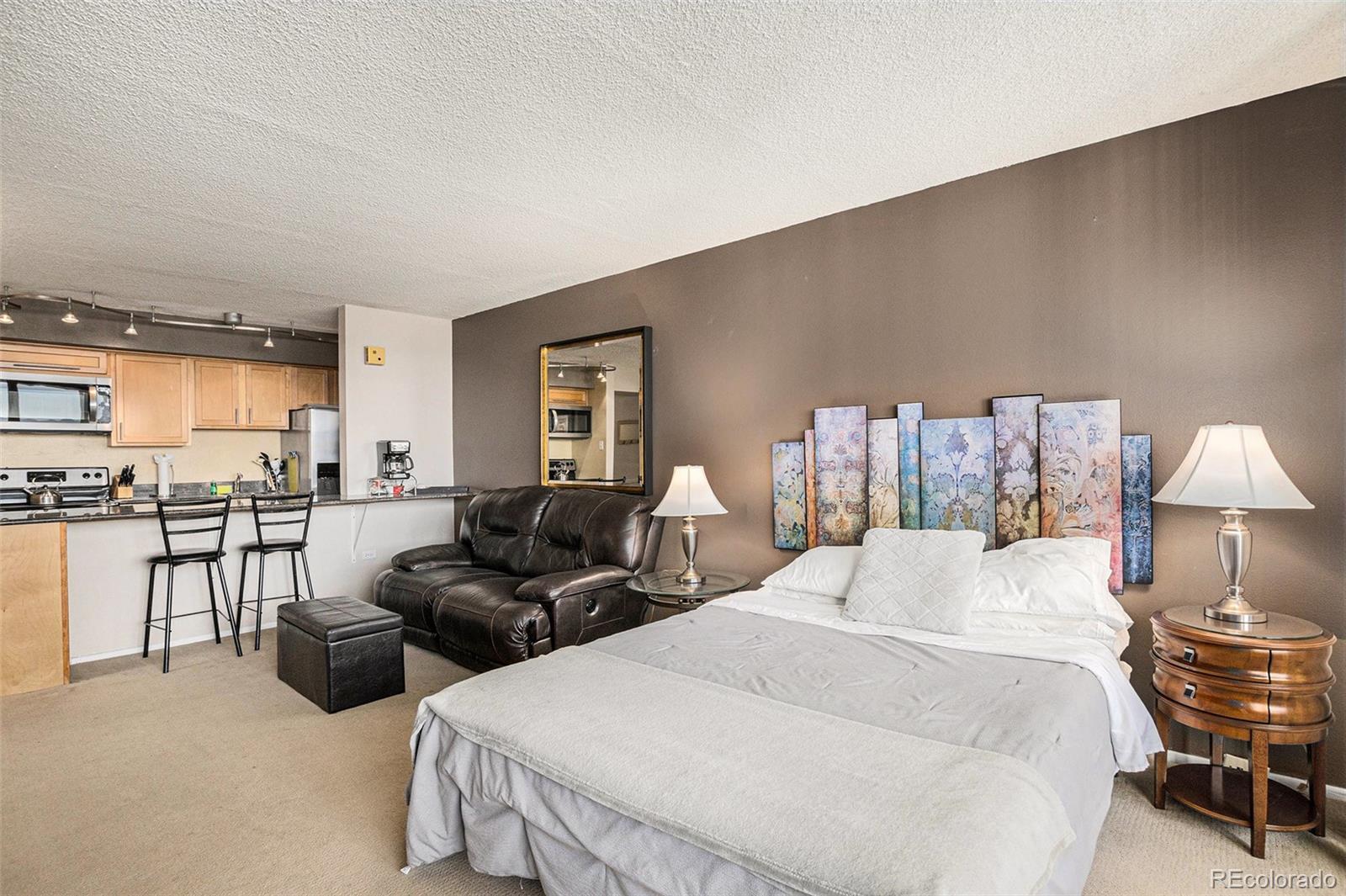 Perfectly positioned in the heart of downtown Denver, this Monarch-model studio in iconic Brooks Tower proves that smart design can live large. The updated kitchen shines with bright maple cabinetry, granite countertops, and a full suite of stainless steel appliances including microwave, range/oven, refrigerator, and yes, even a compact dishwasher because small spaces deserve big conveniences. Counter seating at the kitchen bar keeps things social, caffeinated, or cocktail-ready. The studio comes fully furnished, making move-in or rental-ready a breeze, with a comfortable bed, reclining loveseat, and handsome cherrywood furnishings that bring warmth and function without clutter. The upgraded bath adds a dash of urban polish with striking subway tile and a clean, modern feel. Brooks Tower is a downtown classic, offering a well-equipped fitness center, conference room, on-site management, and a welcoming lobby that feels like home base in the city. Step outside and you’re instantly plugged into Denver’s best dining, nightlife, arts, and transit. No car required, though parking available for additional rent.