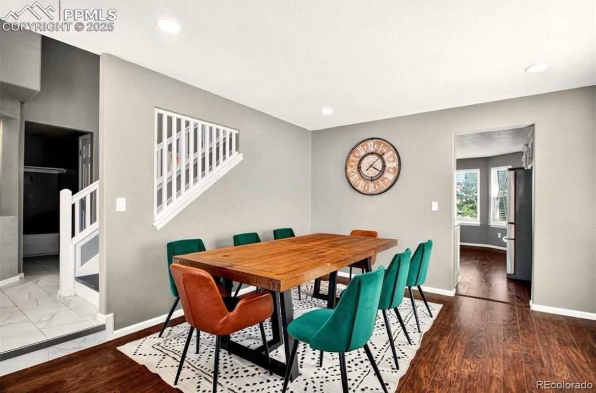 Welcome to your dream spot in Colorado Springs! This stunning 2-story home with a fully finished basement has all the space and upgrades you’ve been waiting for. From the moment you walk in, the soaring vaulted ceilings and meticulous care shine through. The open-concept kitchen flows straight into the family room, complete with custom cabinetry and sleek granite countertops perfect for whipping up dinner while staying connected to the action. The primary suite feels like a spa retreat, featuring a beautifully remodeled 5-piece bathroom and a walk-in closet that actually fits everything. Need a home office? The main floor bedroom makes the perfect flex space. Downstairs, the basement is built for fun, set it up as a game room and enjoy the wet bar with keggerator, ideal for entertaining friends on game day. Out back, the yard is ready for family hangouts, summer BBQs, and even firework shows from Weidner Field right across the street. With fresh exterior paint in 2025 and plenty of thoughtful updates throughout the years, this home is move-in ready and full of character. Oh and don't forget about the location! You’re in the vibrant Stetson Hills community minutes from shopping at Powers Corridor, big-name retailers, and locally loved spots like The Wobbly Olive, Back East Bar & Grill, Dublin House, and Skirted Heifer. Grab a coffee at Dutch Bros or head to First & Main Town Center for a movie night, dining, and more. Outdoor lovers will appreciate nearby parks, trails, and quick access to the gorgeous Colorado outdoors. With Peterson Space Force Base and Colorado Springs Airport just a short drive south. This home isn’t just a place to live it’s a lifestyle.