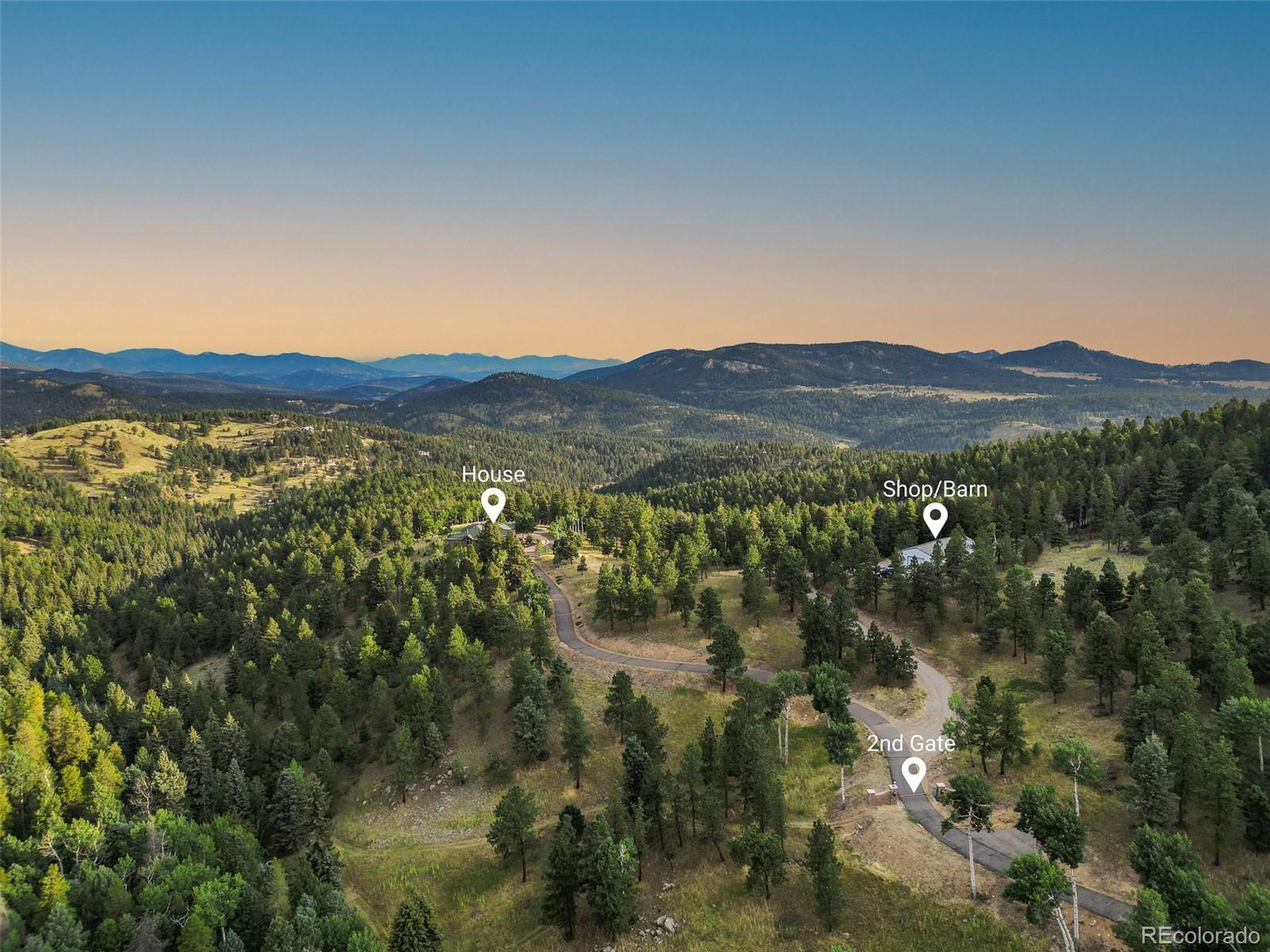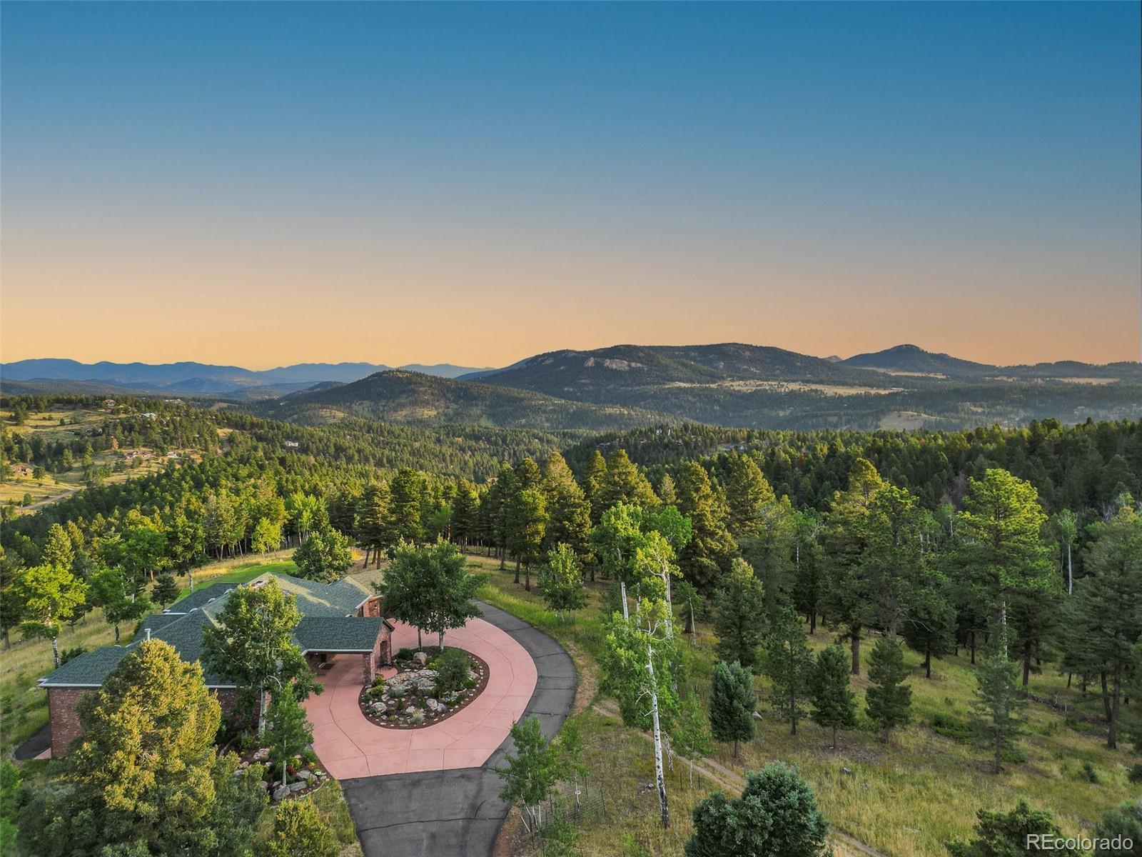 Own your own mountain. Set on 225 private acres crowned by the dramatic cliffside of Riley Peak, this extraordinary Conifer estate is among the most breathtaking land offerings within 30 miles of Denver. A paved 1.2-mile driveway begins at the gated entrance, winding through towering evergreens before reaching a second private gate at the residence—providing year-round access and a level of privacy rarely found this close to the city. The 7,700± sq ft brick-built estate was designed for longevity and low maintenance in the Colorado climate, while expansive windows and vaulted interiors frame the surrounding beauty. A floor-to-ceiling brick fireplace anchors the great room, complemented by custom timber trusses, a glass-wrapped sunroom, and a gourmet kitchen with premium appliances and a large granite island. The primary suite is a retreat of its own, featuring a double-sided fireplace that opens to a spa-like ensuite with a freestanding tub and sweeping mountain views. The expansive lower level offers a stone fireplace, large family room, game area, bedrooms, and a theater room—ideal for multi-generational living or extended guests. Miles of private trails wind through aspen groves, meadows, dense forest, and dramatic rock outcroppings, offering unmatched recreation for hiking, UTV exploring, wildlife viewing, and year-round adventure. Abundant wildlife—including elk, deer, and occasional moose—roam the property, enhancing its rare sense of sanctuary. Additional improvements include a 3,200± sq ft shop and multiple buildable site opportunities across the acreage, with no HOA or covenants to limit your vision. This is a once-in-a-generation opportunity to own a private mountain estate with unmatched beauty, seclusion, and year-round accessibility—just minutes from Hwy 285, local dining, and shopping, and within effortless reach of Denver and the high country. View the complete listing at: https://www.26271richmondhillroad.com/