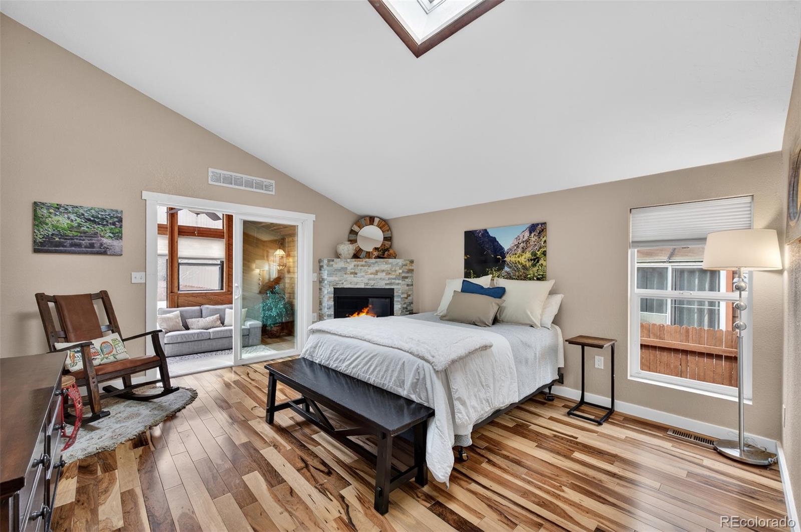 From the moment you step inside, this thoughtfully updated home feels warm, inviting & easy to love.Designed for both everyday comfort & gathering with the people who matter most, this home offers flexibility, charm and true Colorado living.Vaulted ceilings& abundant natural light highlight the main living area, complimented by passive solar design.The updated spacious kitchen with large kitchen island opens to the dining room, while a double-sided fireplace connects the dining & living rooms.Access to backyard & deck from both rooms creates a warm, inviting setting for everyday living & entertaining. The main floor primary suite feels like a private retreat with hardwood floors, fireplace, skylight, large walk-in shower, heated floors, walk-in closet with organization system.The adjoining sunroom provides direct access to the backyard & deck, perfect for quiet mornings&relaxing evenings. Upper level features two generous sized bedrooms, updated full bath & natural light filled loft with built-in bookcases, ideal for a home office, study space or reading nook.The finished basement adds valuable flexibility with a family room ready for movie nights with its home theater. Additional bedroom, bath, home gym area, and small office are well suited for guests, multi-generational living or work from home needs.Outside, the fully fenced backyard feels like a Colorado mountain escape with mature landscaping,deck, hot tub,areas for flower, vegetable & herb gardens, and a dog run - all designed for easy and enjoyable indoor-outdoor living. Additional highlights include a Level 2 EV charging station in the garage, new roof-2024, new exterior paint-2025 & new A/C in 2025. Located within walking or bike ride to Cherry Creek State Park's extensive trail system & minutes away from Nine Mile RTD & Light Rail Station. This home qualifies for the Community Reinvestment Act that offers 1.75% of the amount as a credit towards Buyer's Closing Costs - Contact Listing Agent for details!